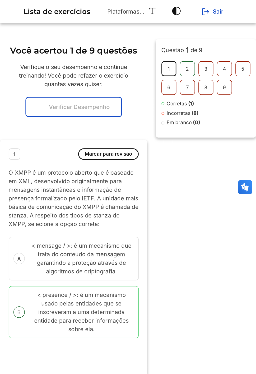 Você acertou 1 de 9 questões Verifique o seu desempenho e continue treinando! Você pode refazer o exercício quantas vezes quiser. Verificar Desempenho A B 1 Marcar para revisão O XMPP é um protocolo aberto que é baseado em XML, desenvolvido originalmente para mensagens instantâneas e informação de presença formalizado pelo IETF. A unidade mais básica de comunicação do XMPP é chamada de stanza. A respeito dos tipos de stanza do XMPP, selecione a opção correta: : é um mecanismo que trata do conteúdo da mensagem garantindo a proteção através de algoritmos de criptografia. : é um mecanismo usado pelas entidades que se inscreveram a uma determinada entidade para receber informações sobre ela. Questão 1 de 9 Corretas (1) Incorretas (8) Em branco (0) 1 2 3 4 5 6 7 8 9 Lista de exercícios Plataformas… Sair C D E : é um mecanismo do tipo publicação-assinatura semelhante em alguns aspectos ao HTTP. : é um mecanismo responsável pela requisição de assinatura das entidades em relação a determinados tópicos. : é um mecanismo de aceitação da inscrição de entidades em relação a outras entidades da rede. Resposta incorreta Opa! A alternativa correta é a letra B. Confira o gabarito comentado! Gabarito Comentado A alternativa correta é a B, que afirma que é um mecanismo usado pelas entidades que se inscreveram a uma determinada entidade para receber informações sobre ela. Isso está correto porque no protocolo XMPP, o é usado para indicar a disponibilidade (ou presença) de uma entidade na rede. Isso permite que outras entidades saibam quando uma entidade específica está disponível para comunicação. Portanto, é um mecanismo usado pelas entidades que se inscreveram a uma determinada entidade para receber informações sobre ela. A B C D E 2 Marcar para revisão Um dos protocolos mais utilizados para desenvolver projetos de IoT é o MQTT. Cada protocolo tem uma orientação que é a base para o seu desenvolvimento. A respeito do protocolo MQTT, selecione a opção CORRETA. É orientado para dados, pois gerencia o fluxo entre o servidor e os dispositivos da rede. É orientado para Mensagem, pois trata cada mensagem como um bloco de dados que vai ser operado pelo broker. É orientado para Rede, uma vez que considera aspectos específicos da internet. É orientado para dispositivo, dado que trata a heterogeneidade dos diversos componentes que podem se integrar no sistema. É orientado para comunicação segura, uma vez que utiliza de protocolos que reduzem os riscos de comunicação na rede. Resposta correta Parabéns, você selecionou a alternativa correta. Confira o gabarito comentado! A B C Gabarito Comentado O protocolo MQTT é orientado para Mensagem. Isso significa que ele trata cada mensagem como um bloco de dados que será operado pelo broker. O broker é um servidor que recebe todas as mensagens dos clientes e então as encaminha para os destinos relevantes. Portanto, a alternativa correta é a B: "É orientado para Mensagem, pois trata cada mensagem como um bloco de dados que vai ser operado pelo broker". 3 Marcar para revisão A plataforma para IoT WSO2 possui as camadas verticais e horizontais que apresentam finalidades bem específicas, como a camada de dispositivos. Para que um item possa ser considerado um dispositivo, é necessário que ele possa se conectar à Internet. Alguns dispositivos podem se conectar diretamente, enquanto outros podem se conectar apenas indiretamente. Nesse sentido, selecione a opção CORRETA que apresenta apenas dispositivos que podem se conectar diretamente à internet: Arduino com conexão Ethernet e Raspberry Pi com conexão Ethernet. Arduino Yun com conexão WiFi Raspberry Pi com conexão Ethernet. Raspberry Pi com conexão Ethernet, ou WiFi e dispositivos Bluetooth. D E Intel Galileo com conexão Ethernet, ou WiFi e dispositivos Bluetooth. Arduino com conexão Ethernet e dispositivos de comunicação via rádio de baixa potência para um Raspberry Pi. Resposta incorreta Opa! A alternativa correta é a letra A. Confira o gabarito comentado! Gabarito Comentado A alternativa correta é a letra A: "Arduino com conexão Ethernet e Raspberry Pi com conexão Ethernet". Ambos os dispositivos, Arduino e Raspberry Pi, quando equipados com uma conexão Ethernet, são capazes de se conectar diretamente à Internet. O Arduino é uma plataforma de prototipagem eletrônica de hardware livre e de placa única, enquanto o Raspberry Pi é um computador do tamanho de um cartão de crédito que se conecta a um monitor de computador ou TV e usa um teclado e um mouse padrão. Ambos são muito utilizados em projetos de Internet das Coisas (IoT) devido à sua versatilidade e capacidade de conexão à Internet. 4 Marcar para revisão Os modelos de Serviço na Nuvem tratam de diversos aspectos que são muito úteis para empresas que estão em diferentes momentos de maturidade de negócio. Um desses modelos A B C D E é o CaaS (comunicação como um serviço). Nesse sentido, selecione a opção que relaciona CORRETAMENTE o CaaS com a categoria a que ele pertence: SaaS: pois trata-se de um serviço de software. PaaS: uma vez que, para que haja comunicação, é necessário que a plataforma esteja configurada. IaaS: dado que a infraestrutura base para que haja comunicação deve garantir a confiabilidade do processo. IaaS IoT: além da infraestrutura estar devidamente configurada, ela também precisa estar habilitada para comunicar-se com dispositivos característicos de IoT. XaaS: pois generalizam os diversos modelos de serviço. Resposta incorreta Opa! A alternativa correta é a letra E. Confira o gabarito comentado! Gabarito Comentado O modelo CaaS (comunicação como um serviço) é categorizado como XaaS (Anything as a Service). Isso ocorre porque o XaaS engloba todos os tipos de serviços que podem ser oferecidos através da nuvem, incluindo a comunicação. Portanto, a alternativa correta é a E: "XaaS: pois A B C D E generaliza