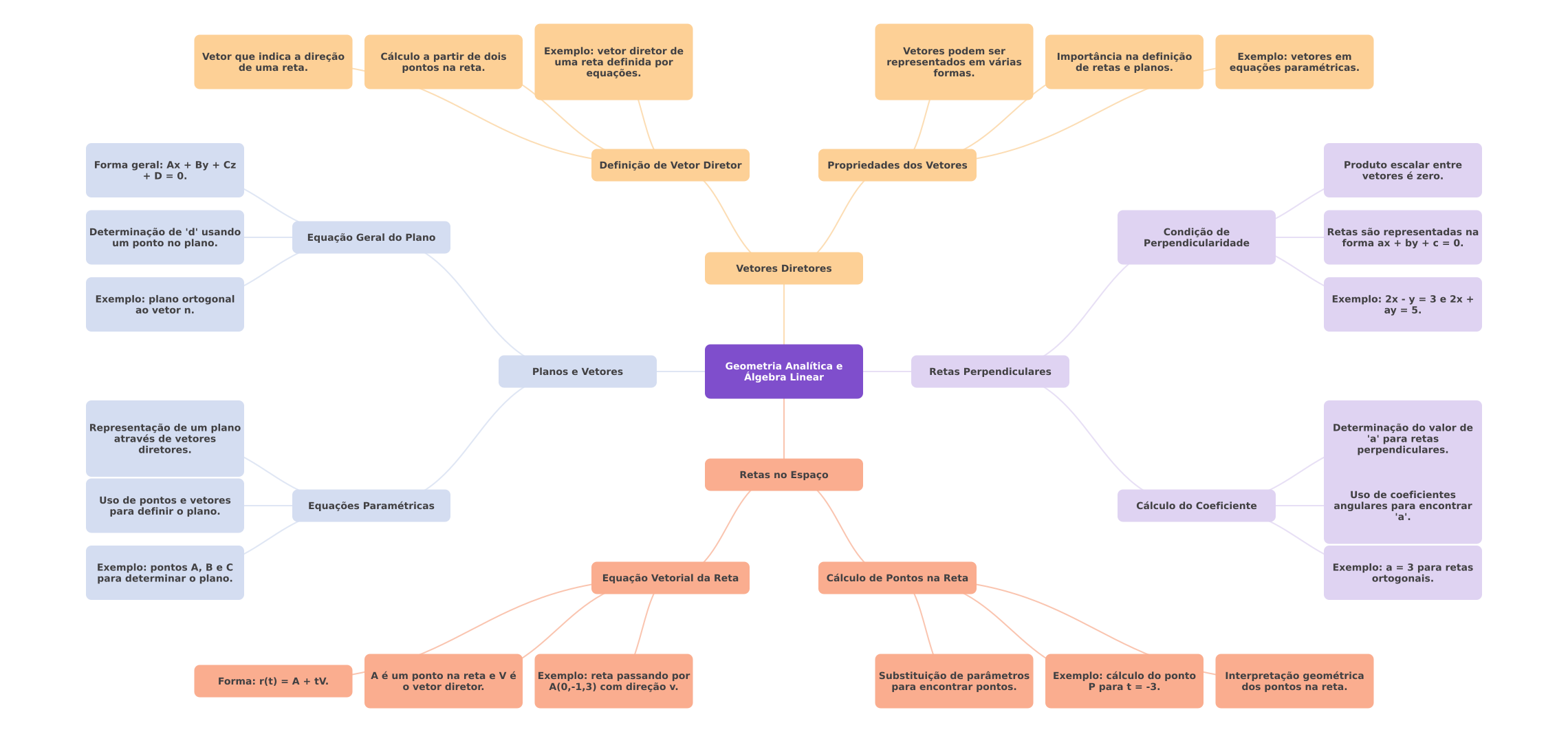 Vetor que indica a direção Cálculo a partir de dois Exemplo: vetor diretor de Vetores podem ser Importância na definição de uma reta. uma reta definida por representados em várias Exemplo: vetores em pontos na reta. equações. formas. de retas e planos. equações paramétricas. Forma geral: + By + Cz Definição de Vetor Diretor Propriedades dos Vetores Produto escalar entre vetores é zero. Determinação de 'd' usando Condição de Equação Geral do Plano Retas são representadas na um ponto no plano. Perpendicularidade forma ax + by + c = 0. Vetores Diretores Exemplo: plano ortogonal Exemplo: 2x = 3 e 2x + ao vetor n. ay 5. Geometria Analítica e Planos e Vetores Algebra Linear Retas Perpendiculares Representação de um plano Determinação do valor de através de vetores 'a' para retas diretores. perpendiculares. Retas no Espaço Uso de coeficientes Uso de pontos e vetores Equações Paramétricas Cálculo do Coeficiente para definir plano. angulares para encontrar 'a'. Exemplo: pontos e c Exemplo: a = 3 para retas para determinar plano. Equação Vetorial da Reta Cálculo de Pontos na Reta ortogonais. Forma: r(t) = A + tV. A é um ponto na reta e Vé Exemplo: reta passando por Substituição de parâmetros Exemplo: cálculo do ponto Interpretação geométrica vetor diretor. A(0,-1,3) com direção para encontrar pontos. P para -3. dos pontos na reta.