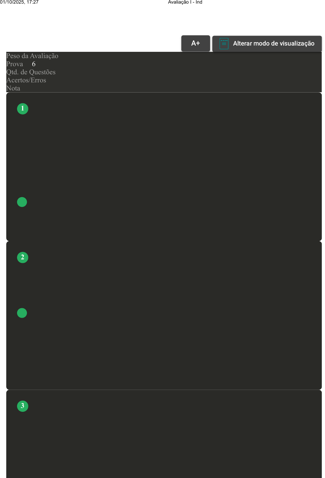 Prova Impressa GABARITO | Avaliação I - Individual (Cod.:1525906) Peso da Avaliação 2,00 Prova 106424935 Qtd. de Questões 10 Acertos/Erros 10/0 Nota 10,00 O Direito Ambiental possui diversos tipos de normas. Entre elas, destacam-se as resoluções do Conselho Nacional do Meio Ambiente (CONAMA), que complementam e tornam eficazes inúmeros princípios legais. A Lei da Política Nacional do Meio Ambiente (Lei n.° 6.938/1981) prevê funções e atribuições desse Conselho na estrutura da proteção ambiental brasileira. A respeito do CONAMA, assinale a alternativa CORRETA: A É um órgão meramente consultivo. B Integra o IBAMA. C Integra o SISNAMA (Sistema Nacional do Meio Ambiente). D É um órgão sem a participação da sociedade civil. Os objetivos e as finalidades inerentes a um gerenciamento ambiental nas empresas não podem e nem devem ser vistos como elementos isolados, por mais importantes que possam parecer num primeiro momento. Dessa forma, assinale a alternativa CORRETA que apresenta o trinômio das responsabilidades empresariais: A Responsabilidade ambiental; responsabilidade econômica; responsabilidade social. B Responsabilidade ambiental; responsabilidade gerencial; responsabilidade civil. C Responsabilidade civil; responsabilidade econômica; responsabilidade social. D Responsabilidade econômica; responsabilidade social; responsabilidade gerencial. Atualmente, para efeitos de ressarcimento na área cível, não há mais dano ambiental tolerável. Não existe mais a possibilidade de uma atividade produtiva se excluir da responsabilidade, alegando um dano residual ou permissível. Temos como exemplo um motorista de caminhão, que transporta produtos químicos para uma empresa, cuja licença ambiental está ativa. Vamos imaginar que um acidente ocorra e que boa parte do material químico seja despejada em um córrego situado em uma área de proteção ambiental. De acordo com a legislação ambiental vigente, assinale a alternativa CORRETA que indica quem seria o responsável pelo acidente: VOLTAR A+ Alterar modo de visualização 1 2 3 01/10/2025, 17:27 Avaliação I - Individual about:blank 1/4 varga Lápis A Somente o motorista que carregava a carga é o único responsável pelo crime ambiental. B O orgão que concedeu a licença para transporte será responsável pelo crime ambiental. C Somente a empresa que solicitou o transporte do material é responsável pelo crime ambiental. D Tanto motorista quanto a empresa são os responsáveis pelo crime ambiental. Dentre os órgãos do SISNAMA há um deles que tem a finalidade que realiza a gestão e fiscalização das unidades de conservação. Assinale a alternativa CORRETA que indica qual é esse órgão: A IBAMA. B MMA. C FEPAM. D ICMBio. A Resolução nº 001/86, do CONAMA, estabelece que o Estudo de Impacto Ambiental deverá obedecer algumas diretrizes gerais. Diante disso, a respeito dessas diretrizes, classifique V para as sentenças verdadeiras e F para as falsas: ( ) Contemplar todas as alternativas tecnológicas e de localização do projeto, confrontando-as com a hipótese de não execução do projeto. ( ) Identificar e avaliar sistematicamente os impactos ambientais gerados nas fases de implantação e operação das atividades. ( ) Definir os limites da área geográfica a ser direta ou indiretamente afetadapelos impactos, denominada área de influência do projeto, considerando, em todos os casos, a bacia hidrográfica na qual se localiza. ( ) Considerar os planos e programas governamentais, propostos e em implantação na área de influência do projeto e sua compatibilidade. Assinale a alternativa que apresenta a sequência CORRETA: A V – V – V – V. B V – F – F – V. C V – F – V – F. D F – V – F – V. 4 5 01/10/2025, 17:27 Avaliação I - Individual about:blank 2/4 O direito ambiental é uma disciplina jurídica tem o objetivo de estabelecer normas e princípios que assegurem a proteção do meio ambiente, e/ou como o conjunto de normas jurídicas que disciplinam a exploração dos recursos naturais em todas as suas formas e com vistas à qualidade de vida. Assinale a alternativa CORRETA que indica a que se refere a a Lei nº 7.347/1985: A Lei de Ação Civil Pública. B Lei de Recursos Hídricos. C Lei de Resíduos Sólidos. D Lei de Saneamento Básico. Sabe-se que há determinadas diferenças entre licença e o processo de licenciamento. Diante disso, assinale a alternativa CORRETA: A A licença é um procedimento administrativo e o licenciamento ambiental são atos administrativos de controle preventivo das atividades potencialmente poluidoras. B Não existe diferença entre os termos, os dois se referem ao procedimento administrativo. C O licenciamento ambiental é o ato administrativo que impõem condições e medidas de controle ambiental e a licença é um procedimento que compreende a instauração do processo, o licenciamento prévio, o licenciamento de instalação e o licenciamento de operação. D A licença ambiental é um ato administrativo de controle preventivo das atividades potencialmente poluidoras, enquanto que o licenciamento ambiental é um procedimento administrativo. De acordo com normativas nacionais e com a Lei nº 6.938/1981, artigo 3, inciso I da Política Nacional do Meio Ambiente, o meio ambiente tem uma determinada conceituação. Assinale a alternativa CORRETA que indica como é conceituado o meio ambiente: A O conjunto de condições, leis, influências e interações de ordem física, química, biológica, que permite, abriga e rege a vida em todas as suas formas. B O conjunto de condições, leis, influências e interações de ordem física, química, humana, que permite, abriga e rege a vida em todas as suas formas. C O conjunto de condições, leis, influências e interações de ordem física, química, biológica, que permite, abriga e rege a vida em algumas das suas formas. D O conjunto de condições, leis, influências e interações de or
