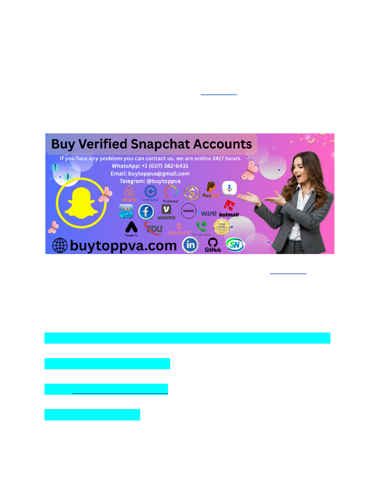 How to Buy Snapchat Account( 5.9) A Step-by-Step Guide ...2025 We live in a time where digital media (and yes even Snapchat) has become a part of our everyday lives. With millions of users worldwide, it is important for businesses and individuals to have a strong presence on Snapchat. purchase snapchat accounts If you try to cut time and just want to experience getting visible on internet, then buy snapchat accounts is a quick way to help you gain an audience! Why Buy Snapchat Accounts? In today’s digital space, social media requires a smart approach. Purchase Snapchat accounts can bring in many benefits for personal and business users. When you buy Snapchat accounts, you have instant access to an audience that is already engaged. It takes a long time to build up a solid following on social media, but if you have established accounts you can reach a big group of users through those accounts immediately. And, possession of Snapchat accounts will increase the credibility of your brand & visibility. If you face any problem you can contact us. we are online 24/7 hours WhatsApp: +1 (607) 382-6431 Email: buytoppva@gmail.com Telegram: @buytoppva https://buytoppva.com/product/buy-verified-snapchat-accounts/ https://buytoppva.com/product/buy-verified-snapchat-accounts/ mailto:buytoppva@gmail.com https://buytoppva.com/product/buy-verified-snapchat-accounts/ When you acquire existing accounts that have followers who are already engaged, you can immediately establish your brand and distinguish yourself as a major player in your industry, amidst all the online noise. Then again, selling and purchasing Snapchat accounts paves way for interesting collaborations and partnerships. Already existing on the platform, brands attract soon-to-be-influencers or partners looking to reach a wider audience and leverage a reach already in place for mutual benefit. How to Buy Snapchat Accounts When you search for Snapchat accounts to obtain, the single most important consideration is to choose a reliable provider like buytoppva. Begin by browsing the variety of accounts available, and keep an eye on snap scores, number of followers, and how active they are. Make sure to read reviews and do a little research before you buy. After you locate a great Snapchat account, simply complete the purchase process directly on their page. Be sure and fill in your address information correctly and follow payment instructions. You want to make sure the site is secure and that your personal information is safe during the transaction. Once you make payment, you will receive the login information for your new Snapchat account. Just remember to update the password immediately for extra security. Spend some time acquainting yourself with account settings and features, and soon you’ll be ready to make a big splash. As you begin to use your new Snapchat account remember to keep it real. Interact with your followers authentically and share content that really resonates with your crowd. It’s a great chance to get creative on the internet! Is It Secure to Buy Snapchat Accounts at buytoppva? When you buy Snapchat accounts from buytoppva , you need to have your research on your fingertips to be safe. buytoppva– Best Place to Buy Instagram Accounts buytoppva is known for its high-quality and quality accounts that you can depend on. They are also all about security and privacy and make it a point that all transactions are secured and protected from any hazards. They have strict vetting procedures to verify that each account is genuine and complies with Snapchat’s terms of service, minimizing the risk of anything going awry once you’ve made your purchase. When you settle on buytoppva, you can be assured you are working with a reliable service provider. Further, buytoppva has its committed customer services to address any questions or problems you may have about your Snapchat accounts. This kind of attention to detail makes buyi a different experience, and further establishes buytoppva as your top recommended place to get yourself a Snapchat account. Opting to avail buytoppva is also a safer choice as they provide security, stringent account verification, and excellent customer service. You don’t have to worry when you purchase Snapchat accounts through this trusted vendor. Why Choose Bulk Snapchat Accounts? When you buy Snapchat account bulk, you have the key to a world of opportunities for your business or personal brand. Or maybe that you’re now able to engage with multiple https://buytoppva.com/product/buy-verified-snapchat-accounts/ https://buytoppva.com/product/buy-verified-snapchat-accounts/ https://buytoppva.com/product/buy-verified-snapchat-accounts/ https://buytoppva.com/product/buy-verified-snapchat-accounts/ demographics at one time thanks to more accounts at your disposal. Creating several Snapchat accounts opens up the opportunity for you to test different content types, increase your exposure to potential followers, and try out a bunch of different approaches to see what really works to engage your audience. This degree of flexibility can put you at least one step ahead of your competition and enable you to continually respond to changes in trends or user needs as well. When you buy Snapchat accounts bulk, you save your precious time and energy, and you also stay a step ahead in the increasingly expanding world of social media. The scale the bulk snaps bring allows you to grow your snap account quickly and easily, while keeping authentic, quality engagement. If you face any problem you can contact us. we are online 24/7 hours WhatsApp: +1 (607) 382-6431 Email: buytoppva@gmail.com Telegram: @buytoppva https://buytoppva.com/product/buy-verified-snapchat-accounts/ Buy Snapchat Accounts Bulk One thing that is beneficial with regards to buy Snapchat accounts bulk is the savings that you just get when you buyin bulk. When in bulk, you can usually get several accounts with discounts or promotions attached to them, which can