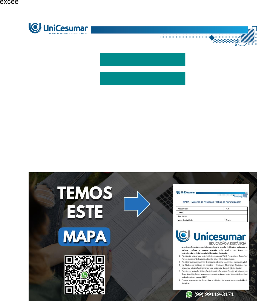 (99) 99119-3171 (99) 99119-3171 Olá!!! Somos da Assessoria Excellence Educacional e iremos te ajudar com este trabalho! Entre em contato conosco! PORTFÓLIO - RH - IMERSÃO PROFISSIONAL: PROCESSOS DE RECURSOS HUMANOS - 53_2025 PORTFÓLIO - RH - IMERSÃO PROFISSIONAL: PROCESSOS DE RECURSOS HUMANOS - 53_2025 Recrutamento e Entrevista Simulada! excee Olá, estudante! Preparado(a) para dar início a esta Atividade MAPA? Fique tranquilo(a) e analise cuidadosamente as orientações, a seguir: Esta Atividade foi pensada e elaborada especialmente para VOCÊ que participou do Projeto de Extensão de “Análise, Ajuste e Mentoria de Currículos”, pois, sua realização será muito mais simples e imersiva neste contexto. PORÉM, caso você não tenha realizado o Projeto de Extensão, fique tranquilo(a) porque temos uma alternativa para que não sofra nenhum prejuízo em relação à esta disciplina de Imersão Profissional. Neste momento, eu te convido a ler cuidadosa e atentamente as informações e orientações que virão na sequência. A seguir, você encontrará algumas: 1) Informações Gerais sobre a Atividade; 2) Orientações para quem realizou o Projeto de Extensão e 3) Orientações para quem não participou do Projeto de Extensão. Sendo assim, leia a releia quantas vezes achar necessário para não deixar passar nenhum detalhe importante para uma entrega de qualidade. 1) INFORMAÇÕES GERAIS SOBRE ESTE MAPA: Para fins desta Atividade MAPA, considere que você é o(a) profissional responsável pelos Processos de Seleção da “GRH Talents Factory”, uma grande indústria do ramo de cosméticos e que emprega mais de 2.000 (dois mil) funcionários e, você acabou de receber uma nova demanda para realizar uma entrevista de emprego com um candidato(a) a uma vaga específica. Essa entrevista deverá ser gravada, por isso, acompanhe as observações 1 e 2, a seguir. OBSERVAÇÃO IMPORTANTE 1: Para fins de realização e gravação da sua Entrevista Simulada, você deverá escolher apenas UMA das dez perguntas que você elaborou para compor o seu Banco de Questões Comportamentais para uso universal, entregues em sua Atividade de Estudo 1, realizada anteriormente. Independentemente da ferramenta/plataforma escolhida para gravação, o vídeo da entrevista precisa ser baixado e submetido no YouTube para posterior envio do link de acesso. OBSERVAÇÃO IMPORTANTE 2: Esta Atividade MAPA será entregue em três etapas, excee conforme você verá logo depois das orientações iniciais: ETAPA 1; ETAPA 2 e ETAPA 3, disponíveis no campo “AGORA, É COM VOCÊ, ESTUDANTE! O QUE DEVERÁ SER ENTREGUE NESTA ATIVIDADE MAPA?”. Cada uma das três etapas deverá ser devidamente preenchida no Formulário Padrão MAPA. 2) ORIENTAÇÕES PARA QUEM REALIZOU O PROJETO DE EXTENSÃO DE “Análise, Ajuste e Mentoria de Currículos”: Escolha um dos currículos analisados e ajustados por você durante a realização do Projeto de Extensão de “Análise, Ajuste e Mentoria de Currículos” e, em seguida, entre com contato com o(a) proprietário(a) desse currículo selecionado para combinar uma Entrevista Simulada. Nessa Entrevista Simulada, você assumirá o papel de Entrevistador(a) e poderá optar por qualquer ferramenta ou plataforma para gravar a entrevista, a qual, deverá durar entre 3 e 4 minutos, no máximo. 3) ORIENTAÇÕES PARA QUEM NÃO REALIZOU O PROJETO DE EXTENSÃO: Uma vez que você NÃO tenha participado do Projeto de Extensão de “Análise, Ajuste e Mentoria de Currículos”, será necessário realizar uma Captação de Currículo, cujo(a) proprietário(a) desse documento deverá estar disposto(a) a participar de uma Entrevista Simulada contigo. Nessa Entrevista Simulada, você assumirá o papel de Entrevistador(a) e poderá optar por qualquer ferramenta ou plataforma para gravar a entrevista, a qual, deverá durar entre 3 e 4 minutos, no máximo. IMPORTANTE: Tanto se você participou do projeto de extensão, ou não, no vídeo da sua entrevista você será avaliado com base nos seguintes critérios: 1. Abertura. Nesta etapa da entrevista você se apresenta brevemente ao(à) candidato(a) e estabelece uma abertura inicial de diálogo (quebra-gelo) com a pessoa e, também, informa que a entrevista será gravada para fins de trabalho acadêmico. 2. Realização da Pergunta. Aqui você faz a pergunta alinhando-a ao cargo e às informações do currículo da pessoa entrevistada. 3. Tempo (de 3 a 4 minutos) e performance enquanto entrevistador(a). AGORA, É COM VOCÊ, ESTUDANTE! O QUE DEVERÁ SER ENTREGUE NESTA ATIVIDADE MAPA? excee Para efetivar a entrega desta Atividade MAPA, seguindo aos padrões previamente estabelecidos para fins de avaliação, você deverá realizar as seguintes ETAPAS no Formulário Padrão disponível para download em seu ambiente Studeo: ETAPA 1: Uma vez escolhido o currículo, descreva o cargo para o qual o(a) candidato(a) está sendo entrevistado(a). Orientações Gerais Etapa 1: - Nesta etapa, é preciso trazer informações gerais como: título do cargo, informações gerais sobre as condições de trabalho, principais atividades e responsabilidades do cargo, requisitos e qualificações para ocupar a vaga. - Essas informações deverão ser inseridas no campo específico do Formulário Padrão MAPA. - Este cargo pode ser criado por você, de acordo com o interesse profissional da pessoa que você irá entrevistar. Por exemplo, se no currículo do seu candidato constar que o objetivo profissional é administrativo, você fará a descrição de uma vaga de auxiliar/assistente administrativo, ou seja, irá adaptá-lo conforme o objetivo do seu candidato. ETAPA 2: Uma vez definida quem será a pessoa entrevistada e alinhado com a mesma sobre como ocorrerá a simulação, você deverá gravar essa entrevista, cuja duração do vídeo não poderá passar de 3 a 4 minutos. Orientações Gerais Etapa 2: - Vale reforçar aqui que, para fins de realização e gravação d