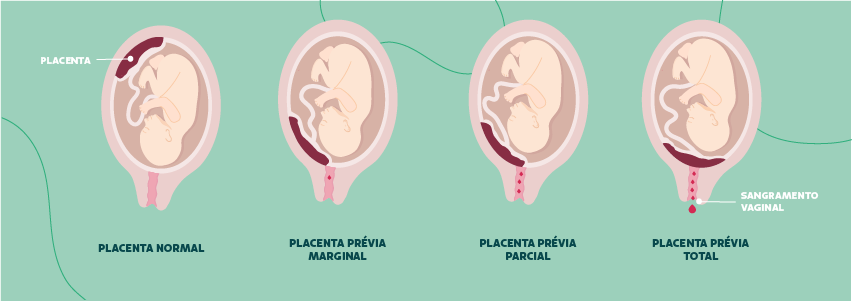 PLACENTA SANGRAMENTO VAGINAL PLACENTA NORMAL PLACENTA PRÉVIA PLACENTA PRÉVIA PLACENTA PRÉVIA MARGINAL PARCIAL TOTAL