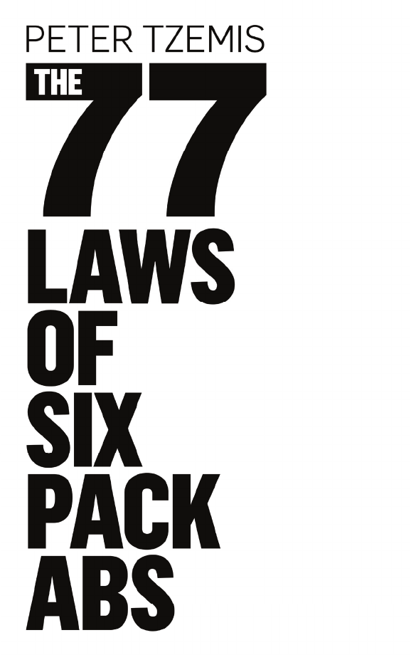 Legal Disclaimer Warning: All information presented in The 77 Laws Of Six Pack Abs is for educational and resource purposes only. It is not a substitute for, or an addition to, any advice given to you or by your physician or health care provider. Consult your physician before making any changes to your lifestyle, diet, or exercise habits. You are solely responsible for the way information in The 77 Laws Of Six Pack Abs is perceived and utilized, and doing so it at your own risk. In no way will Peter Tzemis, Peter Tzemis Publishing, or any persons asso- ciated with The 77 Laws Of Six Pack Abs be held responsible for any injuries or problems that may occur due to the use of this book or the advice within it. Personal Disclaimer I am not a doctor and so my advice should not replace that of a doctor’s. Any advice given in the book, if you choose to follow it, should be dis- cussed between you and your doctor. Results Disclaimer Required Legal Disclaimer: Due to recent laws from the FTC, it is required that all companies identify what a “typical” result is. The flat out truth is that a typical result is nothing. No fat loss, no six pack and no health improvements. This is because a typical person doesn’t take action. The testimonials I share on various pages on my web sites are not typical, they’re pictures of action takers who exercised and ate well. If you want those same results, work hard and implement what we cover in this book. Copyright Notice Published by: Peter Tzemis Publishing Copyright © 2018 All material in this guide is, unless otherwise stated, the property of Peter Tzemis and Peter Tzemis Publishing. Copyright and other intellectual property laws protect these materials. Reproduction or retransmission of the materials, in the whole or in part, in any manner, without the prior written consent of the copyright holder, is a violation of copyright law. To Mom and Dad Who taught me that persistence over perfection wins every time. CONTENTS Foreword . . . . . . . . . . . . . . . . . . . . . . . . . . . . . . . . . . . . . . . . . . . . . ix Law #1 Define Success Before You Chase It . . . . . . . . . . . . . . . . . . . . 1 Law #2 Know Your “TRUE” Body fat % . . . . . . . . . . . . . . . . . . . . . . 3 Law #3 Master The Calorie Game . . . . . . . . . . . . . . . . . . . . . . . . . . . 6 Law #4 Stand Up . . . . . . . . . . . . . . . . . . . . . . . . . . . . . . . . . . . . . . . . 9 Law #5 Don’t Drink Your Calories . . . . . . . . . . . . . . . . . . . . . . . . . 11 Law #6 Respect The Timeline . . . . . . . . . . . . . . . . . . . . . . . . . . . . . . 13 Law #7 Drink Your Forgotten Medicine . . . . . . . . . . . . . . . . . . . . . . 15 Law #8 Restrict Your Feeding Window. . . . . . . . . . . . . . . . . . . . . . . 18 Law #9 Learn To Fail small . . . . . . . . . . . . . . . . . . . . . . . . . . . . . . . . 21 Law #10 Work With Your NeuroType . . . . . . . . . . . . . . . . . . . . . . . 23 Law #11 The 20 Food Rule . . . . . . . . . . . . . . . . . . . . . . . . . . . . . . . 28 Law #12 Fish Oil And Curcumin . . . . . . . . . . . . . . . . . . . . . . . . . . . 32 Law #13 Keep A Regular Eating Schedule . . . . . . . . . . . . . . . . . . . . 34 Law #14 Strengthen Your Neural-Abdominal Connection . . . . . . . . 36 Law #15 Take Cold Showers Every Day . . . . . . . . . . . . . . . . . . . . . . 38 Law #16 Train Fasted . . . . . . . . . . . . . . . . . . . . . . . . . . . . . . . . . . . . 41 Law #17 Make A NOT To Do List . . . . . . . . . . . . . . . . . . . . . . . . . 43 Law #18 Eliminate Trans Fat Entirely . . . . . . . . . . . . . . . . . . . . . . . . 45 Law #19 Mix Energy Systems And Ab Work . . . . . . . . . . . . . . . . . . 46 Law #20 Eat Pineapple Post Workout . . . . . . . . . . . . . . . . . . . . . . . 48 Law #21 Eat Slow . . . . . . . . . . . . . . . . . . . . . . . . . . . . . . . . . . . . . . 50 Law #22 Never Eat At Airports . . . . . . . . . . . . . . . . . . . . . . . . . . . . 51 Law #23 Superdose On Vitamin D . . . . . . . . . . . . . . . . . . . . . . . . . 52 Law #24 Invest In A High-Quality Fat Burner . . . . . . . . . . . . . . . . . 54 Law #25 Experiment With Sprints, Marathons And Intervals . . . . . . . . . . . . . . . . . . . . . . . . . . . . . . . . . . . . . . . 56 Law #26 Plan (and enjoy) cheat meals . . . . . . . . . . . . . . . . . . . . . . . 60 LAW #27 100 Reasons . . . . . . . . . . . . . . . . . . . . . . . . . . . . . . . . . . . 62 Law #28 Develop Your Deep Abs . . . . . . . . . . . . . . . . . . . . . . . . . . . 64 Law #29 Stop Watching Porn . . . . . . . . . . . . . . . . . . . . . . . . . . . . . . 66 Law #30 Supplement With Fiber . . . . . . . . . . . . . . . . . . . . . . . . . . . 68 Law #31 Don’t Overdo The Cardio . . . . . . . . . . . . . . . . . . . . . . . . . 70 Law #32 Minimize Temptation Proximity . . . . . . . . . . . . . . . . . . . . 72 Law #33 Make Your First Meal Perfect . . . . . . . . . . . . . . . . . . . . . . . 74 Law #34 Get 80-90% Of Your Calories From Filling Foods . . . . . . . 75 Law #35 Get Hydrated . . . . . . . . . . . . . . . . . . . . . . . . . . . . . . . . . . 77 Law #36 Load Up On Polyphenols . . . . . . . . . . . . . . . . . . . . . . . . . 79 Law #37 Sleep Deep, Sleep Long And Sleep More . . . . . . . . . . . . . . 80 Law #38 Front Your protein . . . . . . . . . . . . . . . . . . . . . . . . . . . . . . . 82 Law #39 Weigh Yourself Daily . . . . . . . . . . . . . . . . . . . . . . . . . . . . . 84 Law #40 Treat Yourself Like A Patient . . . . . . . . . . . . . . . . . . . . . . . 86 Law #41 Buy Single Servings . . . . . . . . . . . . . . . . . . . . . . . . . . . . . . 88 Law #42 Raise Your Standards . . . . . . . . . . . . . . . . . . . . . . . . . . . . . 90 Law #43 Journal Nightly . . . . . . . . . . . . . . . . . . . . . . . . . . . . . . . . . 92 Law #44 Avoid “Diet” Foods . . . . . . . . . . . . . . . . . . . . . . . . . . . . . . 94 Law #45 Get Obsessed . . . . . . . . . . 