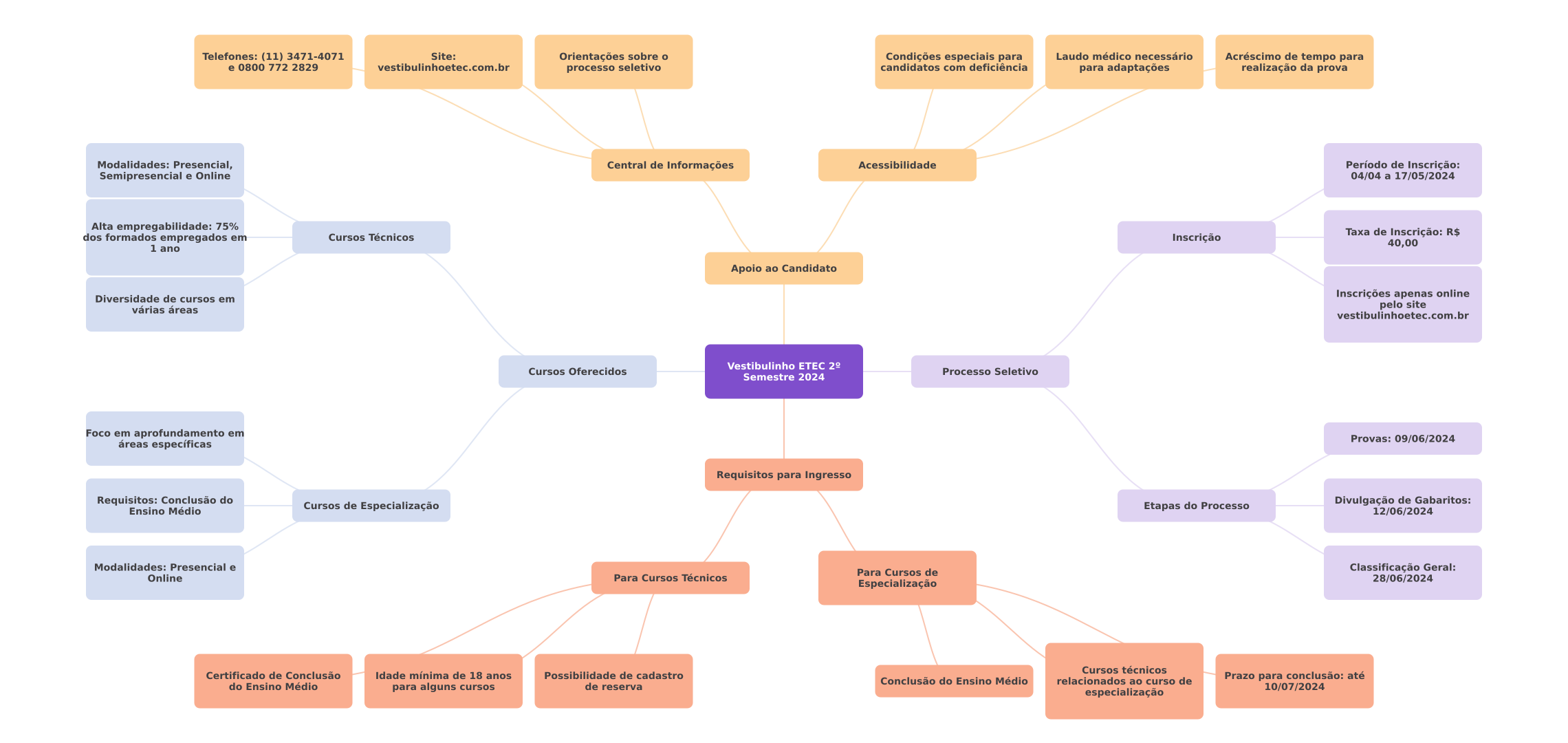 Telefones: (11) 3471-4071 Site: Orientações sobre Condições especiais para Laudo médico necessário Acréscimo de tempo para e 0800 772 2829 processo seletivo candidatos com deficiência para adaptações realização da prova Modalidades: Presencial, Central de Informações Acessibilidade Período de Inscrição: Semipresencial e Online 04/04 a 17/05/2024 Alta empregabilidade: 75% Cursos Técnicos Taxa de Inscrição: R$ dos formados empregados em Inscrição 40,00 1 ano Apoio ao Candidato Diversidade de cursos em Inscrições apenas online várias áreas pelo site vestibulinhoetec.com.br Vestibulinho ETEC Cursos Oferecidos Processo Seletivo Semestre 2024 Foco em aprofundamento em Provas: 09/06/2024 áreas específicas Requisitos para Ingresso Requisitos: Conclusão do Ensino Médio Cursos de Especialização Etapas do Processo Divulgação de Gabaritos: 12/06/2024 Modalidades: Presencial e Classificação Geral: Para Cursos de Online Para Cursos Técnicos 28/06/2024 Especialização Cursos técnicos Certificado de Conclusão Idade mínima de 18 anos Possibilidade de cadastro Conclusão do Ensino Médio relacionados ao curso de Prazo para conclusão: até do Ensino Médio para alguns cursos de reserva 10/07/2024 especialização
