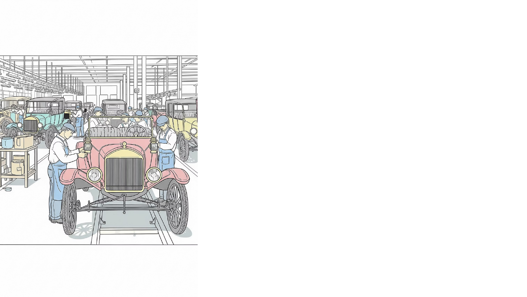 O FORDISMO NA SEGUNDA REVOLUÇÃO INDUSTRIAL Uma jornada pela revolução produtiva que transformou a indústria moderna e moldou o capitalismo do século XX A SEGUNDA REVOLUÇÃO INDUSTRIAL: O CONTEXTO DA TRANSFORMAÇÃO 01 EXPANSÃO GLOBAL (1870-1920) Período de transformação industrial sem precedentes, expandindo-se da Europa para América e Ásia 02 NOVAS ENERGIAS Eletricidade e petróleo substituem o vapor; aço torna-se a matéria-prima fundamental da modernização 03 GRANDES INDÚSTRIAS Nascimento dos setores metalúrgico, siderúrgico e automobilístico em escala massiva 04 RACIONALIZAÇÃO DO TRABALHO Surgimento de novos métodos científicos: taylorismo e fordismo revolucionam a produção FREDERICK TAYLOR E O TAYLORISMO: A BASE CIENTÍFICA PRINCÍPIOS DA GERÊNCIA CIENTÍFICA Frederick Winslow Taylor desenvolveu um sistema revolucionário focado na eficiência máxima e eliminação total do desperdício no ambiente fabril. Estudo sistemático de movimentos e tempos para otimizar cada tarefa operária Adaptação rigorosa do trabalhador ao ritmo preciso da máquina Controle científico de cada etapa do processo produtivo Seleção e treinamento meticuloso dos operários mais aptos LIMITAÇÕES DO SISTEMA Apesar dos avanços, o taylorism o apresenta va restrições important es: pouca atenção à inovação tecnológi ca e visão fragment ada do fluxo produtivo completo. HENRY FORD E A REVOLUÇÃO NA PRODUÇÃO INDUSTRIAL 1 1903 Fundação da Ford Motor Company em Detroit, estabelecendo as bases de um império automobilístico 2 1909 Ford adapta e expande radicalmente os princípios tayloristas para a indústria automobilística 3 1913-1914 Introdução revolucionária da linha de montagem móvel com esteira rolante contínua 4 MODELO T Produção em massa de um carro acessível, padronizado e disponível para as classes trabalhadoras CARACTERÍSTICAS FUNDAMENTAIS DO FORDISMO LINHA DE MONTAGEM O produto se move continuamente até o operário, que permanece fixo executando tarefa única e repetitiva PADRONIZAÇÃO TOTAL Modelos uniformes e intercambiáveis facilitam produção, manutenção e reposição de peças VELOCIDADE EXTREMA Redução drástica: de 500 minutos para apenas 2 minutos na produção de cada automóvel ESPECIALIZAÇÃO RÍGIDA Divisão extrema do trabalho com tarefas simples, repetitivas e baixa qualificação exigida IMPACTOS ECONÔMICOS E SOCIAIS DO FORDISMO TRANSFORMAÇÕES PROFUNDAS DEMOCRATIZAÇÃO DO CONSUMO Barateamento radical dos produtos ampliou o mercado e criou nova classe consumidora PRODUTIVIDADE E LUCROS Aumento exponencial da produtividade gerou lucros industriais sem precedentes históricos PADRÃO DE VIDA Operários passaram a consumir os próprios produtos que fabricavam - o sonho americano O LADO OBSCURO Críticas importantes emergiram: extrema mecanização do trabalho humano, profunda alienação do operário e rigidez inflexível do sistema produtivo. FORDISMO E TAYLORISMO: SEMELHANÇAS E DIFERENÇAS OBJETIVOS COMPARTILHADOS Ambos os sistemas buscam maximizar eficiência, produtividade industrial e eliminação sistemática de desperdícios no processo fabril CONTROLE VERTICAL FORD Fordismo vai além: incorpora controle total desde extração de matéria- prima até distribuição final do produto acabado AUTOMAÇÃO E TECNOLOGIA Ford automatiza processos inteiros, investindo massivamente em maquinário e inovação tecnológica contínua FOCO DO TAYLORISMO Concentra-se no trabalhador individual, seus movimentos corporais e otimização de gestos repetitivos FOCO DO FORDISMO Concentra-se no fluxo produtivo total, integrando todas as etapas da cadeia industrial O DECLÍNIO DO FORDISMO E A TRANSIÇÃO PARA O TOYOTISMO CRISES DO PETRÓLEO Anos 1970: choques petrolíferos expõem vulnerabilidade do modelo fordista COMPETIÇÃO JAPONESA Indústria japonesa apresenta alternativa mais flexível e eficiente NOVO PARADIGMA Toyotismo surge com produção enxuta e qualidade total LIMITAÇÕES ESTRUTURAIS DO FORDISMO Inflexibilidade extrema frente a mudanças de mercado Superprodução e acúmulo excessivo de estoques Incapacidade de personalizar produtos Desperdício de recursos e materiais LEGADO DO FORDISMO NA INDÚSTRIA MODERNA BASE DA PRODUÇÃO EM MASSA Fundamento essencial para toda a indústria automobilística global e produção contemporânea em larga escala INFLUÊNCIA MULTISSETORIAL Impacto profundo em setores siderúrgico, têxtil, eletrônico e praticamente toda manufatura industrial moderna MARCO ORGANIZACIONAL Revolucionou a organização do trabalho e estabeleceu padrões para o desenvolvimento do capitalismo industrial INSPIRAÇÃO CONTÍNUA Serve de referência e inspiração para modelos produtivos posteriores, mesmo com suas reconhecidas limitações FORDISMO: A REVOLUÇÃO QUE MOLDOU O SÉCULO XX SÍMBOLO DE UMA ERA Fordismo como ícone definitivo da Segunda Revolução Industrial e da modernização produtiva global TRANSFORMAÇÃO TOTAL Revolucionou indústria, trabalho e consumo em escala planetária, criando novo paradigma econômico RAÍZES DO PRESENTE Compreender o fordismo é entender as fundações da produção industrial contemporânea REFLEXÃO FINAL Como os desafios históricos do fordismo 4 alienação do trabalho, rigidez produtiva e impactos ambientais 4 ainda ecoam e se manifestam nas indústrias atuais da Era Digital?