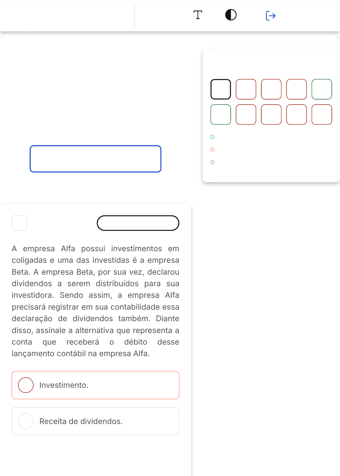 Você acertou 2 de 10 questões Verifique o seu desempenho e continue treinando! Você pode refazer o exercício quantas vezes quiser. Verificar Desempenho A B 1 Marcar para revisão A empresa Alfa possui investimentos em coligadas e uma das investidas é a empresa Beta. A empresa Beta, por sua vez, declarou dividendos a serem distribuídos para sua investidora. Sendo assim, a empresa Alfa precisará registrar em sua contabilidade essa declaração de dividendos também. Diante disso, assinale a alternativa que representa a conta que receberá o débito desse lançamento contábil na empresa Alfa. Investimento. Receita de dividendos. Questão 1 de 10 Corretas (2) Incorretas (8) Em branco (0) 1 2 3 4 5 6 7 8 9 10 Lista de exercícios Provisões,… Passivos Contingentes e Ativos Contingentes- Nbc Tg 25 Sair C D E Receita financeira. Dividendos a receber. Dividendos a pagar. Resposta incorreta Opa! A alternativa correta é a letra D. Confira o gabarito comentado! Gabarito Comentado O lançamento contábil referente ao registro da declaração de dividendos é o débito na conta dividendos a receber e o crédito na conta investimento. D - Dividendos a Receber C - Investimentos 2 Marcar para revisão (INSTITUTO AOCP, 2015 - adaptada). Assinale a alternativa que representa o método de contabilização por meio do qual o investimento é inicialmente reconhecido pelo custo e, a partir daí, é ajustado para refletir a alteração pós-aquisição na participação do investidor sobre os ativos líquidos da investida. A B C D E Método de investimento em conjunto. Método de influência significativa. Método de combinação de negócios. Método de negócio em conjunto. Método da equivalência patrimonial. Resposta incorreta Opa! A alternativa correta é a letra E. Confira o gabarito comentado! Gabarito Comentado O método da equivalência patrimonial é o que se encaixa na descrição dada no enunciado. Este método é utilizado quando um investidor tem influência significativa, mas não o controle total, sobre uma investida. Inicialmente, o investimento é registrado pelo seu custo. Posteriormente, este valor é ajustado para refletir a participação do investidor nos lucros ou prejuízos da investida após a aquisição. Portanto, a alternativa correta é a que menciona o método da equivalência patrimonial. A B 3 Marcar para revisão (QUADRIX, 2021 - adaptada). A provisão para contingências nada mais é que uma despesa que envolve valores financeiros que ainda não foram pagos, mas derivam de fatos geradores contábeis já ocorridos. Em resumo, em um balanço, a provisão é a despesa configurada como ocorrida, mesmo que ainda não tenha sido paga, aprovisionada para eventos futuros incertos. Assim que essa perda de ativo ou obrigação se torna totalmente previsível, ela deixa de ser considerada como uma provisão contábil. De acordo com a NBC TG 25 (R1) - provisões, passivos contingentes e ativos contingentes, julgue os itens que se seguem. I. Quando a entidade tiver uma obrigação presente, legal ou não formalizada, como resultado de evento passado, uma provisão deverá ser reconhecida. II. Quando for provável que uma saída de recursos que incorporam benefícios econômicos para liquidar a obrigação será necessária, uma provisão deverá ser reconhecida. III. Quando puder ser feita uma estimativa confiável do valor da obrigação, uma provisão deverá ser reconhecida. Assinale a alternativa correta. Apenas o item I está certo. Apenas o item II está certo. C D E Apenas os itens I e II estão certos. Apenas os itens II e III estão certos. Os itens I, II e III estão certos. Resposta incorreta Opa! A alternativa correta é a letra E. Confira o gabarito comentado! Gabarito Comentado Todos os itens apresentados estão corretos, logo uma provisão deverá ser reconhecida quando: A entidade tiver uma obrigação presente, legal ou não formalizada, como resultado de evento passado; For provável que uma saída de recursos que incorporam benefícios econômicos para liquidar a obrigação será necessária; Puder ser feita uma estimativa confiável do valor da obrigação. 4 Marcar para revisão (VUNESP, 2018 - adaptada). O reconhecimento, a mensuração e a evidenciação de um Ativo contingente, de um Passivo contingente e de uma provisão gera A B C D E muitas dúvidas na prática contábil. Diante disso, em relação a NBC TG 25 - Provisões, Passivos Contingentes e Ativos Contingentes - assinale a alternativa correta. Quando uma entrada de benefícios for considerada remota, deve-se reconhecer um ativo contingente. Quando uma obrigação presente for considerada provável, mas não passível de mensuração, deve-se divulgar o fato em nota explicativa. Quando uma obrigação presente for considerada remota, mas passível de mensuração confiável, deve- -se reconhecer uma provisão. Quando uma obrigação possível puder ser mensurada de forma confiável, deve-se reconhecer um ativo contingente. Quando uma obrigação presente e provável não puder ser mensurada de forma confiável, deve-se reconhecer uma provisão. Resposta incorreta Opa! A alternativa correta é a letra B. Confira o gabarito comentado! Gabarito Comentado A B C Quando uma obrigação presente for considerada provável, mas não passível de mensuração, deve-se divulgar o fato em nota explicativa. A NBC TG 25 - Provisões, Passivos Contingentes e Ativos Contingentes - estabelece que, quando uma obrigação presente for considerada provável, mas não passível de mensuração, deve-se divulgar o fato em nota explicativa. 5 Marcar para revisão (FGV, 2021). Um grupo de empregados acionou uma empresa na justiça, pedindo uma indenização no valor de R$ 100.000. Os advogados da empresa consideravam que a perda da causa na justiça era provável. Assinale a opção que indica o correto tratamento contábil do caso nas demonstrações contábeis da empresa. Constituição de provisão para contingên