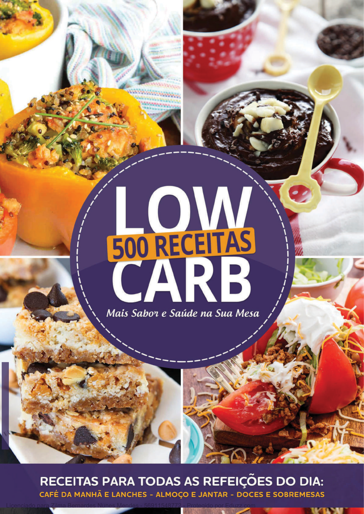 *I M A G E N S M E R A M E N T E I L U S T R A T IV A S * Licenciado para Zilma Bernardes Nunes Mendes - 56911548772 - Protegido por Eduzz.com “Esta Cópia é de seu Uso Exclusivo e está Vinculada ao seu CPF ou CNPJ” É ilegal copiar, roubar ou distribuir este livro digital ou parte dele. Vender esse livro digital ou compartilhá-lo digitalmente sem autorização do autor é um crime. É ilegal contribuir para este crime. Qualquer violação deste copyright será punida com a extensão máxima permitida por lei. ATENÇÃO Licenciado para Zilma Bernardes Nunes Mendes - 56911548772 - Protegido por Eduzz.com As sugestões de receitas retratadas neste livro têm como único objetivo informar e educar sobre uma alimentação saudável e balanceada. Este livro de receitas está disponível baseando-se no completo entendimento de que ele não oferece nenhum tipo de prescrição médica e de que não tem intenção nenhuma de substituir orientações médicas ou diagnósticos de profissionais da área de saúde, assim como, não tem a intenção de ser usado como tratamento para qualquer condição de saúde. É de total importância que, antes de começar qualquer dieta ou reeducação alimentar, inclusive a alimentação sugerida neste livro, você tenha uma aprovação completa de algum profissional licenciado da área. O autor se exime completamente de qualquer responsabilidade sobre o uso, direto ou indireto de qualquer informação contida neste livro digital. Diante desta formalidade, há a necessidade de se cobrir os aspectos legais sobre os quais este livro está publicado. TERMOS DE RESPONSABILIDADE Licenciado para Zilma Bernardes Nunes Mendes - 56911548772 - Protegido por Eduzz.com > Este livro digital é composto de diversas páginas e caso você queira ler um tópico em específico, basta ir até o índice e Clicar no capítulo ou receita desejada. Em seguida você será redirecionado para a página. Para voltar rapidamente ao topo deste livro digital, basta você clicar na imagem do canto inferior direito que se encontra no final de cada página deste livro. Demonstração da Imagem para Voltar ao Topo DICAS DE USO Licenciado para Zilma Bernardes Nunes Mendes - 56911548772 - Protegido por Eduzz.com 5 > ÍNDICE Introdução ....................................................................................... Farinhas e Leites Low Carb ........................................................ Patês ................................................................................................. Molhos Low Carb .......................................................................... Café da Manhã & Lanches .......................................................... Almoço & Jantar | Aves ............................................................... Almoço & Jantar | Carnes Vermelhas ..................................... Almoço & Jantar | Peixes ............................................................ Almoço & Jantar | Legumes & Vegetais ................................. Almoço & Jantar | Saladas .......................................................... Almoço & Jantar | Sopas & Cremes ......................................... Almoço & Jantar | Tortas & Suflês ........................................... Doces & Sobremesas ................................................................... Bebidas ............................................................................................. Sobre o Autor ................................................................................ 06 07 15 20 28 68 101 148 187 233 245 257 264 302 306 Licenciado para Zilma Bernardes Nunes Mendes - 56911548772 - Protegido por Eduzz.com 6 > Para quem quer Manter uma Vida Saudável, é Imprescindível Contar com uma Alimentação Adequada para Adquirir Qualidade de Vida e Saúde, o que nem sempre é uma Tarefa Fácil. Para as Pessoas com Sobre Peso ou que Querem Manter uma Alimentação Saudável, esta Tarefa torna-se ainda mais Complicada, pois é Necessário Certos Cuidados com a Alimentação. Sabendo das restrições que existem na Dieta Low Carb, o Livro Digital 500 Receitas Low Carb tem como Objetivo Trazer toda a Qualidade na Alimentação Low Carb sem Comprometer a Saúde e o Emagrecimento Adequado à Dieta. Com Receitas Elaboradas Especialmente para quem faz a Dieta Low Carb, sem Perder Aquele Sabor Delicioso. As Receitas encontradas neste Livro Digital possuem todos os Cuidados Necessários para a Ingestão Adequada de Nutrientes. Aqui, Você Encontrará as Mais Diversas Receitas para o seu Café da Manhã, Lanche, Almoço, Jantar e o Melhor de Tudo: a Sobremesa! Tudo preparado com o Intuito de Manter a sua Vida mais Saudável e Saborosa. Desfrute das Delícias deste Livro e Bom Apetite! MAIS SABOR E SAÚDE NA SUA MESA! Licenciado para Zilma Bernardes Nunes Mendes - 56911548772 - Protegido por Eduzz.com 7 > FARINHAS & LEITES Farinha de Frango ......................................................................... Farinha de Amendoim .................................................................. Farinha de Berinjela ..................................................................... Farinha de Linhaça ........................................................................ Farinha de Maracujá ..................................................................... Farinha de Semente de Abóbora .............................................. Farinha de Semente de Girassol ............................................... Farinha de Coco ............................................................................ Leite de Castanha de Caju .......................................................... Leite de Coco ................................................................................. Leite de Gergelim ......................................................................... Leite de Amendoim ...................................................................... 