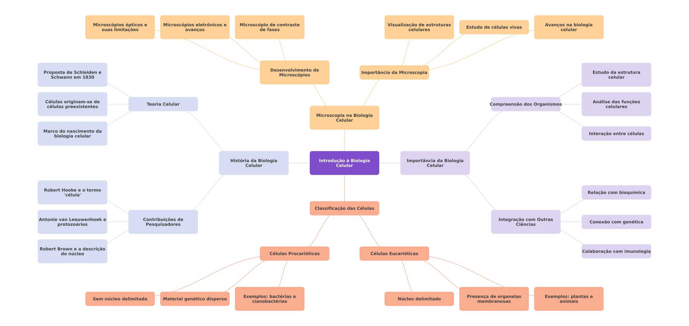 Microscópios ópticos e Microscópios eletrônicos e Microscópio de contraste Visualização de estruturas Estudo de células vivas Avanços na biologia suas limitações avanços de fases celulares celular Desenvolvimento de Proposta de Schleiden e Schwann em 1830 Microscópios Importância da Microscopia Estudo da estrutura celular Células originam-se de Teoria Celular células preexistentes Compreensão dos Análise das funções celulares Microscopia na Biologia Celular Marco do nascimento da biologia celular Interação entre células História da Biologia Introdução à Biologia Importância da Biologia Celular Celular Celular Robert Hooke e termo 'célula' Relação com bioquímica Classificação das Células Antonie van Leeuwenhoek e Contribuições de Integração com Outras protozoários Pesquisadores Ciências Conexão com genética Robert Brown e a descrição do núcleo Células Procarióticas Células Eucarióticas Colaboração com imunologia Sem núcleo delimitado Material genético disperso Exemplos: bactérias e Núcleo delimitado Presença de organelas Exemplos: plantas e cianobactérias membranosas animais