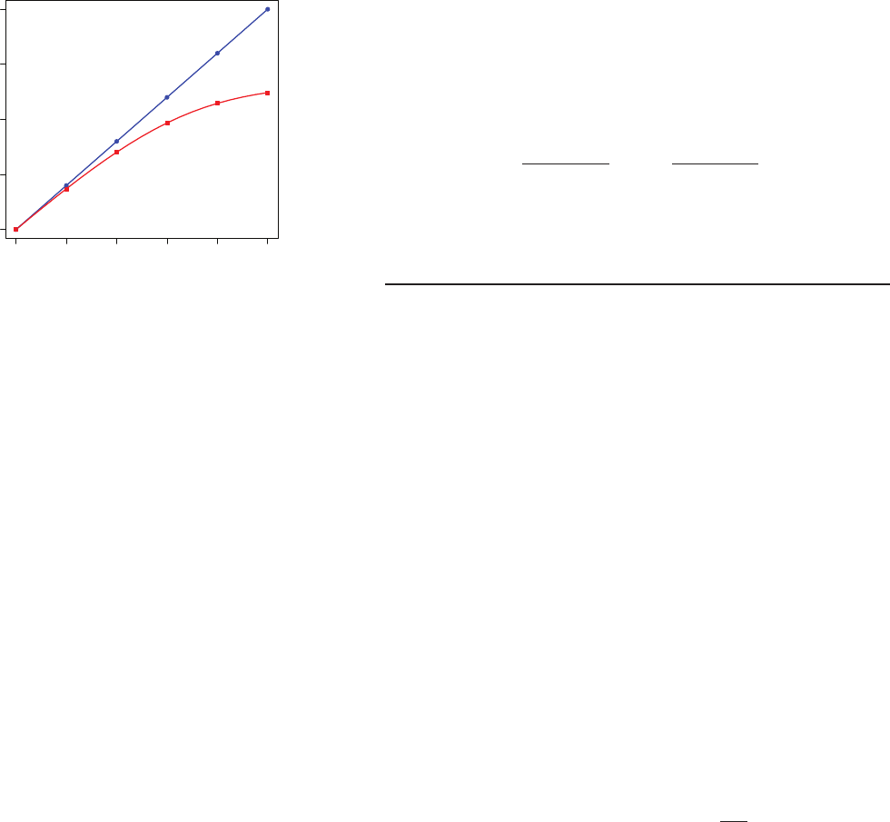 164 Solutions Manual for Analytical Chemistry 2.1 P 100 10 A T #= - allows us to calculate PT for any absorbance; thus, when the absor- bance is 0.40, PT is 39.8 in the absence of stray light (Pstray = 0). When stray light is present at 5% of P0 (a Pstray of 5), the absorbance is . .log logA P P P P 39 8 5 100 5 0 37 0 T stray stray = + + = + + = Results for all samples are summarized in the following table concentration (mM) absorbance (Pstray = 0) PT absorbance (Pstray = 5) 0.0 0.00 100. 0.00 2.0 0.40 39.8 0.37 4.0 0.80 15.8 0.70 6.0 1.20 6.31 0.97 8.0 1.60 2.51 1.15 10.0 2.00 1.00 1.24 and the resulting calibration curves are shown in Figure SM10.6; note that there is substantial curvature when Pstray is 5% of P0. 9. Yes. he new cuvette likely will have a slightly diferent pathlength and slightly diferent optical properties than did the original cuvette. he importance of the irst diference is obvious because absorbance, A, is proportional to the cuvette’s pathlength, b. A bCf= he importance of the second diference is less obvious; however, because absorbance, A, is related logarithmically to transmittance, T, and transmittance is inversely proportional to the amount of light that reaches the detector in the absence of analyte, P0 log logA T P PT 0 =- =- any diference between the optical properties of the two cuvettes in- troduces a source of determinate error. 10. his method for manganese relies on the direct oxidation of Mn2+, which is colorless, to MnO4 - , which is purple. he only critical re- quirement is that each sample and standard has suicient time for the oxidation reaction to go to completion: as long as this is true, we can prepare the samples and standards at diferent times and do not need to reproduce the exact reaction conditions. he method for glucose, on the other hand, relies on an indirect analysis in which glucose efects the partial reduction of Fe(CN) 6 3- , which is yellow, to Fe(CN) 6 4- , which is colorless. he extent of this 0 2 4 6 8 10 0 .0 0 .5 1 .0 1 .5 2 .0 concentration (mM) a b so rb a n ce Figure SM10.6 Beer’s law calibration curves in the absence of stray light (blue), and in the presence of stray light (red) when Pstray is 5% of P0.