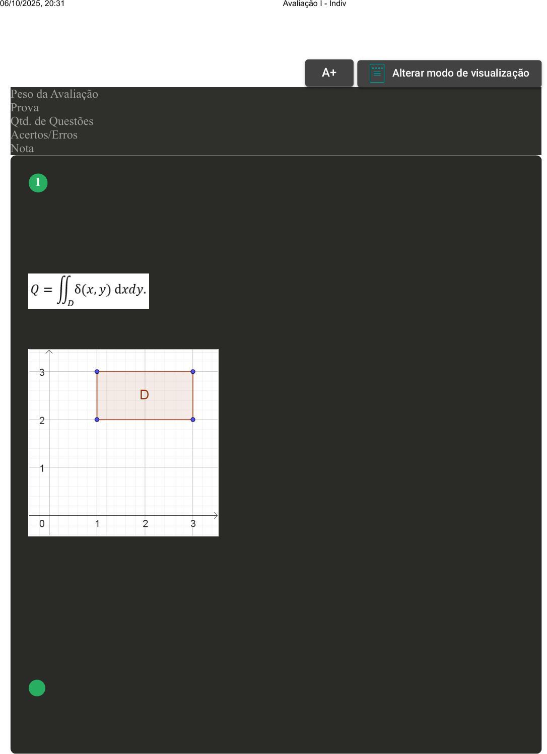 Considere uma região D do plano cartesiano, na qual a densidade de carga elétrica em qualquer ponto