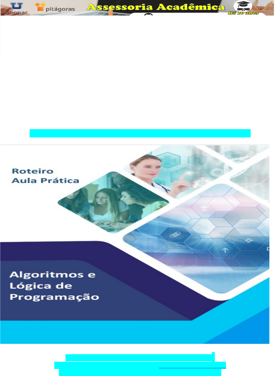 Já imaginou sempre tirar NOTA MÁXIMA em seu Portfólio assim como os demais Cursistas fazem sem precisar quebrar cabeça e perder noites confeccionando-o? Então, seja muito bem vindo(a), meu nome é ALEX ASSESSORIA ACADÊMICA, sou especialista em confecção de TRABALHOS ACADEMICOS na área Ciências Contábeis, Economia, Administração, Gestão Financeira, Gestão Comercial, Gestão Púbica, Educação Física, Serviço Social, Produção Industrial, Negócios Imobiliários entre outros Cursos da UNOPAR, ANHNAGUERA, FAVENI, ESTACIO, UNIASSELVI, UNIP, UNINTER. Estou no mercado há 10 (DEZ) anos, tenho muitos clientes satisfeito Graças a DEUS. Estou aqui para te ajudar a tirar uma nota máxima em seu trabalho acadêmico e já tenho pronto para envio este: AULA PRÁTICA - ALGORITMOS E LÓGICA DE PROGRAMAÇÃO CASO TENHA INTERESSE, ENTRE EM CONTATO: WhatsApp: (73) 99900 0037 E-mail: aleksbraw@gmail.com Ou Acesse o Site: https://trabalhosnotamaxima.com.br image1.png image2.png