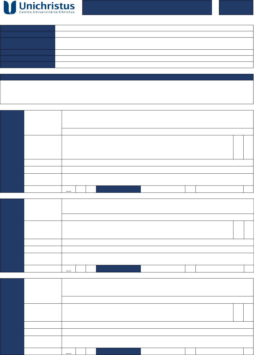 PLANO DE ENSINOE APRENDIZAGEM 2023.2 CURSO Odontologia DISCIPLINA Imunologia PROFESSOR (A) Paulo Goberlânio de Barros Silva (Coordenador), Karine Cestaro Mesquita, Cássia Emanuella Nóbrega Malta ANO/SEMESTRE 2023.2 DIA / HORÁRIO / TURNO Terça / 9h40 às 11h20 / Manhã e Quarta / 7h40 às 9h20 / Manhã CARGA HORÁRIA 80 horas COMPETÊNCIAS E HABILIDADES A SEREM DESENVOLVIDAS Capacitar o estudante de odontologia na compreensão dos mecanismos imunológicos e fisiológicos envolvidos no combate às infecções locais e sistêmicas; dos mecanismos de resistência e de escape às infecções; dos mecanismos na patogenia das doenças autoimunes e supressão do sistema imunológico e dos mecanismos no dano tecidual provocado pela exacerbação da resposta do sistema imune. AULA 1 02/08 Quarta AB Prof. Paulo OBJETIVOS DE APRENDIZAGEM Teórico: Pactuar normas da disciplina, apresentar coordenador da disciplina, bem como professores e monitores, explicar metodologias de avaliação e pontuação de provas surpresas e TED Prático: (-) CONTEÚDO Abertura da disciplina: leitura de normas e condutas, formas de avaliação e cuidados na disciplina TED: o que é resposta imune específica? CH 2h METODOLOGIA Exposição dialogada RECURSOS Recursos audiovisuais BIBLIOGRAFIA ABBAS, Abul K.; LICHTMAN, Andrew H.; PILLAI, Shiv. Imunologia celular e molecular. 9. ed. Rio de Janeiro: Elsevier, 2019. 565 p. ISBN 978-85-352-9074-5. Português. AVALIAÇÃO P1 P2 P3 Questões objetivas 2 Questões discursivas 0 AULA 2 08/08 Terça CD Profa. Cássia OBJETIVOS DE APRENDIZAGEM Teórico: Apresentar a resposta imunológica, diferenciar elementos da resposta imune inata e adquirida, revisar conceitos de imunologia básica e de combate às infecções Prático: (-) CONTEÚDO Propriedades gerais das respostas imunológicas TED: o que é resposta imune inespecífica? CH 2h METODOLOGIA Exposição dialogada RECURSOS Recursos audiovisuais BIBLIOGRAFIA ABBAS, Abul K.; LICHTMAN, Andrew H.; PILLAI, Shiv. Imunologia celular e molecular. 9. ed. Rio de Janeiro: Elsevier, 2019. 565 p. ISBN 978-85-352-9074-5. Português. AVALIAÇÃO P1 P2 P3 Questões objetivas 2 Questões discursivas 0 AULA 3 09/08 Quarta AB Profa. Karine OBJETIVOS DE APRENDIZAGEM Teórico: Apresentar os receptores de padrões moleculares associados a patógenos (rPAMP), mecanismos de reconhecimento de microrganismos pela resposta imune inata, bem como ativação da via canônica do Fator Nuclear kappa B (NFkB) Prático: (-) CONTEÚDO Resposta imune inata TED: leitura (receptores da resposta imune inata) CH 2h METODOLOGIA Exposição dialogada RECURSOS Recursos audiovisuais BIBLIOGRAFIA ABBAS, Abul K.; LICHTMAN, Andrew H.; PILLAI, Shiv. Imunologia celular e molecular. 9. ed. Rio de Janeiro: Elsevier, 2019. 565 p. ISBN 978-85-352-9074-5. Português. AVALIAÇÃO P1 P2 P3 Questões objetivas 2 Questões discursivas 0 AULA 4 16/08 Quarta AB Profa. Cássia OBJETIVOS DE APRENDIZAGEM Teórico: Apresentação do sistema de distribuição, produção, armazenamento e locais de ativação das células do sistema imune. Apresentar a circulação linfática, órgãos linfoides primários e secundários e cadeias linfonodais. Prático: (-) CONTEÚDO Células e tecidos do sistema imune TED: receptores da resposta imune adquirida CH 2h METODOLOGIA Exposição dialogada RECURSOS Recursos audiovisuais BIBLIOGRAFIA ABBAS, Abul K.; LICHTMAN, Andrew H.; PILLAI, Shiv. Imunologia celular e molecular. 9. ed. Rio de Janeiro: Elsevier, 2019. 565 p. ISBN 978-85-352-9074-5. Português. AVALIAÇÃO P1 P2 P3 Questões objetivas 2 Questões discursivas 0 AULA 5 22/08 Terça CD Prof. Paulo OBJETIVOS DE APRENDIZAGEM Teórico: Apresentar e discorrer sobre as principais diferenças químico-estruturais e funcionais dos complexos principais de histocompatibilidade (MHC) tipo I e II Prático: (-) CONTEÚDO Complexo de histocompatibilidade e tolerância TED: diferenças de apresentação de antígenos CH 2h METODOLOGIA Exposição dialogada RECURSOS Recursos audiovisuais BIBLIOGRAFIA ABBAS, Abul K.; LICHTMAN, Andrew H.; PILLAI, Shiv. Imunologia celular e molecular. 9. ed. Rio de Janeiro: Elsevier, 2019. 565 p. ISBN 978-85-352-9074-5. Português. AVALIAÇÃO P1 P2 P3 Questões objetivas 2 Questões discursivas 0 AULA 6 23/08 Quarta AB Profa. Karine OBJETIVOS DE APRENDIZAGEM Teórico: Elucidar os mecanismos de processamento de antígenos de microrganismos intracelulares (MHC-I) e extracelulares (MHC-II) por parte de macrófagos, monócitos, células dendríticas e outros fagócitos mononucleares atuantes como células apresentadoras de antígenos. Prático: (-) CONTEÚDO Processamento de antígenos e apresentação para MHC I e II TED: o que é expansão clonal? CH 2h METODOLOGIA Exposição dialogada RECURSOS Recursos audiovisuais BIBLIOGRAFIA ABBAS, Abul K.; LICHTMAN, Andrew H.; PILLAI, Shiv. Imunologia celular e molecular. 9. ed. Rio de Janeiro: Elsevier, 2019. 565 p. ISBN 978-85-352-9074-5. Português. AVALIAÇÃO P1 P2 P3 Questões objetivas 2 Questões discursivas 0 AULA 7 29/08 Terça CD Prof. Paulo OBJETIVOS DE APRENDIZAGEM Teórico: Desenrolar a cascata de ativação pós-apresentação de antígenos de linfócitos TCD4 e TCD8 associando às moléculas estimuladoras e coestimuladores presentes em sua superfície Prático: (-) CONTEÚDO Linfócitos T: amadurecimento, ativação e regulação TED: o que é uma citocina? CH 2h METODOLOGIA Exposição dialogada RECURSOS Recursos audiovisuais BIBLIOGRAFIA ABBAS, Abul K.; LICHTMAN, Andrew H.; PILLAI, Shiv. Imunologia celular e molecular. 9. ed. Rio de Janeiro: Elsevier, 2019. 565 p. ISBN 978-85-352-9074-5. Português. AVALIAÇÃO P1 P2 P3 Questões objetivas 2 Questões discursivas 0 AULA 8 30/08 Quarta AB Profa. Cássia OBJETIVOS DE APRENDIZAGEM Teórico: Desenrolar a cascata de ativação pós-apresentação de antígenos de linfócitos B associando às moléculas estimuladoras e coestimuladores presentes em sua superfície. Estudar o processo