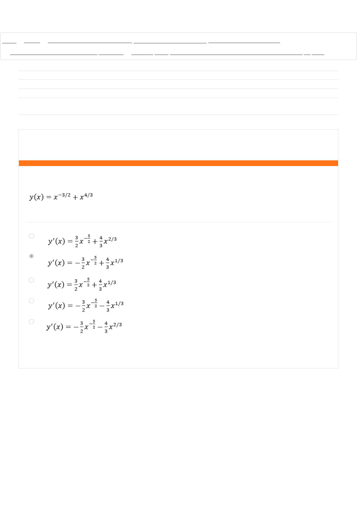 Iniciado em segunda, 28 jul 2025, 21:19 Estado Finalizada Concluída em segunda, 28 jul 2025, 21:37 Tempo empregado 17 minutos 31 segundos Avaliar 0,50 de um máximo de 0,50(100%) Questão 1 Completo Atingiu 0,05 de 0,05 Dada a função: Marque a alternativa que corresponde a derivada da função. a. b. c. d. e. Sua resposta está correta. Painel / Cursos / BACHARELADO EM ENGENHARIA QUÍMICA-disc. 148- MÉTODOS QUANTITATIVOS MATEMÁTICOS / ATIVIDADE DE ESTUDO 02 - VALOR 0,5 PONTOS / A2 - CLIQUE AQUI PARA REALIZAR A ATIVIDADE DE ESTUDO 02 - ATÉ 15/09/2025 https://www.eadunifatecie.com.br/mod/quiz/review.php?attempt=17297631&cmid=2528088# https://www.eadunifatecie.com.br/course/view.php?id=74553 https://www.eadunifatecie.com.br/course/view.php?id=74553 https://www.eadunifatecie.com.br/course/view.php?id=74553 https://www.eadunifatecie.com.br/my/ https://www.eadunifatecie.com.br/my/ https://www.eadunifatecie.com.br/course/index.php https://www.eadunifatecie.com.br/course/index.php https://www.eadunifatecie.com.br/course/view.php?id=74553 https://www.eadunifatecie.com.br/course/view.php?id=74553 https://www.eadunifatecie.com.br/course/view.php?id=74553#section-11 https://www.eadunifatecie.com.br/course/view.php?id=74553#section-11 https://www.eadunifatecie.com.br/mod/quiz/view.php?id=2528088 https://www.eadunifatecie.com.br/mod/quiz/view.php?id=2528088 Questão 2 Completo Atingiu 0,05 de 0,05 Questão 3 Completo Atingiu 0,05 de 0,05 Resolva a integral indefinida e marque a alternativa com a resposta: a. b. c. d. e. Sua resposta está correta. Determine o resultado do limite abaixo quando x tende a -1: a. 22/3. b. 14. c. -4. d. 18. e. 9. Sua resposta está correta. https://www.eadunifatecie.com.br/mod/quiz/review.php?attempt=17297631&cmid=2528088# Questão 4 Completo Atingiu 0,05 de 0,05 Questão 5 Completo Atingiu 0,05 de 0,05 Determine o resultado da integral: a. b. c. d. e. Sua resposta está correta. Marque a alternativa que corresponde a derivada da função. a. b. c. d. e. Sua resposta está correta. https://www.eadunifatecie.com.br/mod/quiz/review.php?attempt=17297631&cmid=2528088# Questão 6 Completo Atingiu 0,05 de 0,05 Questão 7 Completo Atingiu 0,05 de 0,05 Com base do que foi abordado em integrais de funções bem definidas, como funções logarítmicas, determine a integral indefinida e marque a alternativa correta. a. b. c. d. e. Sua resposta está correta. Resolva o limite abaixo quando t tende a -2 e assinale a alternativa com a resposta correta: a. 7/8. b. 9/4. c. 6,5. d. -0,5. e. 3. Sua resposta está correta. https://www.eadunifatecie.com.br/mod/quiz/review.php?attempt=17297631&cmid=2528088# Questão 8 Completo Atingiu 0,05 de 0,05 Questão 9 Completo Atingiu 0,05 de 0,05 Fazendo a distributiva do integrando, marque a alternativa com o resultado da integral. a. b. c. d. e. Sua resposta está correta. Calcule a integral da função polinomial e assinale a alternativa com o resultado correto. a. b. c. d. e. Sua resposta está correta. https://www.eadunifatecie.com.br/mod/quiz/review.php?attempt=17297631&cmid=2528088# Questão 10 Completo Atingiu 0,05 de 0,05 Determine a derivada da função a baixo e assinale a alternativa que corresponde o resultado. a. b. c. d. e. Sua resposta está correta. ◄ CLIQUE AQUI PARA REALIZAR O FÓRUM DA DISCIPLINA Seguir para... ENQUETE DE SATISFAÇÃO - EAD UNIFATECIE ► https://www.eadunifatecie.com.br/mod/quiz/review.php?attempt=17297631&cmid=2528088# https://www.eadunifatecie.com.br/mod/forum/view.php?id=2528086&forceview=1 https://www.eadunifatecie.com.br/mod/forum/view.php?id=2528086&forceview=1 https://www.eadunifatecie.com.br/mod/feedback/view.php?id=2528091&forceview=1 https://www.eadunifatecie.com.br/mod/feedback/view.php?id=2528091&forceview=1