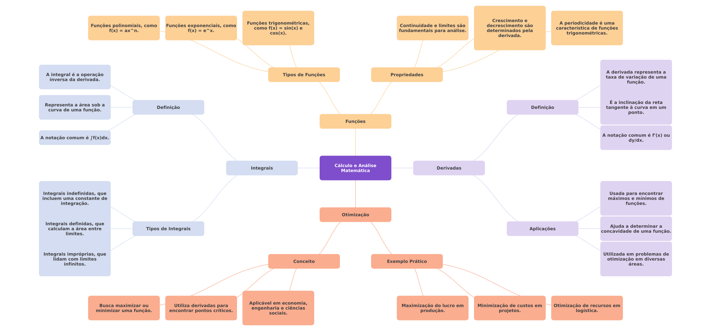 Crescimento e Funções polinomiais, como Funções exponenciais, como Funções trigonométricas, Continuidade e limites são decrescimento são A periodicidade é uma f(x) ax^n. f(x) e^x. como f(x) = sin(x) e cos(x). fundamentais para análise. determinados pela característica de funções derivada. trigonométricas. A integral é a operação A derivada representa a Tipos de Funções Propriedades inversa da derivada. taxa de variação de uma função. É a inclinação da reta Representa a área sob a curva de uma função. Definição Definição tangente à curva em um ponto. Funções A notação comum é ff(x)dx. A notação comum é f'(x) ou dy/dx. Cálculo e Análise Integrais Derivadas Matemática Integrais indefinidas, que Usada para encontrar incluem uma constante de máximos e mínimos de integração. funções. Otimização Integrais definidas, que calculam a área entre Tipos de Integrais Ajuda a determinar a Aplicações limites. concavidade de uma função. Integrais impróprias, que Utilizada em problemas de lidam com limites Conceito infinitos. Exemplo Prático otimização em diversas áreas. Busca maximizar ou Utiliza derivadas para Aplicável em economia, engenharia e ciências Maximização do lucro em Minimização de custos em Otimização de recursos em minimizar uma função. encontrar pontos críticos. sociais. produção. projetos. logística.
