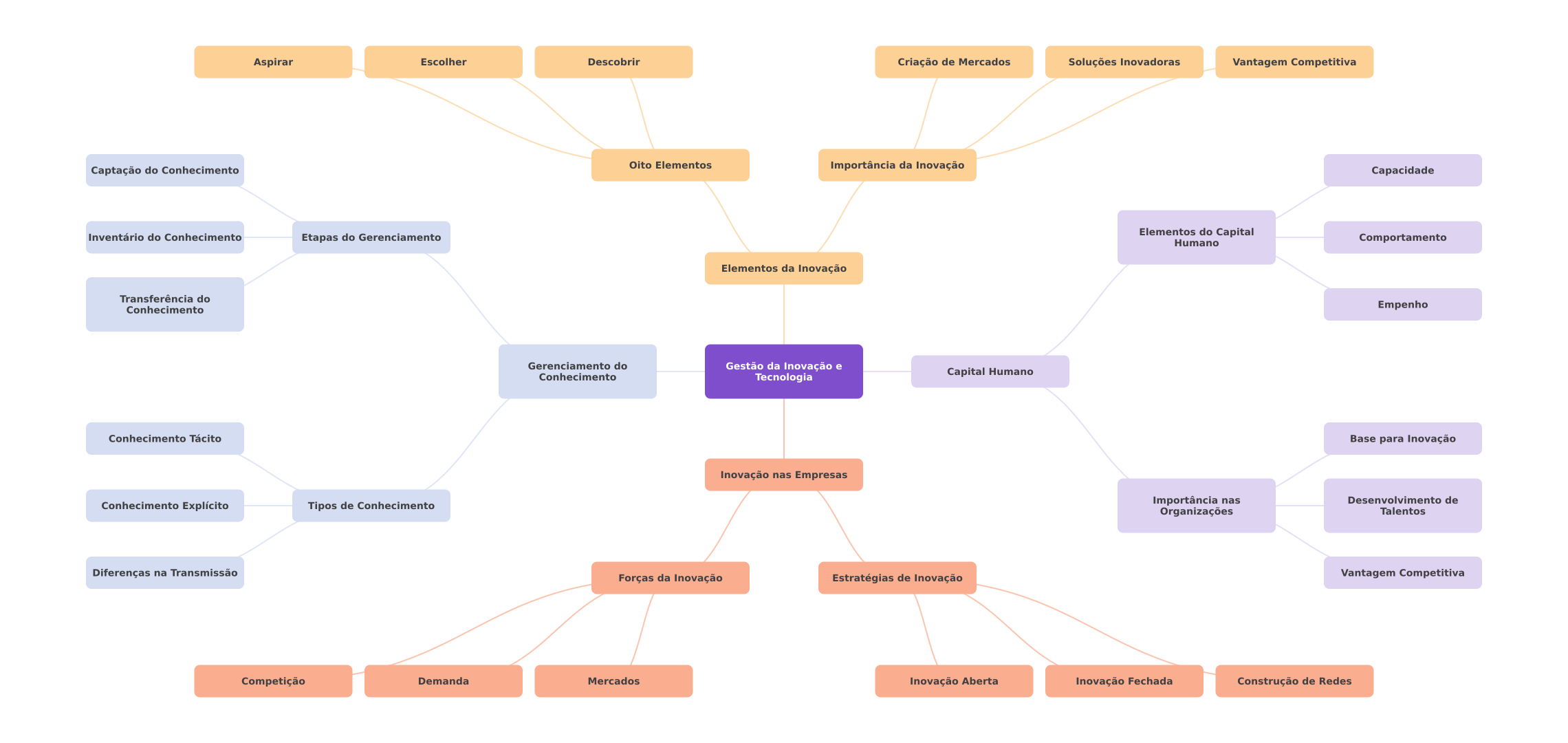 Aspirar Escolher Descobrir Criação de Mercados Soluções Inovadoras Vantagem Competitiva Oito Elementos Captação do Conhecimento Importância da Inovação Capacidade Inventário do Conhecimento Etapas do Gerenciamento Elementos do Capital Humano Comportamento Elementos da Inovação Transferência do Conhecimento Empenho Gerenciamento do Gestão da Inovação e Conhecimento Capital Humano Tecnologia Conhecimento Tácito Base para Inovação Inovação nas Empresas Tipos de Conhecimento Importância nas Desenvolvimento de Conhecimento Explícito Organizações Talentos Diferenças na Transmissão Forças da Inovação Estratégias de Inovação Vantagem Competitiva Competição Demanda Mercados Inovação Aberta Inovação Fechada Construção de Redes