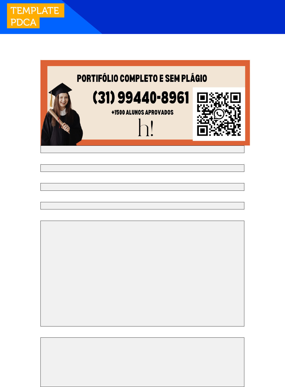 <p>ALUNO:</p><p>CURSO:</p><p>PSICOPEDAGOGIA - BACHARELADO</p><p>COMPONENTE CURRICULAR:</p><p>PROJETO DE EXTENSÃO II - PSICOPEDAGOGIA</p><p>PROGRAMA DE EXTENSÃO:</p><p>PROGRAMA DE AÇÃO E DIFUSÃO CULTURAL.</p><p>FINALIDADE E MOTIVAÇÃO:</p><p>A finalidade da extensão no Programa de Ação e Difusão Cultural está na sua função social, por meio deste projeto ocorrerá uma maior integração entre a faculdade e a população, trazendo apoio a comunidade e difusão do ensino. Os alunos deverão identificar as necessidades da comunidade para o desenvolvimento de atividades que visem a melhoria da qualidade de vida na comunidade; a preservação da cultura brasileira; a difusão da cultura; a inclusão e a valorização da diversidade. A Psicopedagogia se faz através da interação humana, assim, os alunos terão a oportunidade de desenvolver e aprimorar competências técnico-profissionais e soft skills específicas e importantes para o Psicopedagogo. Os locais que poderão contemplar esse projeto são: Parcerias com a Prefeitura e atuação em Unidades Básicas de Saúde; Associações de Bairros; Clínicas de Saúde Públicas e Privadas; Hospitais; Centros de Saúde; Casas de Repouso; Centros-Dia; Instituições de Longa Permanência para Idosos; Creches e Escolas; Instituições Religiosas; Organizações não-governamentais; Centros de Referência a Assistência Social e demais instituições que representem a comunidade que fará parte do projeto.</p><p>COMPETÊNCIAS:</p><p>I - Avaliar, diagnosticar, planejar e intervir em processos educativos em diferentes contextos;</p><p>II - Avaliar, diagnosticar, planejar e intervir em processos psicossociais a grupos, segmentos e comunidades em situação de vulnerabilidade individual e social;</p><p>III - Participar de processos grupais, em diferentes contextos, considerando diferenças individuais e socioculturais;</p><p>IV - Aprendizagem contínua.</p><p>PERFIL DE EGRESSO:</p><p>O perfil do egresso do curso de Psicopedagogia idealizado pela IES proporciona a formação docente, que valoriza a inclusão dos conhecimentos produzidos pelas ciências para a Educação, contribuindo para a compreensão dos processos de ensino- aprendizagem, voltado para uso de estratégias e recursos pedagógicos, que favorecem o desenvolvimento dos saberes e eliminem as barreiras de acesso ao conhecimento e das dificuldades na aprendizagem. A atuação no Programa de Sustentabilidade, demonstra as habilidades para atuar com consciência junto a</p><p>1</p><p>Público</p><p>transformação social por meio da educação, tornando o egresso um agente transformador da realidade presente, na busca de melhoria da qualidade de vida.</p><p>SOFT SKILLS (COMPETÊNCIAS SOCIOEMOCIONAIS):</p><p>Planejamento e organização Comunicação Interpessoal Análise e resolução de problemas</p><p>OBJETIVOS DE APRENDIZAGEM:</p><p>Os objetivos da extensão em Psicopedagogia vinculados ao Programa de Ação e Difusão Cultural estão relacionados a disseminação do saber e da cultura ensinados na faculdade e a formação de novos saberes a partir das problemáticas identificadas na comunidade, que, aliados fortificam as habilidades desenvolvidas no decorrer do curso, preparando o egresso para a atuação de forma ética e crítica no que diz respeito à atuação profissional, visando à promoção dos direitos humanos e do bem-estar dos indivíduos, dos grupos, das organizações e das comunidades.</p><p>CONTEÚDOS:</p><p>I - Ética</p><p>II - Observação, análise e planejamento para atuação psicopedagógica;</p><p>III - Transtornos da aprendizagem;</p><p>IV - Desenvolvimento de plano de ação em psicopedagogia.</p><p>INDICAÇÕES BIBLIOGRÁFICAS:</p><p>SCHUKTZ, Duane; SCHULTZ, Sydney Ellen. História da psicologia moderna. 4. ed. São Paulo, SP: Cengage, 2019.</p><p>SOUZA, Paula Caroline de. Dificuldade de aprendizagem na alfabetização e letramento. São Paulo: Contentus, 2020.</p><p>AZEVEDO, Tássia Lopes de. Psicopatologia da aprendizagem. São Paulo: Cengagem 2016.</p><p>CARVALHO, Rosângela Soares. Diagnóstico psicopedagógico. São Paulo, SP: Cengage Learning, 2016.</p><p>PAPALIA, Diane E.; FELDMAN, Ruth Duskin. Desenvolvimento humano, 14.ed.. Porto Alegre: AMGH, 2022.</p><p>MAIRA, Christiane Martinatti. Psicologia do Desenvolvimento e da Aprendizagem. Curitiba: InterSaberes, 2017.</p><p>ÁLVARO, José. L. Psicologia social.São Paulo: Grupo A, 2017.</p><p>TEMPLATE PDCA</p><p>Aluno e Aluna, essa atividade é para sua organização e uso da metodologia PDCA. Por isso é um documento orientativo e não precisa ser entregue. Veja as orientações apresentadas no MANUAL DE ATIVIDADES EXTENSIONISTAS.</p><p>1. PLANEJAMENTO (PLAN)</p><p>2</p><p>Antes de definir sua proposta, explore os Objetivos de Desenvolvimento Sustentável (ODS) da Organização das Nações Unidas (ONU) no link https://brasil.un.org/pt-br/sdgs. Se preferir, pode baixar o documento pelo link https://brasil.un.org/sites/default/files/2020-09/agenda2030-pt- br.pdf.</p><p>Compreenda a proposta da ONU e engaje-se nessa oportunidade de contribuir com as metas de um organismo internacional tão importante ao mesmo tempo em que participa de soluções de seu contexto!</p><p>Analise os 17 objetivos e escolha quais metas podem ser aderentes à sua proposta e ao seu projeto. Para isso, clique no ícone de cada objetivo e observe a listagem de metas disponível em cada um. É necessário que você escolha pelo menos uma meta. Pode ser que você encontre metas aderentes à sua proposta em diferentes objetivos, mas não se restrinja.</p><p>Pode escolher dessa forma e mantenha o foco da essência de sua proposta.</p><p>Feito isso, liste aqui suas escolhas. Essa informação também deverá ser declarada em seu Relatório Final de Atividades Extensionistas.</p><p>LISTAR METAS DOS ODS ADERENTES AO SEU PROJETO</p><p>DEFINA A PROPOSTA.</p><p>IMERSÃO:</p><p>DEFINA OS ITENS DA IMERSÃO</p><p>Segue sugestão de pergun