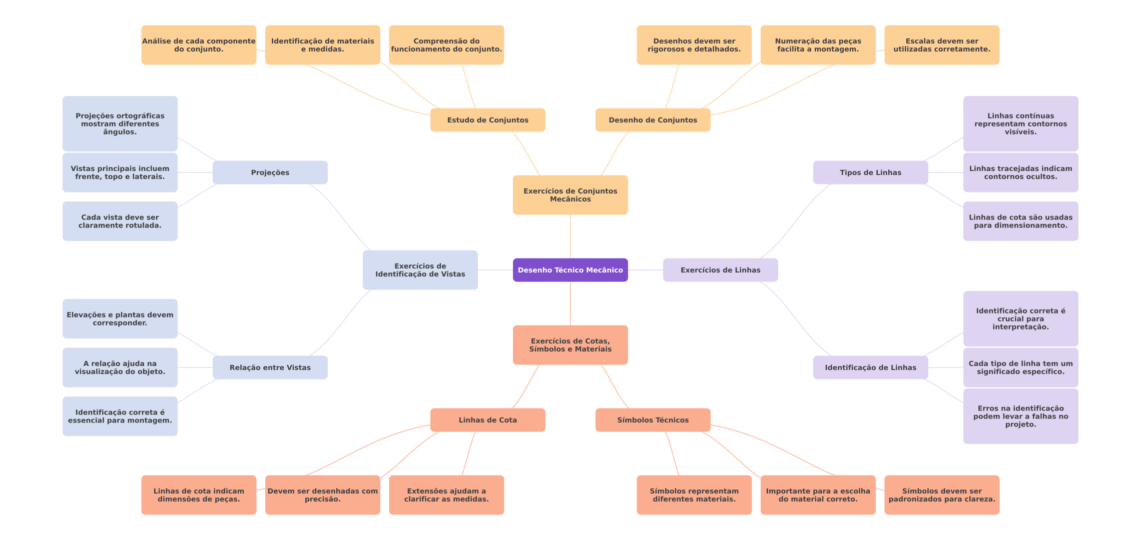Análise de cada componente Identificação de materiais Compreensão do Desenhos devem ser Numeração das peças Escalas devem ser do conjunto. e medidas. funcionamento do conjunto. rigorosos e detalhados. facilita a montagem. utilizadas corretamente. Projeções ortográficas Linhas contínuas mostram diferentes Estudo de Conjuntos Desenho de Conjuntos representam contornos ângulos. visíveis. Vistas principais incluem Tipos de Linhas Linhas tracejadas indicam frente, topo e laterais. Projeções contornos ocultos. Exercícios de Conjuntos Mecânicos Cada vista deve ser Linhas de cota são usadas claramente rotulada. para dimensionamento. Exercícios de Desenho Técnico Mecânico Exercícios de Linhas Identificação de Vistas Elevações e plantas devem Identificação correta é crucial para corresponder. interpretação. Exercícios de Cotas, Símbolos e Materiais A relação ajuda na Identificação de Linhas Cada tipo de linha tem um visualização do objeto. Relação entre Vistas significado específico. Identificação correta é Erros na identificação essencial para montagem. Linhas de Cota Símbolos Técnicos podem levar a falhas no projeto. Linhas de cota indicam Devem ser desenhadas com Extensões ajudam a Símbolos representam Importante para a escolha Símbolos devem ser dimensões de peças. precisão. clarificar as medidas. diferentes materiais. do material correto. padronizados para clareza.