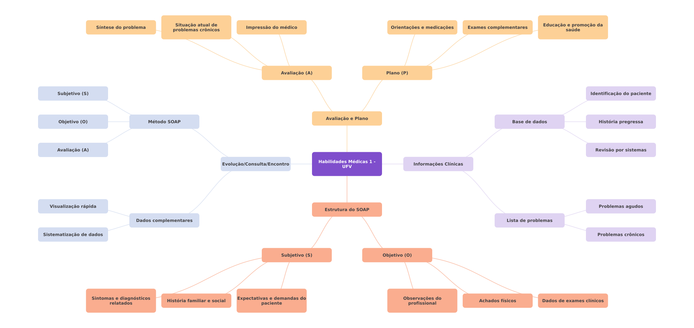 Situação atual de Síntese do problema problemas crônicos Impressão do médico Orientações e medicações Exames complementares Educação e promoção da saúde Avaliação (A) Plano (P) Subjetivo (S) Identificação do paciente Avaliação e Plano Objetivo Método SOAP Base de dados História pregressa Avaliação (A) Revisão por sistemas Habilidades Médicas 1 Evolução/Consulta/Encontro UFV Informações Clínicas Visualização rápida Problemas agudos Estrutura do SOAP Dados complementares Lista de problemas Sistematização de dados Problemas crônicos Subjetivo (S) Objetivo Sintomas e diagnósticos História familiar e social Expectativas e demandas do Observações do Achados físicos Dados de exames clínicos relatados paciente profissional