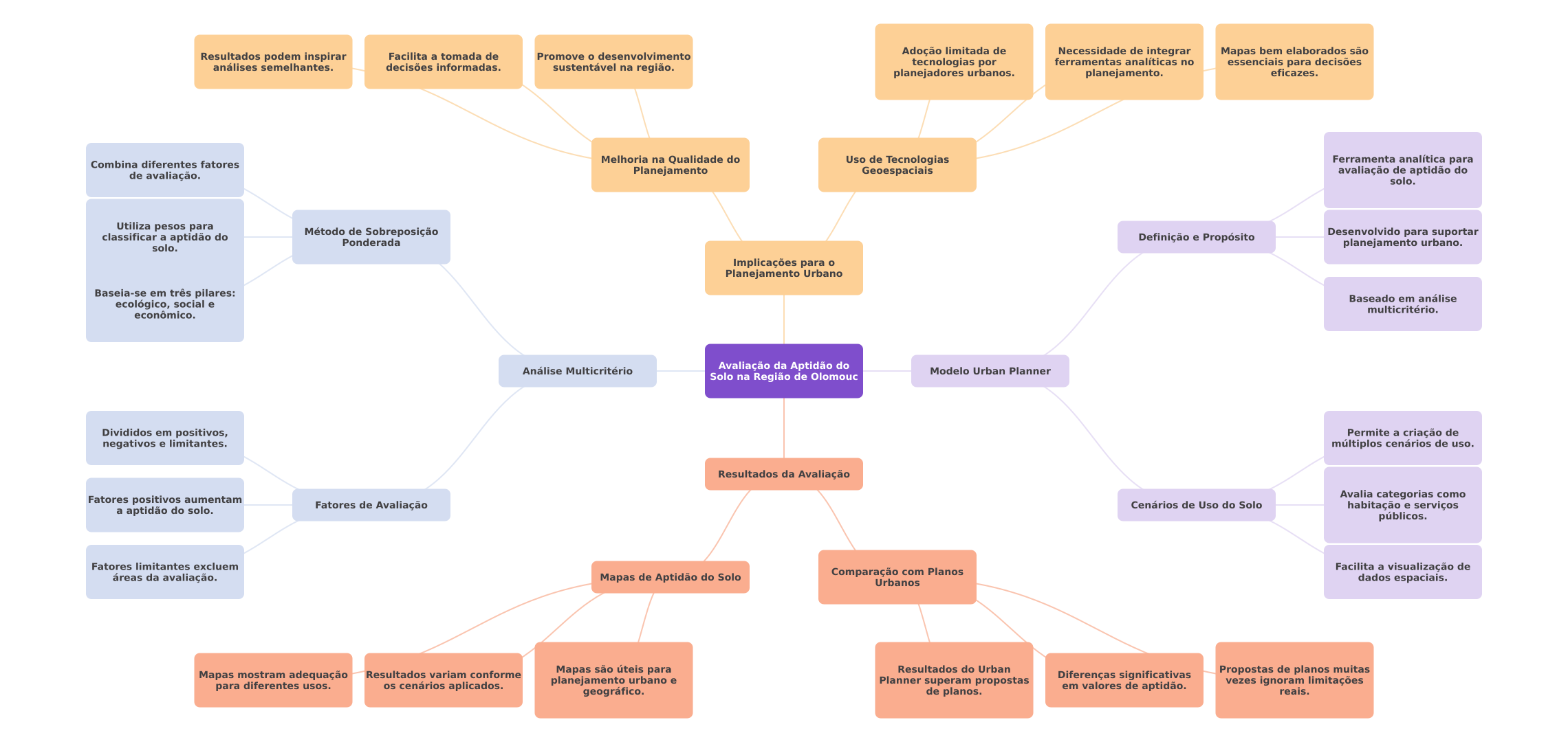 Facilita a tomada de Promove desenvolvimento Adoção limitada de Necessidade de integrar Mapas bem elaborados são Resultados podem inspirar tecnologias por ferramentas analíticas no análises semelhantes. decisões informadas. sustentável na região. essenciais para decisões planejadores urbanos. planejamento. eficazes. Combina diferentes fatores Melhoria na Qualidade do Uso de Tecnologias Ferramenta analítica para de avaliação. Planejamento Geoespaciais avaliação de aptidão do solo. Utiliza pesos para classificar a aptidão do Método de Sobreposição Ponderada Definição e Propósito Desenvolvido para suportar solo. planejamento urbano. Implicações para Planejamento Urbano Baseia-se em três pilares: Baseado em análise ecológico, social e multicritério. econômico. Análise Multicritério Avaliação da Aptidão do Modelo Urban Planner Solo na Região de Olomouc Divididos em positivos, Permite a criação de negativos e limitantes. múltiplos cenários de uso. Resultados da Avaliação Fatores positivos aumentam Avalia categorias como a aptidão do solo. Fatores de Avaliação Cenários de Uso do Solo habitação e serviços públicos. Fatores limitantes excluem Mapas de Aptidão do Solo Comparação com Planos Facilita a visualização de áreas da avaliação. Urbanos dados espaciais. Resultados variam conforme Mapas são úteis para Resultados do Urban Mapas mostram adequação Diferenças significativas Propostas de planos muitas para diferentes usos. os cenários aplicados. planejamento urbano e Planner superam propostas em valores de aptidão. vezes ignoram limitações geográfico. de planos. reais.