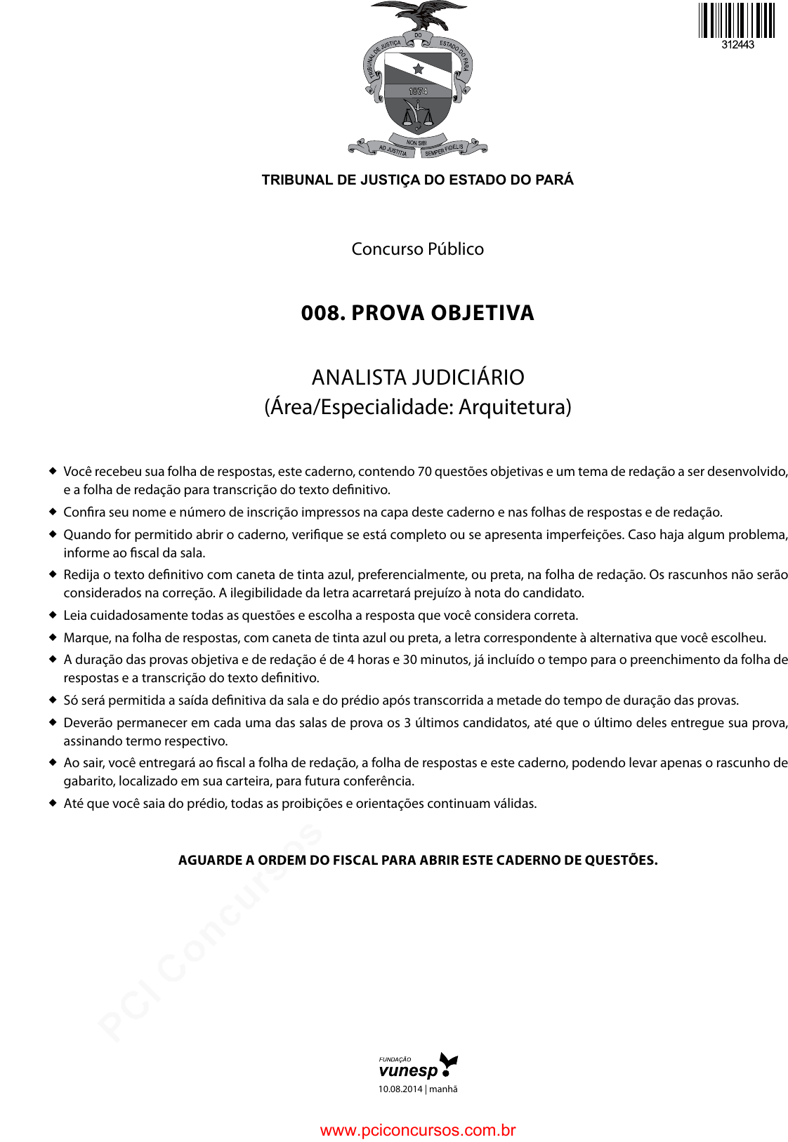 pcimarkpci MDAwMDowMDAwOjAwMDA6MDAwMDowMDAwOmZmZmY6YmFlOTphZThj:V2VkLCAwOCBPY3QgMjAyNSAxMDowMjo0MCAtMDMwMA== www.pciconcursos.com.br TRIBUNAL DE JUSTIÇA DO ESTADO DO PARÁ Concurso Público 008. Prova objetiva analista judiCiário (área/Especialidade: arquitetura) � Você recebeu sua folha de respostas, este caderno, contendo 70 questões objetivas e um tema de redação a ser desenvolvido, e a folha de redação para transcrição do texto definitivo. � Confira seu nome e número de inscrição impressos na capa deste caderno e nas folhas de respostas e de redação. � Quando for permitido abrir o caderno, verifique se está completo ou se apresenta imperfeições. Caso haja algum problema, informe ao fiscal da sala. � redija o texto definitivo com caneta de tinta azul, preferencialmente, ou preta, na folha de redação. os rascunhos não serão considerados na correção. a ilegibilidade da letra acarretará prejuízo à nota do candidato. � leia cuidadosamente todas as questões e escolha a resposta que você considera correta. � Marque, na folha de respostas, com caneta de tinta azul ou preta, a letra correspondente à alternativa que você escolheu. � a duração das provas objetiva e de redação é de 4 horas e 30 minutos, já incluído o tempo para o preenchimento da folha de respostas e a transcrição do texto definitivo. � só será permitida a saída definitiva da sala e do prédio após transcorrida a metade do tempo de duração das provas. � deverão permanecer em cada uma das salas de prova os 3 últimos candidatos, até que o último deles entregue sua prova, assinando termo respectivo. � ao sair, você entregará ao fiscal a folha de redação, a folha de respostas e este caderno, podendo levar apenas o rascunho de gabarito, localizado em sua carteira, para futura conferência. � até que você saia do prédio, todas as proibições e orientações continuam válidas. aguarde a ordem do fiscal Para abrir este caderno de questões. 10.08.2014 | manhã www.pciconcursos.com.br pcimarkpci MDAwMDowMDAwOjAwMDA6MDAwMDowMDAwOmZmZmY6YmFlOTphZThj:V2VkLCAwOCBPY3QgMjAyNSAxMDowMjo0MCAtMDMwMA== www.pciconcursos.com.br 2TJPA1401/008-AnJud-Arquitetura-Manhã ConheCimentos Gerais Língua Portuguesa Leia o texto para responder às questões de números 01 a 05. O tempo dirá se o Marco Civil da internet é bom ou ruim Foi aprovado o Marco Civil da internet: aquilo a que cha- mam de “Constituição da internet” e que será capaz de afetar diretamente a vida de milhões de usuários que já não usam mais a internet apenas para se divertir, mas para trabalhar. O Marco Civil garantirá a neutralidade da rede, segundo a qual todo o conteúdo que trafega pela internet será tratado de forma igual. As empresas de telecomunicações que fornecem acesso poderão continuar vendendo velocidades diferentes. Mas terão de oferecer a conexão contratada independentemente do conteúdo acessado pelo internauta e não poderão vender pacotes restritos. O Marco Civil garante a inviolabilidade e o sigilo das comu- nicações. O conteúdo poderá ser acessado apenas mediante or- dem judicial. Na prática, as conversas via Skype e as mensagens salvas na conta de e-mail não poderão ser violadas, a menos que o Judiciário determine. Excluiu-se do texto aprovado um artigo que obrigava em- presas estrangeiras a instalar no Brasil seus datacenters (centros de dados para armazenamento de informações). Por outro lado, o projeto aprovado reforçou dispositivo que determina o cum- primento das leis brasileiras por parte de companhias internacio- nais, mesmo que não estejam instaladas no Brasil. Ressalte-se ainda que a exclusão de conteúdo só poderá ser ordenada pela Justiça. Assim, não ficará mais a cargo dos pro- vedores a decisão de manter ou remover informações e notícias polêmicas. Portanto, o usuário que se sentir ofendido por algum conteúdo no ambiente virtual terá de procurar a Justiça, e não as empresas que disponibilizam os dados. Este é o Marco Civil que temos. Se é o que pretendíamos ter, o tempo vai mostrar. Mas, sem dúvida, será menos pior do que não termos marco civil nenhum. (O Liberal, Editorial de 24.04.2014. Adaptado) 01. De acordo com o texto, o Marco Civil da internet (A) dispõe sobre as relações entre empresas de telecomuni- cações e usuários da rede e defende o caráter inviolável dos conteúdos circulantes no ambiente virtual. (B) exige que empresas estrangeiras instalem centros de armazenamento de dados e informações no Brasil se quiserem oferecer seus serviços a usuários brasileiros. (C) determina quais conteúdos podem ser considerados neutros ou polêmicos, orientando os usuários quanto aos sites moralmente idôneos. (D) garante que órgãos do governo tenham livre acesso a conversas via Skype e a mensagens salvas na conta de e-mail dos usuários brasileiros. (E) foi criado para impedir que companhias internacionais atuem no mercado brasileiro, instalando seus centros de dados para armazenamento de informações no Brasil. 02. Segundo informações textuais, com o Marco Civil da internet, (A) as informações que circulam na rede serão automatica- mente excluídas pelo governo, caso sejam polêmicas. (B) as ações dos provedores serão controladas pela Justiça, que autorizará o acréscimo de conteúdos na rede após a certificação de que não são controversos. (C) as solicitações de exclusão de conteúdo da internet devem ser encaminhadas ao Poder Judiciário. (D) o usuário da rede ganha o direito de requerer junto às empresas provedoras de dados e serviços a exclusão de conteúdo considerado ofensivo. (E) os provedores passam a ser responsáveis pelo conteúdo divulgado e são eles que decidem quando uma informa- ção deve ser excluída. 03. Conforme opinião expressa no texto, o Marco Civil da internet é (A) dispensável, pois as leis tradicionais eram suficientes para tratar do meio virtual. (B) necessá