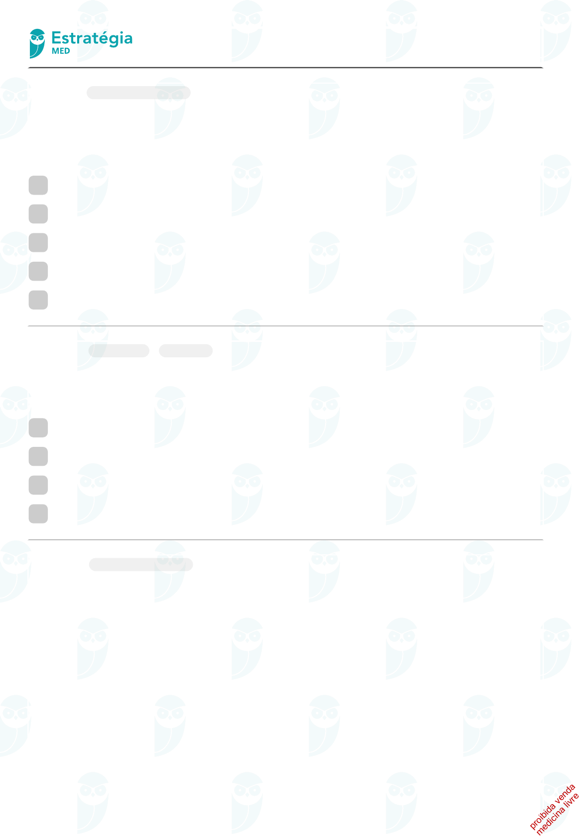 Câncer de Colo Uterino At.me/medicinalivre cessar Lista Questão 1 Câncer de colo do útero Mulher de 25 anos chega à emergência ginecológica, com quadro de sangramento genital com odor desagradável há vários dias. Informa sangramento durante atividade sexual. O exame ginecológico revela tumoração cervical de 06 cm, restrita ao colo uterino. Vagina e paramétrios estão livres. Não possui exames complementares. Considerando o quadro acima, no momento, qual o provável estadiamento até o momento e tratamento? A Ib3, radioterapia B Ib1, radioterapia C IIa1, cirurgia Piver tipo 5 D IIIa, radioterapia E Ia2, cirurgia Piver tipo 3 Essa questão possui comentário do professor no site 4000183452 Questão 2 Estadiamento Tratamento Mulher, 47 anos de idade, deu entrada no PS com crise hipertensiva. Exames complementares revelaram ureia 60mg/dL e creatinina de 7 mg/dL, US de vias urinárias com dilatação ureteral bilateral acentuada. Refere diagnóstico recente de carcinoma epidermóide de colo de útero, ainda sem tratamento. A conduta mais adequada do ponto de vista oncológico é: A radioterapia associada a quimioterapia sensibilizadora. B cirurgia de Werthein Meigs. C traquelectomia radical e parametrectomia. D imunoterapia com pembrolizumabe (anti PD-L1). Essa questão possui comentário do professor no site 4000183157 Questão 3 Câncer de colo do útero Mulher de 49 anos foi submetida à histerectomia devido a dor no baixo ventre e identi cação de massa pélvica. Exame macroscópico da peça cirúrgica: imagem. med ici na liv re pro ibi da ve nd a Medicina livre, venda proibida, twitter @Livremedicina https://med.estrategia.com/cadernos-e-simulados/cadernos/f7846c4d-05dc-424b-954e-28662ce897c7 As características macroscópicas da imagem favorecem o diagnóstico de: A doença inflamatória pélvica com cicatrizes extensas. B teratoma adulto benigno com áreas de necrose. C cistos de Naboth com infecções recorrentes. D câncer avançado do colo do útero. Essa questão possui comentário do professor no site 4000182959 Questão 4 Estadiamento Diagnóstico Assinale a alternativa que preenche, correta e respectivamente, as lacunas do parágrafo abaixo. Paciente de 42 anos, casada e com 3 lhos, em uso de DIU de cobre, veio à consulta com queixas de sangramento intermitente. Informou ter realizado a última revisão ginecológica há 5 anos (em atraso devido à pandemia). Ao exame físico, a pressão arterial era de 130/85 mmHg, o peso, de 60 kg, e a altura, de 168 cm; mamas, abdômen e vulva não apresentaram particularidades. O exame especular indicou colo com lesão de aspecto tumoral, medindo 1 cm. Foi realizada .......... . Com base no resultado, .......... , foi indicada .......... . A coleta de material para exame citopatológico – lesão intraepitelial de alto grau – conização B colposcopia – lesão sugestiva de câncer invasor – histerectomia extrafascial C biópsia – carcinoma invasor – realização de estadiamento D biópsia – adenocarcinoma invasor – histerectomia extrafascial Essa questão possui comentário do professor no site 4000182796 Questão 5 Estadiamento Tratamento Mulher de 38 anos realizou biópsia de colo uterino que evidenciou carcinoma escamoso. Ao examinála, veri ca-se uma lesão de 6cm limitada ao colo, não acometendo a vagina. A ressonância magnética de pelve não evidenciou comprometimento parametrial ou linfonodal. A indicação terapêutica é de: med ici na liv re pro ibi da ve nd a Medicina livre, venda proibida, twitter @Livremedicina A laparotomia exploradora B histerectomia radical C conização clássica D radioquimioterapia Essa questão possui comentário do professor no site 4000182275 Questão 6 Estadiamento Com relação ao estadiamento do câncer de colo uterino, assinale as alternativas abaixo. I. – Recomenda-se, se disponível, tomogra a computadorizada por emissão de pósitrons (PET-TC) nas pacientes em estádio > IB2, principalmente na suspeita de envolvimento linfonodal. II - O exame de toque retal se mostra superior ao estudo por ressonância na avaliação dos paramétrios. III - Naquelas que apresentem sinais sugestivos de invasão de bexiga ou reto pelos exames de imagem, devem-se realizar cistoscopia e retossigmoidoscopia, respectivamente. Sobre esta situação selecione a opção correta. A As afirmativas I e II são verdadeiras. A afirmativa III é falsa. B As afirmativas I e III são verdadeiras. A afirmativa II é falsa. C As afirmativas II e III são verdadeiras. A afirmativa I é falsa. D As afirmativas I, II e III são verdadeiras. E As afirmativas I, II e III são falsas. Essa questão possui comentário do professor no site 4000181517 Questão 7 Estadiamento Tratamento Mulher de 30 anos, G4P4, todos os partos vaginais. Procurou o ambulatório de ginecologia com queixa de sangramento durante o ato sexual e secreção vaginal com odor desagradável. O quadro teve início há quatro meses. Durante o exame, foi encontrado um tumor restrito ao colo uterino, com 3,0 cm no maior diâmetro, sem comprometimento parametrial. Exames laboratoriais normais. A propedêutica de imagem revelou tumoração restrita à região cervical sem demais alterações. De acordo com o quadro acima, assinale a alternativa correspondente ao estadiamento e à conduta mais adequada. A Ia1/conização B Ib1/traquelectomia C Ib2/Wertheim-Meigs D Ib3/radioterapia E Ia2/CAF Essa questão possui comentário do professor no site 4000173563 med ici na liv re pro ibi da ve nd a Medicina livre, venda proibida, twitter @Livremedicina Questão 8 Padrões de disseminação Um estudante de medicina encontra-se ansioso, pois fará a prova nal de anatomia do semestre e precisa acertar todas as questões. O tema escolhido pelo professor foi anatomia da cavidade pélvica feminina. Com base nesse caso hipotético, é correto afirmar que, para atingir seu objetivo, o estudante deverá saber que A os vasos linfáticos do corpo e do colo 