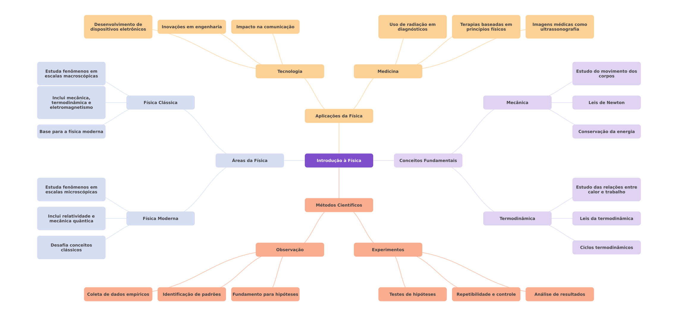 Desenvolvimento de Uso de radiação em dispositivos eletrônicos Inovações em engenharia Impacto na comunicação Terapias baseadas em Imagens médicas como diagnósticos princípios físicos ultrassonografia Estuda fenômenos em Tecnologia Medicina Estudo do movimento dos escalas macroscópicas corpos Inclui mecânica, termodinâmica e Física Clássica Mecânica Leis de Newton eletromagnetismo Aplicações da Física Base para a física moderna Conservação da energia Áreas da Física Introdução à Física Conceitos Fundamentais Estuda fenômenos em Estudo das relações entre escalas microscópicas calor e trabalho Métodos Científicos Inclui relatividade e Física Moderna Termodinâmica Leis da termodinâmica mecânica quântica Desafia conceitos Ciclos termodinâmicos clássicos Observação Experimentos Coleta de dados empíricos Identificação de padrões Fundamento para hipóteses Testes de hipóteses Repetibilidade e controle Análise de resultados