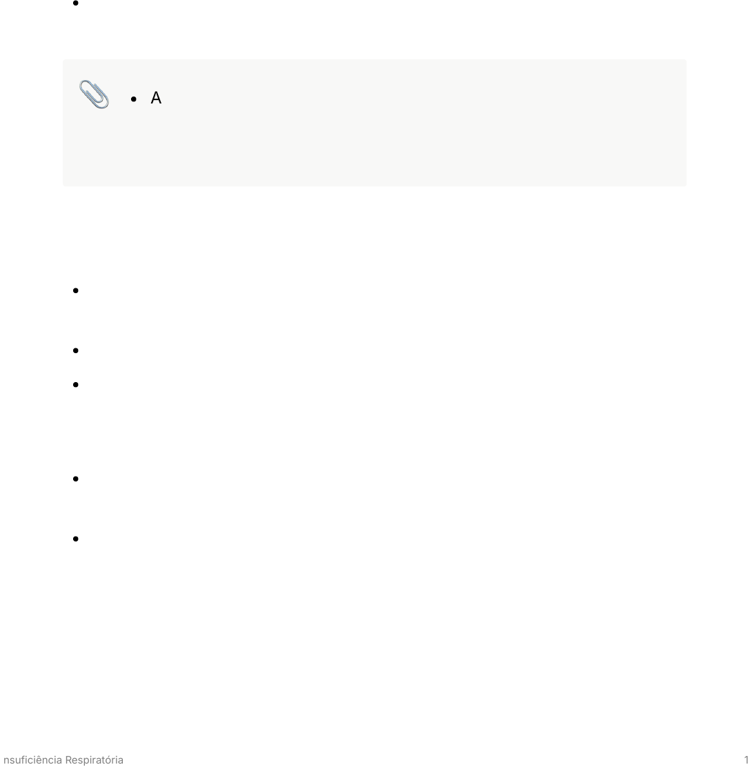 Insuficiência Respiratória Insuficiência Respiratória Pode ser definida como a condição clínica na qual o sistema respiratório não consegue manter os valores da pressão arterial de oxigênio PaO2 e/ou da pressão arterial de gás carbônico PaCO2 dentro dos limites da normalidade, para determinada demanda metabólica. Incapacidade do sistema respiratório em manter a ventilação e/ou a oxigenação do organismo humano. 📎 A insuficiência respiratória trata-se de uma síndrome/condição e não uma doença, sendo diversas as entidades clínicas que podem causá-la. Classificação Quanto à instalação: IR Aguda: rápida deterioração da função respiratória, alterações gasométricas e manifestações clínicas intensas; IR Crônica: instalação progressiva ao longo de meses/anos; IR Crônica agudizada: descompensação aguda em pacientes com processo crônico; Quanto ao tipo: Insuficiência Respiratória Hipoxêmica (tipo I: queda de PaO2 com valores normais ou reduzidos de PaCO2 Insuficiência Respiratória Hipercápnica /com hipoventilação / aumento do espaço morto (tipo II: elevação dos níveis de PaCO2 por falência respiratória Gasometria IR tipo I (hipoxêmica) Insuficiência Respiratória 1 PaO2 60 mmHg em ar ambiente. PaCO₂ normal ou baixo (por hiperventilação compensatória) pH pode estar normal ou alcalino leve IR tipo II (hipercápnica) PaCO2 45 mmHg em ar ambiente com pH 7,2; PaO₂ geralmente também reduzida 60 mmHg) em pacientes respirando o ar ambiente. pH 7,20 indica gravidade (não houve compensação metabólica adequada) acidose respiratória descompensada. Insuficiência Respiratória Hipoxêmica (tipo I) Gasometria arterial evidenciando hipoxemia decorrente de alterações da troca gasosa. (diminuição da PaO2 Também chamada de insuficiência alveolocapilar. Sintomas de hipoxemia; ventilação mantida. Compreende doenças que afetam, primariamente, vasos, alvéolos e interstício pulmonar. Principais exemplos: Pneumonia; Atelectasia; Síndrome do desconforto respiratório agudo SDRA ou Síndrome da angústida respiratória aguda SARA; Insuficiência Cardíaca IC; Tromboembolismo Pulmonar TEP; DPOC exacerbada; Pneumotórax; Insuficiência Respiratória Hipercápnica com hipoventilação/aumento do espaço morto (tipo II) Gasometria evidenciando hipercapnia com acidose respiratória decorrente de alterações do processo de ventilação. (aumento da PaCO2. Insuficiência Respiratória 2 Também chamada de insuficiência ventilatória. Pode ocorrer em pulmões normais (alterações do SNC, neuromusculares, parede torácica) ou em pulmões doentes, sobrepondo-se aos casos de IR tipo I, quando a fadiga do trabalho respiratório precipita a fadiga dos músculos respiratórios (o esforço extra para respirar acaba exaurindo os músculos respiratórios. Quando eles entram em fadiga, o paciente perde a capacidade de ventilar adequadamente, acumula CO₂ e passa a apresentar também insuficiência respiratória tipo II (hipercápnica). Principais exemplos: Alterações de SNC Lesões estruturais (neoplasia, infarto, hemorragia...); Drogas depressoras; Hipotireoidismo; Alcalose metabólica; Apneia do sono central; Doenças da medula: Trauma raquimedular, neoplasia, infecção, infarto, hemorragia, mielite transversa, Guilain-Barré, esclerose lateral amiotrófica....etc Disfunção da parede torácica e pleura: Cifoescoliose; Espondilite Anquilosante; Obesidade; Tórax instável; Fibrotórax; Tóracoplastia. Alterações neuromusculares, periféricas Doenças causadas por neurotoxinas, tétano, botulismo, difteria; Miastenia gravis; Insuficiência Respiratória 3 Síndromes paraneoplásicas; Distúrbios eletrolíticos: hipofosfatemia, hipomagnesia, hipocalima, hipocalcemia; Distrofias musculares; Poliomiosites; Hipotireoidismo; Miosite infecciosa. Obstrução das vias aéreas superiores VAS Epiglote; Edema de laringe; Aspiração de corpo estranho; Paralisia de cordas vocais, bilateralmente; Estenose de traqueia, traquiomalácia; Turmores nas VAS; Apneia do sono obstrutiva. Conceitos Importantes Ventilação V É o processo cíclico de entrada e saída de ar dos pulmões. Garante a renovação do gás alveolar, mantendo as pressões parciais de O₂ e CO₂ adequadas para as trocas gasosas. Resulta da ação integrada entre o centro respiratório, localizado no sistema nervoso, central SNC, vias nervosas, caixa torácica (estrutura osteomuscular) e os pulmões. A ventilação alveolar é dada pela seguinte fórmula: VA VT VD)f VA ventilação alveolar VT volume corrente VD volume do espaço morto anatômico Insuficiência Respiratória 4 f=freqüência respiratória. Perfusão: A circulação pulmonar é munida de um vasto leito vascular, no qual os pequenos vasos e os capilares são os responsáveis pela principal atividade funcional. É o fluxo sanguíneo que chega aos capilares pulmonares por meio da circulação pulmonar. (fornecimento de sangue aos capilares alveolares). Difusão: A capacidade de difusão pulmonar é a quantidade de gás que passa dos alvéolos para o sangue a cada minuto, para cada 1 mmHg de diferença de pressão entre o ar alveolar e o sangue capilar. O oxigênio entra porque a pressão é maior no alvéolo do que no sangue capilar. O gás carbônico sai porque a pressão é maior no sangue capilar do que no alvéolo. Influenciada por fatores como: Extensão da superfície da membrana de difusão (área); Solubilidade dos gases; Propriedades de difusibilidade do meio; Alterações dos gradientes de pressão dos gases; Relação Ventilação/Perfusão V/Q Os valores finais da PaO2 e PaCO2 resultam de interações entre a taxa de ventilação alveolar e o respectivo fluxo sangüíneo. Para que a troca gasosa seja eficiente, é necessário que haja ventilação suficiente nos alvéolos e perfusão adequada nos capilares. Zonas de West As zonas de West são divisões funcionais do pulmão que mostram como a gravidade e as 