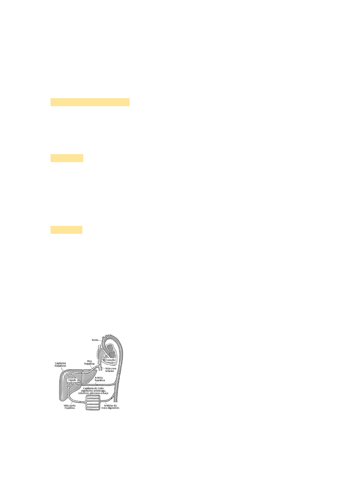 exercicio hepático ]1- Sabemos que o figado é um órgão que desempenha variadas funções no corpo humano. A seguir, algumas delas são descritas. Marque a alternativa que apresenta uma ação não desempenhada por esse importante órgão. a) Armazena o excesso de glicose na forma de glicogênio. b) Converte a amônia em ureia, que posteriormente é eliminada na urina. c) Sintetiza colesterol. d) Produz insulina e glucagon. e) Produz a protrombina e o fibrinogênio. 2- Sabemos que os hormônios atuam em vários órgãos, estimulando ou inibindo o seu funcionamento. Com o fígado não é diferente, pois esse órgão só inicia a produção da bile quando estimulado pelo hormônio: a) gastrina. b) secretina. c) colescistocinina. d) insulina. e) somatotrofina. 3- Se houver paralisação de produção de bile no fígado, haverá distúrbio na digestão de: a) proteínas. b) açúcares. c) aminoácidos. d) gorduras. e) polipeptídios. 4- O tabagismo é hoje responsável por mais de 50 doenças, causando a morte de 5,4 milhões de pessoas por ano. Na queima de um cigarro, há produção de 4.720 substâncias, das quais 60 apresentam atividade cancerígena e outras são reconhecidamente tóxicas. Além do sistema respiratório, o tabagismo afeta diversos órgãos, como o fígado, causando cirrose hepática ou, ainda, neoplasia. MIRRA, Antônio P. et al. Tabagismo, parte I. Revista da Associação Médica Brasileira, São Paulo, v. 56, n. 2, 2010. [Adaptado]. A figura abaixo representa um esquema simplificado do sistema porta hepático e órgãos relacionados. Some as afirmativas verdadeiras: 1) as substâncias tóxicas produzidas pela queima do cigarro são assimiladas p circulação sanguínea e, em seguida, alcançam o fígado exclusivamente através veia porta hepática. 2) o fígado é uma glândula que está localizada no lado esquerdo do abdom imediatamente abaixo do diafragma. 4) uma das funções do fígado é a desintoxicação do organismo, inativando substânc nocivas, porém o excesso dessas substâncias pode ocasionar lesões no tec hepático. 8) o fígado recebe sangue proveniente da veia porta hepática e da artéria hepática, q estão trazendo o sangue do intestino e do coração, respectivamente. 16) o fígado e a vesícula biliar produzem a bile, que é uma enzima com a função emulsificar as gorduras do alimento durante a sua passagem pelo estômago. 32) a filtração do sangue é uma das funções das células hepáticas, resultando formação da urina. 4+8=12 5- Quais as funções das seguintes células: a) Hepatócitos Metabolismo de nutrientes, desintoxicação, produção de bile, armazenamento de glicogênio, vitaminas, ferro e síntese de proteínas plasmáticas como Albumina e fatores de coagulação. b) Estelares Armazenamento de vitamina A, regulação do fluxo sanguíneo local e, em situações de lesão crônica, tornam-se miofibroblastos e contribuem para a fibrose hepática. c) Kupffer fagocitose de células sanguíneas velhas, microorganismos e detritos celulares. 6- Faça um esquema e explique como se dá a irrigação sanguínea no fígado 7- Descreva as funções metabólicas hepática quanto: a) Carboidrato - Armazenamento da glicose como glicogênio; - liberação de glicose; - regulação da glicemia. b) Proteína - síntese de proteínas plasmáticas; - conversão de amônia em ureia; - catabolismo de aminoácidos. c) Lipídios - síntese de colesterol e lipoproteínas; - oxidação de ácidos graxos; - conversão de carboidratos e proteínas em lipídios. 8- Discuta essa afirmação: o fígado tem alta capacidade regenerativa e de cicatrização. Essa afirmação é verdadeira. O fígado é um dos poucos órgãos que conseguem regenerar seu tecido funcional mesmo após lesões significativas ou remoção de parte dele (até 70%) ponto final essa Regeneração depende dos hepatócitos que conseguem entrar novamente no ciclo celular para proliferação. Porém, em casos de lesão crônica contínua (como Hepatite viral ou alcoolismo essa Regeneração é substituída por fibrose (formação de tecido cicatricial), devido à ativação das células estreladas. Se esse processo se agrava, pode levar a cirrose, comprometendo a função hepática.