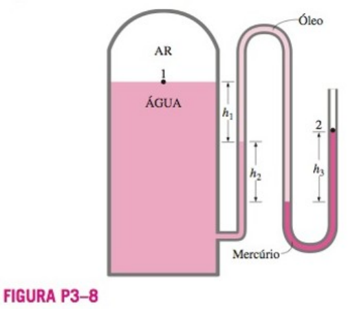 3.8 – A água de um tanque é pressurizada a ar, e a pressão é medida por um manômetro de vários fluidos, como mostra a Figura P3-8. Determine a pressão manométrica do ar no tanque se h1 = 0,2 m, h2 = 0,3 m e h3 = 0,46 m. Tome as densidades da água, do óleo e do mercúrio como 1.000 kg/m³, 850 kg/m³ e 13.600 kg/m³, respectivamente. 3.14 – A leitura de um medidor de pressão conectado a um tanque é de 500 kPa em um local onde a pressão atmosférica é de 94 kPa. Determine a pressão absoluta no tanque. 3.18 – Determine a pressão exercida sobre um mergulhador a 30 m abaixo da superfície livre do mar. Considere uma pressão barométrica de 101 kPa e uma gravidade específica de 1,03 para a água do mar. (Resposta: 404,0 kPa) 3.21 – Um medidor manométrico e um manômetro são anexados a um tanque de gás para medir sua pressão. Se a leitura do medidor manométrico de pressão for 80 kPa, determine a distância entre os dois níveis de fluido do manômetro se o fluido for (a) mercúrio (ρ = 13.600 kg/m³) ou (b) água (ρ = 1.000 kg/m³). 3.23 – Um manômetro contendo óleo (ρ = 850 kg/m³) é anexado a um tanque cheio com ar. Se a diferença do nível de óleo entre as duas colunas for de 45 cm e a pressão atmosférica for de 98 kPa, determine a pressão absoluta do tanque no ar. (Resposta: 101,75 kPa) 3.24 – Um manômetro a mercúrio (ρ = 13.600 kg/m³) está conectado a um duto de ar para medir a pressão interna. A diferença nos níveis do manômetro é de 15 mm e a pressão atmosférica é de 100 kPa. (a) Julgando pela Figura P3-24, determine se a pressão no duto está acima ou abaixo da pressão atmosférica. (b) Determine a pressão absoluta no duto. 3.27 – A pressão sanguínea máxima na parte superior do braço de uma pessoa saudável é de cerca de 120 mmHg. Se um tubo vertical aberto para a atmosfera estiver conectado à veia do braço da pessoa, determine até onde o sangue subirá no tubo. Considere a densidade do sangue como 1.050 kg/m³. 3.31 – Água doce e água do mar escoam em tubulações horizontais paralelas que estão conectadas entre si por um manômetro de tubo em U, como mostra a Figura P3-31. Determine a diferença de pressão entre as duas tubulações. Tome a densidade da água do mar no local como ρ = 1.035 kg/m³. A coluna de ar pode ser ignorada na análise? 3.33 – A pressão manométrica do ar no tanque mostrado na Figura P3-33 é medida como 65 kPa. Determine a altura diferencial h da coluna de mercúrio. 3.35 – A parte superior de um tanque de água está dividida em dois compartimentos, como mostra a Figura P3-35. Agora um fluido com uma densidade desconhecida é despejado de um lado e o nível da água sobe até determinada quantidade no outro lado para compensar esse efeito. Com base nas alturas finais do fluido mostradas na figura, determine a densidade do fluido adicionado. Suponha que o líquido não se misture com a água. 3.39 – Duas câmaras com o mesmo fluido na base estão separadas por um pistão com peso de 25 N, como mostra a Figura P3-39. Calcule as pressões manométricas das câmaras A e B. 3.41 – A diferença de pressão entre um tubo de óleo e um tubo de água é medido por um manômetro de fluido duplo, como mostra a Figura P3-41. Para as alturas de fluido e gravidades específicas dadas, calcule a diferença de pressão ΔP = PB – PA. 3.44 – Um contêiner com vários fluidos está conectado a um tubo em U, como mostra a Figura P3-44. Para as gravidades específicas e alturas de coluna de fluido dadas, determine a pressão manométrica a A. Determine também a altura de uma coluna de mercúrio que criaria a mesma pressão a A. (Respostas: 0,471 kPa, 0,353 cm) 3.58 – Uma calha de água de seção transversal semicircular com raio de 0,5 m consiste em duas partes simétricas com dobradiças entre as partes inferiores, como mostra a Figura P3-58. As duas partes são mantidas juntas por um cabo e esticador colocados a cada 3 m ao longo do comprimento da calha. Calcule a tensão em cada cabo quando a calha está cheia até a borda. 3.122 – Um domo hemisférico de 50 ton e diâmetro de 6 m sobre uma superfície nivelada é preenchido com água, como mostra a figura P3-122. Uma pessoa diz que pode elevar esse domo utilizando a lei de Pascal e acoplando um tubo longo ao topo e preenchendo-o com água. Determine a altura de água necessária no tubo para elevar o domo. Despreze o peso do tubo e da água que ele contém. (Resposta: 0,77 m) Ex. 5.8 – Um piezômetro e um tubo de Pitot são colocados em um tubo de água horizontal, como mostra a Figura 5.41, para medir as pressões estática e de estagnação (estática + dinâmica). Para as alturas de coluna d’água indicadas, determine a velocidade no centro do tubo. 5.7 – Um secador de cabelos é basicamente um duto com diâmetro constante no qual são colocadas algumas camadas de resistores elétricos. Um ventilador pequeno empurra o ar para dentro e o força a passar através dos resistores, onde ele é aquecido. Se a densidade do ar é de 1,20 kg/m³ na entrada e de 1,05 kg/m³ na saída, determine o aumento percentual na velocidade do ar quando ele escoa através do secador. 5.8 – Um tanque rígido de 1 m³ contém inicialmente ar, cuja densidade é 1,18 kg/m³. O tanque é conectado a uma linha fornecedora de alta pressão por meio de uma válvula. A válvula é aberta e o ar pode entrar no tanque até que a densidade do ar no tanque se eleve a 7,20 kg/m³. Determine a massa do ar que entrou no tanque. (Resposta: 6,02 kg) 5.10 – Um computador pessoal deve ser resfriado por um ventilador cuja vazão é de 0,34 m³/min. Determine a vazão de massa do ar através do ventilador a uma elevação de 3.400 m, onde a densidade do ar é de 0,7 kg/m³. Da mesma forma, se a velocidade média do ar não exceder os 110 m/min, determine o diâmetro do gabinete do ventilador. (Respostas: 0,238 kg/min, 0,063 m) 5.36 – Em climas frios, os tub