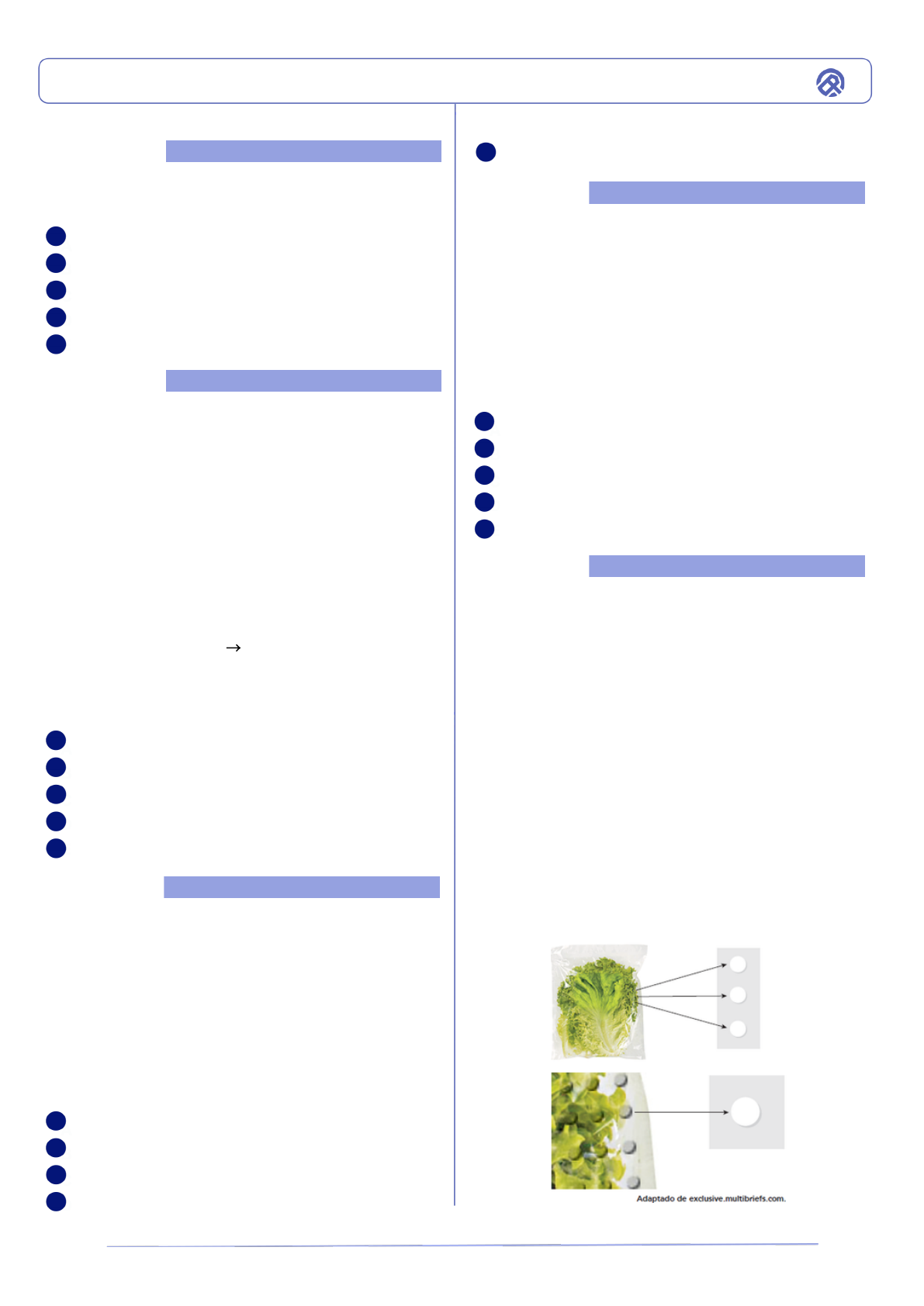 A B C D E A B C D E A B C D E A B C D A B C D E UFAC ENEM PPL 2022 FCM PB 2019/2Questão 2 Questão 1 1 Questão 4 Plataforma Assaad | Química | Separação de Misturas Com relação às substâncias O₂, H₂, H₂O, Pb, CO₂, O₃, CaO e S₈, podemos afirmar que: Associe corretamente a segunda coluna com a primeira: Todas são substâncias simples. Somente O₂, H₂ e O₃ são substâncias simples. Todas são substâncias compostas. Somente CO₂, CaO e S₈ são substâncias compostas. As substâncias O₂, H₂, Pb, O₃ e S₈ são simples. Os organismos clorofilados eucariontes e as cianobactérias apresentam a capacidade de transformar a água e a energia luminosa em oxigênio e o gás carbônico em água. Tal fenômeno chama-se fotossíntese e é de extrema importância, não só para a manutenção da vida desses organismos, como também para todo o nosso planeta, uma vez que é responsável por liberar oxigênio e consumir gás carbônico e, assim, permitir a existência de plantas e outros organismos produtores das cadeias alimentares. A seguinte equação química representa a fotossíntese: 6 CO₂(g) + 6 H₂O(l) → 1 C₆H₁₂O₆(aq) + 6 O₂(g) Entre os reagentes e produtos na equação da fotossíntese, podemos afirmar que estão presentes: A B C D E Três substâncias compostas. Duas substâncias simples e uma composta. Uma substância simples e três compostas. Três substâncias simples. Três elementos químicos diferentes. UNESP 2015 Questão 3 Alguns historiadores da Ciência atribuem ao filósofo pré- socrático Empédocles a Teoria dos Quatro Elementos. Segundo essa teoria, a constituição de tudo o que existe no mundo e sua transformação se dariam a partir de quatro elementos básicos: fogo, ar, água e terra. Hoje, a química tem outra definição para elemento: o conjunto de átomos que possuem o mesmo número atômico. Portanto, definir a água como elemento está quimicamente incorreto, porque trata-se de A B C D Uma mistura de três elementos. Uma substância simples com dois elementos. Uma substância composta com três elementos. Uma mistura de dois elementos. E Uma substância composta com dois elementos. Coluna I I. Gás ozônio (O₃) II. Gás cloro (Cl₂) III. Água oxigenada (H₂O₂) IV. Ácido sulfúrico (H₂SO₄) V. Átomo de cobre (Cu) Coluna II (a) Substância composta (b) Elemento (c) Substância simples A associação correta é: A B C D E I-c, II-b, III-c, IV-a, V-a I-b, II-b, III-b, IV-c, V-b I-a, II-b, III-b, IV-c, V-c I-c, II-c, III-a, IV-a, V-b I-c, II-a, III-c, IV-c, V-b Questão 5 UFRJ 2019 UTILIZE AS INFORMAÇÕES A SEGUIR PARA RESPONDER À QUESTÃO. Novas tecnologias de embalagens visam a aumentar o prazo de validade dos alimentos, reduzindo sua deterioração e mantendo a qualidade do produto comercializado. Essas embalagens podem ser classificadas em Embalagens de Atmosfera Modificada Tradicionais (MAP) e Embalagens de Atmosfera Modificada em Equilíbrio (EMAP). As MAP são embalagens fechadas que podem utilizar em seu interior tanto gases como He, Ne, Ar e Kr, quanto composições de CO2 e O2 em proporções adequadas. As EMAP também podem utilizar uma atmosfera modificada formada por CO2 e O2 e apresentam microperfurações na sua superfície, conforme ilustrado abaixo. A B C D A B C D E UFAC FCM PB 2019/2 2 Plataforma Assaad | Química | Separação de Misturas UNESP 2015 UFR 2019 Dentre os gases citados no texto, aquele que corresponde a uma substância composta é simbolizado por : E A B C D Kr O₂ He CO₂ UEA 2018Questão 6 Relatórios sobre a poluição atmosférica em grandes cidades indicam a presença dos gases dióxido de enxofre (SO₂), monóxido de carbono (CO) e ozônio (O₃) em quantidades que podem ser prejudiciais à saúde. (http://cetesb.sp.gov.br. Adaptado.) Na atmosfera, esses gases poluentes formam uma mistura___________. Dentre esses poluentes, o__________ é uma substância simples. Assinale a alternativa que preenche as lacunas do texto. A B C D E Homogênea – CO Homogênea – O₃ Homogênea – SO₂ Heterogênea – O₃ Heterogênea – CO E UFGD 2015Questão 7 Os elementos químicos que estão representados na tabela periódica podem se unir por meio de ligações químicas, para formar diversas substâncias. As diversas moléculas existentes podem ser chamadas de substâncias e classificadas como substâncias simples ou compostas. No esquema abaixo, cada “bolinha” representa um átomo diferente. Conforme a quantidade de moléculas, substâncias simples e substâncias compostas, assinale a alternativa correta. A B C 5 moléculas, 12 substâncias simples e 3 substâncias compostas 12 moléculas, 5 substâncias simples e 3 substâncias compostas 5 moléculas, 3 substâncias simples e 2 substâncias compostas D E 5 moléculas, 2 substâncias simples e 3 substâncias compostas 12 moléculas, 2 substâncias simples e 3 substâncias compostas Barão de Mauá 2019 Questão 8 Substância simples é toda substância pura constituída por átomos de um mesmo elemento químico; Substância composta é toda substância pura constituída por átomos de elementos químicos diferentes. Assinale, a seguir, a opção que apresenta somente substâncias compostas. A B C D E CO₂, KNO₃, Cl₂ e O₃. C₆H₁₂O₆, HNO₃, H₃PO₄ e C diamante. H₃PO₄, KNO₃, Cl₂ e PH₃. H₂O, CO, HClO e PH₃. KNO₃, S₈, HI e C grafite. EAM-2018Questão 9 Considere os sistemas abaixo: Simples, mistura homogênea e mistura heterogênea. Composta, mistura heterogênea e mistura heterogênea. Composta, mistura homogênea e mistura homogênea. Composta, mistura heterogênea e mistura homogênea. Simples, mistura homogênea e mistura heterogênea. UFJF 2020Questão 10 A notícia foi amplamente divulgada nos veículos de comunicação em maio de 2019: Sem cheiro, gosto ou cor, o gás que matou uma família de brasileiros que comemorava um aniversário no Chile pode levar à morte tão rápido que 