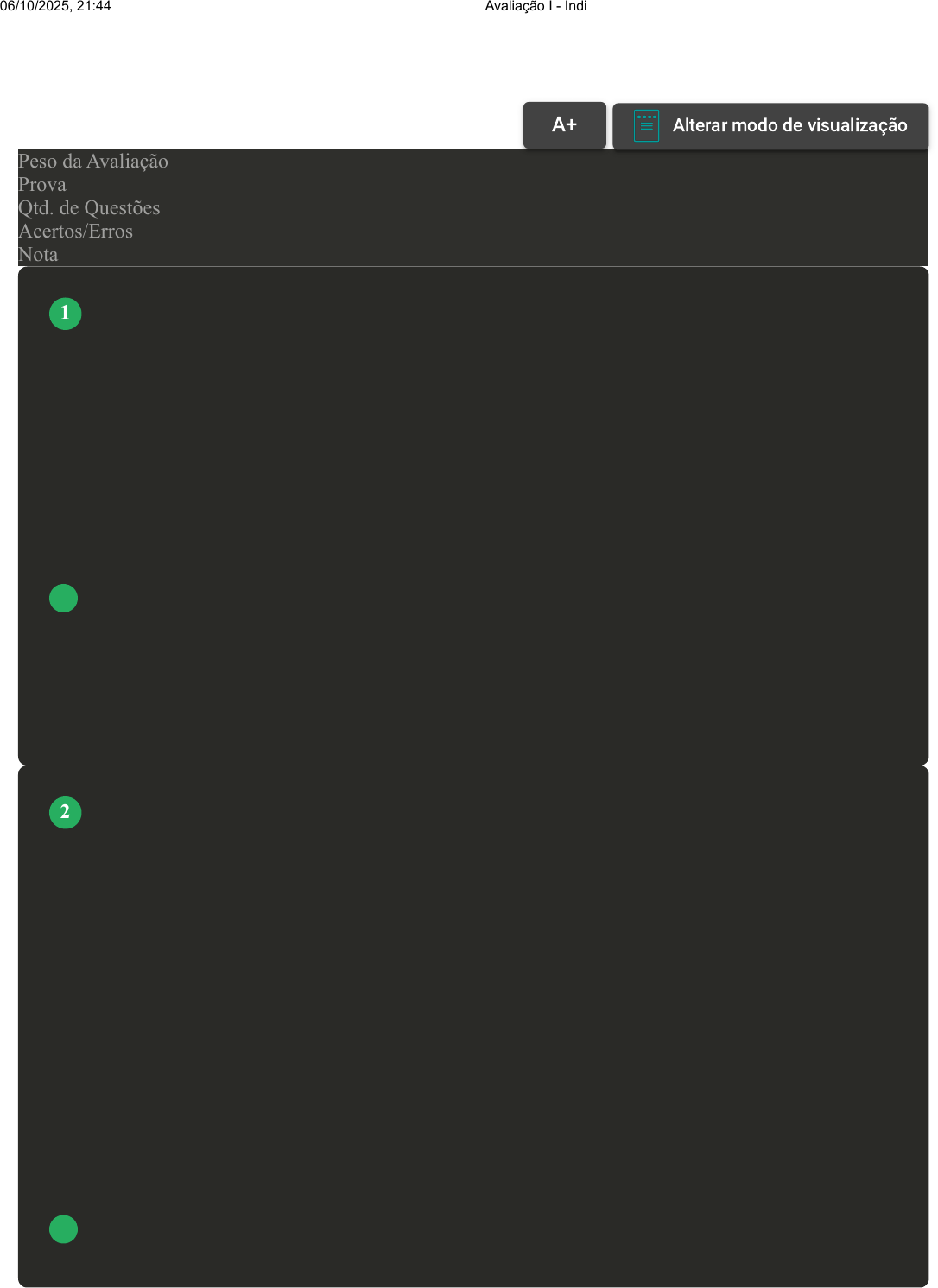 Prova Impressa GABARITO | Avaliação I - Individual (Cod.:1528728) Peso da Avaliação 1,50 Prova 106428816 Qtd. de Questões 10 Acertos/Erros 10/0 Nota 10,00 Sabemos que o Arduino é uma ferramenta importante para vários tipos de trabalho, podendo ser utilizada de diversas maneiras. Sobre o Arduino, avalie as asserções a seguir e a relação proposta entre elas: I- Arduino é open source, ou seja, todo o hardware é aberto e os projetos estão disponíveis, mas o software de programação é pago. PORQUE II- A memória flash delimita o tamanho máximo do programa que será executado pelo Arduino. Assinale a alternativa CORRETA: A As asserções I e II são proposições verdadeiras, mas a II não é uma justificativa da I. B A asserção I é uma proposição falsa, e a II é uma proposição verdadeira. C As asserções I e II são proposições falsas. D As asserções I e II são proposições verdadeiras, e a II é uma justificativa da I. A linguagem de programação utilizada no Arduino possui três partes essenciais, que são: estrutura, funções e valores. Os valores ainda podem ser subdivididos entre variáveis e constantes. Sobre o exposto, classifique V para as sentenças verdadeiras e F para as falsas: ( ) Volatile é um qualificador de variável que é usado antes do tipo de dado para modificar o modo como o compilador e o programa subsequente trata a variável. ( ) Volatile não orienta o compilador a carregar a partir da RAM. ( ) Uma variável deve ser declarada volátil sempre que seu valor puder ser alterado por algo além do controle da seção de código em que ela aparece. Assinale a alternativa que apresenta a sequência CORRETA: A F - V - F. B V - F - F. C F - F - V. D V - F - V. VOLTAR A+ Alterar modo de visualização 1 2 06/10/2025, 21:44 Avaliação I - Individual about:blank 1/5 O conhecimento sobre como são programados os microcontroladores é fundamental para atender as suas aplicações no cotidiano. Sobre o exposto, classifique V para as sentenças verdadeiras e F para as falsas: ( ) O Arduino possui um microcontrolador limitado, por isso é muito utilizado apenas em aplicações didáticas. ( ) Como os nomes de funções no Arduino são bastante intuitivos, utilizamos a função analogRead para ler valores digitais; ao chamar a função, passamos como argumento o número da porta que desejamos ler (de 0 a 20). ( ) Ao contrário das portas digitais, as portas analógicas são apenas de entrada, e nelas podemos ter como infinitos valores de tensão (delimitados na faixa de 0 V a 5 V). Assinale a alternativa que apresenta a sequência CORRETA: A F - F - V. B V - F - V. C V - F - F. D F - V - F. Ao escolher um microcontrolador para seu produto, o desenvolvedor deve levar em conta algumas especificações. Com relação a isso, associe os itens, utilizando o código a seguir: I- Flash. II- Bluetooth, wifi, zigbee. III- Montador. IV- GPIOs (Digital General Purpose Input and Output). ( ) Memória utilizada como se fosse um disco rígido para armazenamento de programa, portátil e com acesso muito rápido. ( ) Portas programáveis de entrada e saída de dados que são utilizadas para prover uma interface entre os periféricos e os microcontroladores. ( ) Usado se o seu produto necessita de interfaces sem fio, porém há microcontroladores especializados para esse tipo de aplicação que oferecem opções deste tipo. ( ) Utiliza apenas a linguagem Assembly, usando apenas as instruções do fabricante. Assinale a alternativa que apresenta a sequência CORRETA: A III - II - IV - I. B II - I - IV - III. C I - IV - II - III. D I - II - IV - III. 3 4 06/10/2025, 21:44 Avaliação I - Individual about:blank 2/5 Nascido na cidade de Ivrea, na Itália, em 2005, o Arduino foi projetado inicialmente para aplicações escolares. Mas o sucesso dessa placa foi tão grande que ela caiu no gosto popular dos apaixonados por tecnologia e inovação. Sobre este dispositivo, classifique V para as sentenças verdadeiras e F para as falsas: ( ) A linguagem de programação utilizada para programar o Arduino é a linguagem C++ com algumas pequenas modificações. Com o decorrer do tempo, a linguagem foi substituída pela HTML. ( ) Shields ou módulos são placas que desenvolvidas para serem compatíveis apenas mecanicamente com as placas de Arduino, expandindo as capacidades das placas de Arduino, para diversas finalidades. ( ) Com uma saída digital, podemos fazer com que um pino libere 0 ou 5 volts. Com um pino programado como saída digital, podemos acender um led, ligar um relé, acionar um motor, entre dentre diversas outras coisas. Assinale a alternativa que apresenta a sequência CORRETA: A V - F - F. B F - V - F. C V - F - V. D F - F - V. Os tipos de variáveis para medir temperatura, um caractere, números flutuantes ou booleanos são diferentes, e requerem que o projetista esteja atento a essas informações. Sobre o exposto, classifique V para as sentenças verdadeiras e F para as falsas: ( ) Variáveis são posições na memória do Arduino marcadas com um nome e o tipo de dado que serão armazenados nelas. ( ) Antes de ser utilizada, não há necessidade de ser declarada. ( ) Uma variável global deve ser utilizada apenas em funções específicas. Assinale a alternativa que apresenta a sequência CORRETA: A V - F - V. B F - V - F. C F - F - V. D V - F - F. Sobre a interface de placa Arduino UNO, é importante identificarmos o que caracteriza o funcionamento do dispositivo. Sobre o Arduino, classifique V para as sentenças verdadeiras e F para as falsas: ( ) Frequência do processador: não determina a velocidade de operação do microcontrolador. ( ) Número de temporizadores: importante em aplicações com características temporais. 5 6 7 06/10/2025, 21:44 Avaliação I - Individual about:blank 3/5 ( ) Número de pinos de entrada/saída e suas funcionalidades: diferentes pinos detêm as mesmas funcionalidades. Assinale a alternativa que apresenta a sequência CORRE