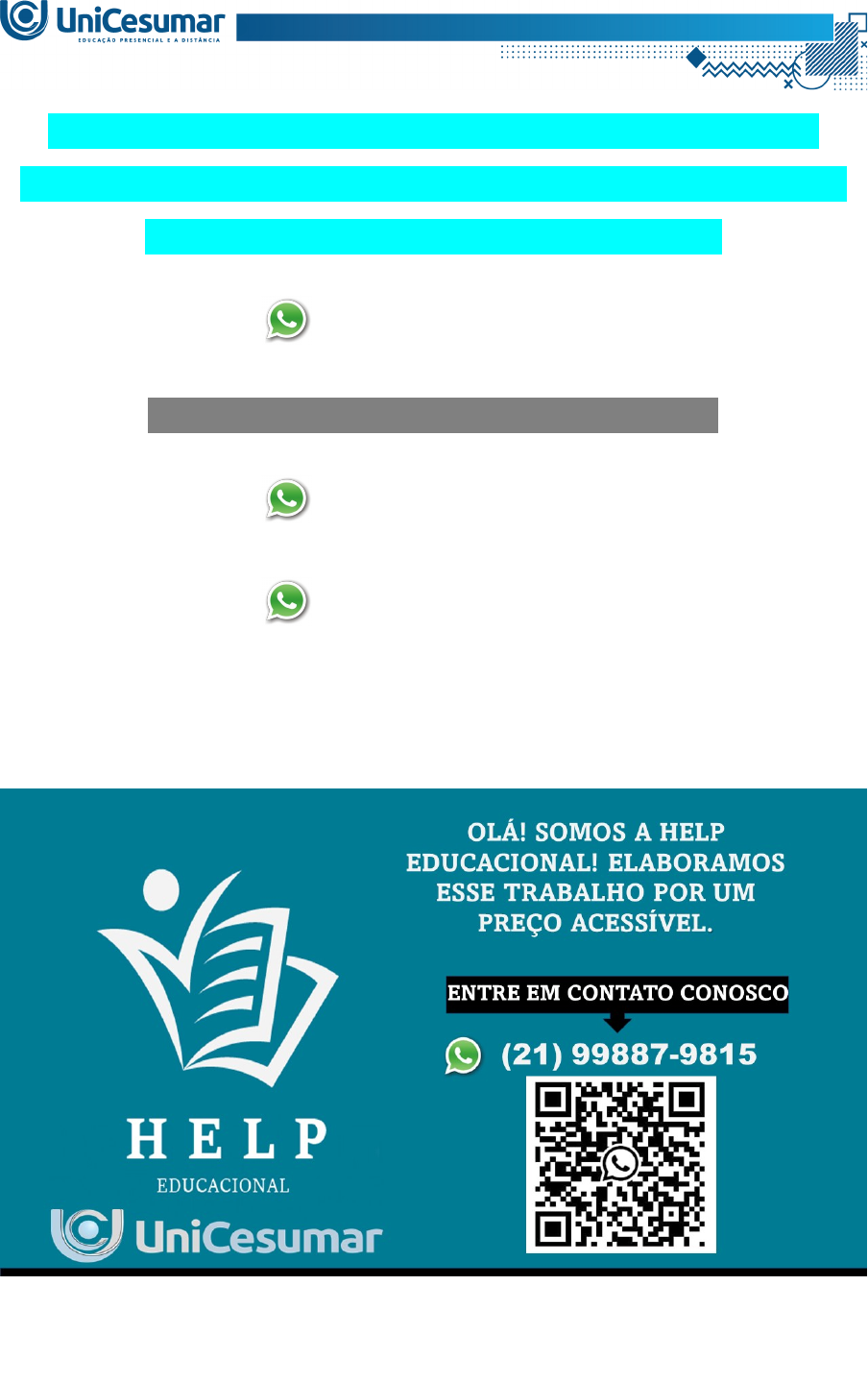 ATIVIDADE 1 – ENF - EXPERIÊNCIA PROFISSIONAL: SIMULAÇÃO DA ASSISTÊNCIA EM SAÚDE DA MULHER, CRIANÇA E NEONATOLOGIA - 54_2025 (21) 99887-9815 ASSESSORIA NOS SEUS TRABALHOS (21) 99887-9815 (21) 99887-9815 Olá estudante! Nessa atividade, proporcionaremos uma imersão científica na identificação das possíveis alterações fisiológicas que acontecem na mama feminina durante a gestação e lactação. A amamentação também é considerada um fator protetor para o aparecimento de doenças crônicas, como as neoplasias mamárias. O diagnóstico precoce consiste na abordagem oportuna das mulheres com sinais e sintomas suspeitos de câncer para identificação da doença em fase inicial, a fim de possibilitar tratamento efetivo e maior sobrevida. É importante informar as mulheres e os profissionais de saúde sobre o reconhecimento dos sinais e sintomas do câncer de mama, bem como organizar a rede de atenção à saúde para garantir o acesso rápido e facilitado ao diagnóstico e tratamento da doença. A orientação é que a mulher observe e apalpe suas mamas sempre que se sentir confortável para tal (seja no banho, no momento da troca de roupa ou em outra situação do cotidiano), sem técnica específica, valorizando-se a descoberta casual de pequenas alterações mamárias. Considerando o contexto promotor da saúde e educador em saúde, a atividade propõe: Fazer uma busca nos livros da minha biblioteca e localizar o livro: Atlas de Diagnóstico por imagem de mama. Apresente, por meio de um texto dissertativo e explicativo, as diferenças fisiológicas entre a mama lactente e não lactente. Em seguida, realizar nova busca e localizar o livro: Integralidade no processo de cuidar em enfermagem na saúde da mulher A partir da leitura, elaborar um segundo texto dissertativo sobre a atribuição na abordagem clínica, consulta de enfermagem, nas ações que contemplem a integralidade do cuidado no exame clínico das mamas. Bom estudo! OLÁ! SOMOS A HELP EDUCACIONAL! ELABORAMOS ESSE TRABALHO POR UM PREÇO ACESSÍVEL. ENTRE EM CONTATO CONOSCO (21) 99887-9815 image1.png image2.png image3.png