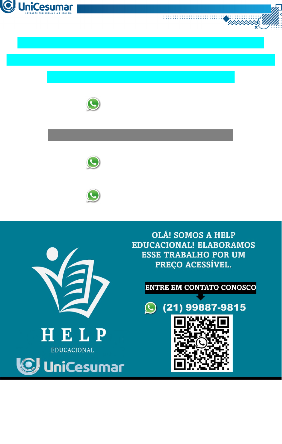 PORTFÓLIO – ENF - EXPERIÊNCIA PROFISSIONAL: SIMULAÇÃO DA ASSISTÊNCIA EM SAÚDE DA MULHER, CRIANÇA E NEONATOLOGIA - 54_2025 (21) 99887-9815 ASSESSORIA NOS SEUS TRABALHOS (21) 99887-9815 (21) 99887-9815 Olá estudante! Na atividade MAPA propomos estimular seu lado criativo e educador em saúde! Faz parte da rotina do profissional enfermeiro educar-se, educar seu time e às pessoas na comunidade, principalmente em assuntos com relevância promotora em nível nacional, como a prevenção do câncer de mama! Por isso, o convidamos a confeccionar uma mama didática para auxiliá-lo em uma ação de educação em saúde. É sabido, sobre o diagnóstico precoce consiste na abordagem oportuna das mulheres com sinais e sintomas suspeitos de câncer para identificação da doença em fase inicial, a fim de possibilitar tratamento efetivo e maior sobrevida. É importante informar as mulheres e os profissionais de saúde sobre o reconhecimento dos sinais e sintomas do câncer de mama, bem como organizar a rede de atenção à saúde para garantir o acesso rápido e facilitado ao diagnóstico e tratamento da doença. A orientação é que a mulher observe e apalpe suas mamas sempre que se sentir confortável para tal (seja no banho, no momento da troca de roupa ou em outra situação do cotidiano), sem técnica específica, valorizando-se a descoberta casual de pequenas alterações mamárias. Na atividade de estudo 1, você pôde compreender a anatomia e fisiologia da mama feminina, com base nesse conhecimento prévio, estamos sugerindo alguns materiais para a construção da mama didática: Materiais: Tecido: Feltro, tecido de algodão, tecido com textura semelhante à pele ou linha de crochê, em cores que representem o tom de pele desejado e o mamilo. Enchimento: Espuma, algodão ou manta acrílica para dar volume e forma à mama. Linha e agulha: Para costurar as peças. Tesoura: Para cortar o tecido. Moldes: Opcional, mas pode ajudar a garantir a forma desejada. Outros materiais: Pode-se usar botões para o mamilo, feltro de outras cores para a aréola, ou até mesmo materiais que simulem ductos mamários (por exemplo, canudos finos) para uma representação mais detalhada. Passos: 1. Corte os moldes: Utilize os moldes ou desenhe a forma da mama no tecido escolhido, criando duas peças iguais para as laterais. Corte também um círculo para o mamilo e um anel para a aréola. 2. Costure o mamilo: Posicione o círculo do mamilo na parte frontal de uma das peças da mama e costure-o, deixando uma pequena abertura para o enchimento. 3. Costure a aréola: Posicione o anel da aréola ao redor do mamilo e costure-o, unindo-o à peça da mama. 4. Costure as laterais: Una as duas peças da mama, deixando uma abertura para o enchimento. Costure ao redor, deixando uma pequena parte aberta. 5. Encha a mama: Preencha a mama com o enchimento escolhido, modelando-a para que fique com a forma desejada. 6. Feche a abertura: Após o preenchimento, feche a abertura restante da mama, costurando cuidadosamente. Dicas: Para representar ductos mamários, você pode inserir pequenos pedaços de canudo ou fios de lã entre as camadas de enchimento, simulando os canais que levam o leite. Utilize cores e texturas diferentes para diferenciar o mamilo, a aréola e o tecido da mama, facilitando a identificação e o aprendizado. O tamanho da mama lúdica pode variar de acordo com o objetivo e o público-alvo. Mamas maiores podem ser mais adequadas para demonstrações e aprendizado, enquanto mamas menores podem ser mais práticas para brincadeiras e atividades interativas. De posse da sua arte, faça o registro fotográfico do antes (disposição dos materiais) e depois (a mama didática pronta) em que você apareça na imagem, portanto, duas fotos. Pronto, você pode visitar o site do Ministério da Saúde e acessar as campanhas promotoras da saúde sobre do Outubro Rosa e disseminar o conhecimento em sua comunidade e familiares! Obs.:. Não há a necessidade de registro das ações na comunidade, somente da mama didática. Não vale fotos prontas da internet, somente o material produzido por você e conforme os materiais disponíveis em sua região. Bom estudo! OLÁ! SOMOS A HELP EDUCACIONAL! ELABORAMOS ESSE TRABALHO POR UM PREÇO ACESSÍVEL. ENTRE EM CONTATO CONOSCO (21) 99887-9815 image1.png image2.png image3.png