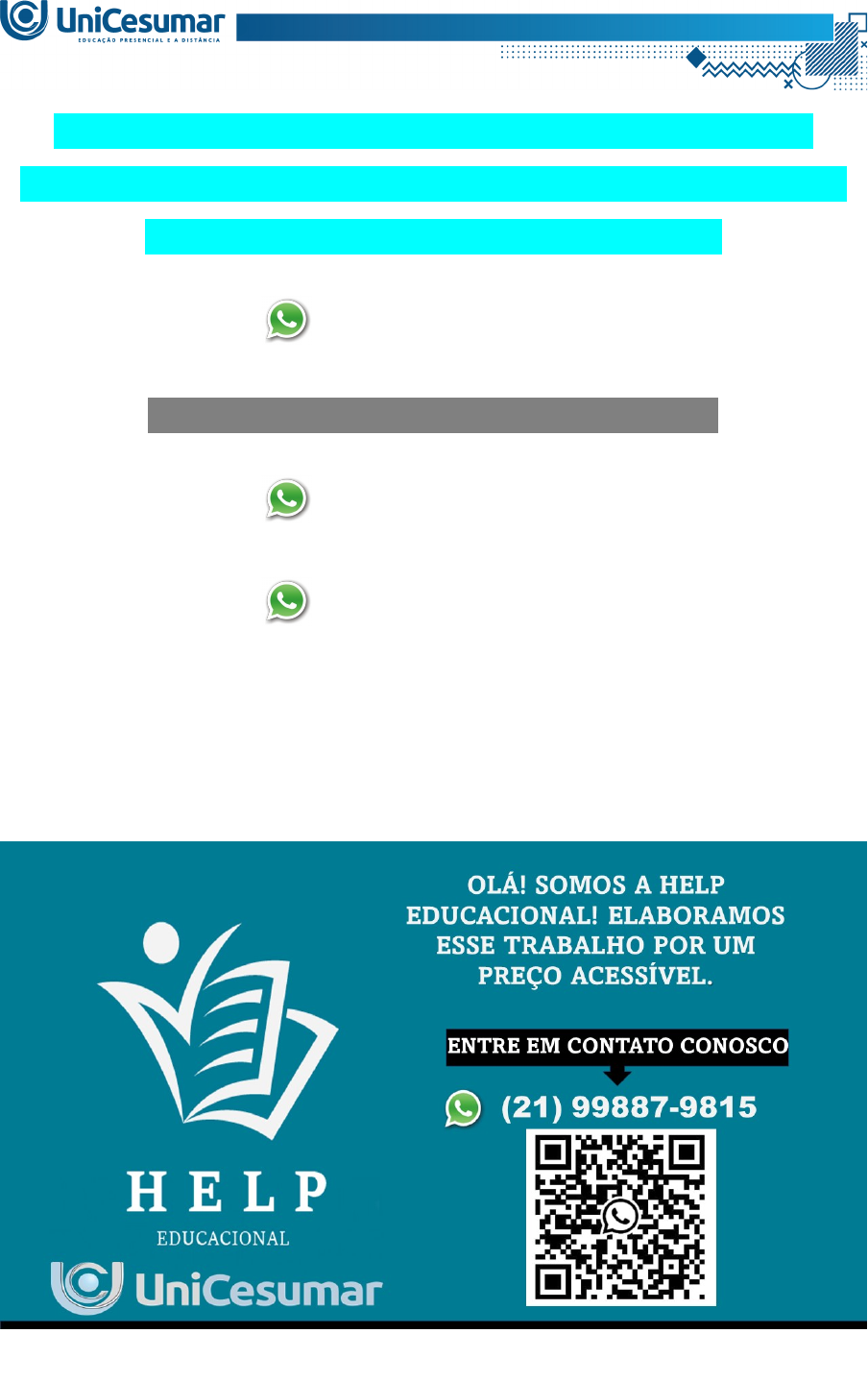 PORTFÓLIO – ENF - EXPERIÊNCIA PROFISSIONAL: SIMULAÇÃO DA ASSISTÊNCIA EM SAÚDE DA MULHER, CRIANÇA E NEONATOLOGIA - 54_2025 (21) 99887-9815 ASSESSORIA NOS SEUS TRABALHOS (21) 99887-9815 (21) 99887-9815 Olá estudante! Na atividade MAPA propomos estimular seu lado criativo e educador em saúde! Faz parte da rotina do profissional enfermeiro educar-se, educar seu time e às pessoas na comunidade, principalmente em assuntos com relevância promotora em nível nacional, como a prevenção do câncer de mama! Por isso, o convidamos a confeccionar uma mama didática para auxiliá-lo em uma ação de educação em saúde. É sabido, sobre o diagnóstico precoce consiste na abordagem oportuna das mulheres com sinais e sintomas suspeitos de câncer para identificação da doença em fase inicial, a fim de possibilitar tratamento efetivo e maior sobrevida. É importante informar as mulheres e os profissionais de saúde sobre o reconhecimento dos sinais e sintomas do câncer de mama, bem como organizar a rede de atenção à saúde para garantir o acesso rápido e facilitado ao diagnóstico e tratamento da doença. A orientação é que a mulher observe e apalpe suas mamas sempre que se sentir confortável para tal (seja no banho, no momento da troca de roupa ou em outra situação do cotidiano), sem técnica específica, valorizando-se a descoberta casual de pequenas alterações mamárias. Na atividade de estudo 1, você pôde compreender a anatomia e fisiologia da mama feminina, com base nesse conhecimento prévio, estamos sugerindo alguns materiais para a construção da mama didática: Materiais: Tecido: Feltro, tecido de algodão, tecido com textura semelhante à pele ou linha de crochê, em cores que representem o tom de pele desejado e o mamilo. Enchimento: Espuma, algodão ou manta acrílica para dar volume e forma à mama. Linha e agulha: Para costurar as peças. Tesoura: Para cortar o tecido. Moldes: Opcional, mas pode ajudar a garantir a forma desejada. Outros materiais: Pode-se usar botões para o mamilo, feltro de outras cores para a aréola, ou até mesmo materiais que simulem ductos mamários (por exemplo, canudos finos) para uma representação mais detalhada. Passos: 1. Corte os moldes: Utilize os moldes ou desenhe a forma da mama no tecido escolhido, criando duas peças iguais para as laterais. Corte também um círculo para o mamilo e um anel para a aréola. 2. Costure o mamilo: Posicione o círculo do mamilo na parte frontal de uma das peças da mama e costure-o, deixando uma pequena abertura para o enchimento. 3. Costure a aréola: Posicione o anel da aréola ao redor do mamilo e costure-o, unindo-o à peça da mama. 4. Costure as laterais: Una as duas peças da mama, deixando uma abertura para o enchimento. Costure ao redor, deixando uma pequena parte aberta. 5. Encha a mama: Preencha a mama com o enchimento escolhido, modelando-a para que fique com a forma desejada. 6. Feche a abertura: Após o preenchimento, feche a abertura restante da mama, costurando cuidadosamente. Dicas: Para representar ductos mamários, você pode inserir pequenos pedaços de canudo ou fios de lã entre as camadas de enchimento, simulando os canais que levam o leite. Utilize cores e texturas diferentes para diferenciar o mamilo, a aréola e o tecido da mama, facilitando a identificação e o aprendizado. O tamanho da mama lúdica pode variar de acordo com o objetivo e o público-alvo. Mamas maiores podem ser mais adequadas para demonstrações e aprendizado, enquanto mamas menores podem ser mais práticas para brincadeiras e atividades interativas. De posse da sua arte, faça o registro fotográfico do antes (disposição dos materiais) e depois (a mama didática pronta) em que você apareça na imagem, portanto, duas fotos Pronto, você pode visitar o site do Ministério da Saúde e acessar as campanhas promotoras da saúde sobre do Outubro Rosa e disseminar o conhecimento em sua comunidade e familiares! Obs.:. Não há a necessidade de registro das ações na comunidade, somente da mama didática. Não vale fotos prontas da internet, somente o material produzido por você e conforme os materiais disponíveis em sua região Bom estudo! OLÁ! SOMOS A HELP EDUCACIONAL! ELABORAMOS ESSE TRABALHO POR UM PREÇO ACESSÍVEL. ENTRE EM CONTATO CONOSCO (21) 99887-9815 image1.png image2.png image3.png