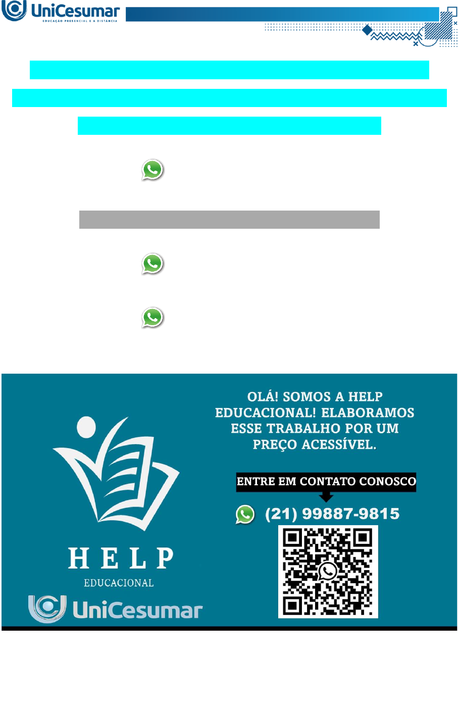 PORTFÓLIO – ENF - EXPERIÊNCIA PROFISSIONAL: SIMULAÇÃO DA ASSISTÊNCIA EM SAÚDE DA MULHER, CRIANÇA E NEONATOLOGIA - 54_2025 (21) 99887-9815 ASSESSORIA NOS SEUS TRABALHOS (21) 99887-9815 (21) 99887-9815 Olá estudante! Na atividade MAPA propomos estimular seu lado criativo e educador em saúde! Faz parte da rotina do profissional enfermeiro educar-se, educar seu time e às pessoas na comunidade, principalmente em assuntos com relevância promotora em nível na- cional, como a prevenção do câncer de mama! Por isso, o convidamos a confeccio- nar uma mama didática para auxiliá-lo em uma ação de educação em saúde. É sa- bido, sobre o diagnóstico precoce consiste na abordagem oportuna das mulheres com sinais e sintomas suspeitos de câncer para identificação da doença em fase inicial, a fim de possibilitar tratamento efetivo e maior sobrevida. É importante infor- mar as mulheres e os profissionais de saúde sobre o reconhecimento dos sinais e sintomas do câncer de mama, bem como organizar a rede de atenção à saúde para garantir o acesso rápido e facilitado ao diagnóstico e tratamento da doença. A orien- tação é que a mulher observe e apalpe suas mamas sempre que se sentir confortá- vel para tal (seja no banho, no momento da troca de roupa ou em outra situação do cotidiano), sem técnica específica, valorizando-se a descoberta casual de pequenas alterações mamárias Na atividade de estudo 1, você pôde compreender a anatomia e fisiologia da mama feminina, com base nesse conhecimento prévio, estamos sugerindo alguns materi- ais para a construção da mama didática: Materiais: Tecido: Feltro, tecido de algodão, tecido com textura semelhante à pele ou linha de crochê, em cores que representem o tom de pele desejado e o mamilo. Enchimento: Espuma, algodão ou manta acrílica para dar volume e forma à mama. Linha e agulha: Para costurar as peças. Tesoura: Para cortar o tecido. Moldes: Opcional, mas pode ajudar a garantir a forma desejada. Outros materiais: Pode-se usar botões para o mamilo, feltro de outras cores para a aréola, ou até mesmo materiais que simulem ductos mamários (por exemplo, canu- dos finos) para uma representação mais detalhada. Passos: 1. Corte os moldes: Utilize os moldes ou desenhe a forma da mama no tecido escolhido, criando duas peças iguais para as laterais. Corte também um círculo para o mamilo e um anel para a aréola. 2. Costure o mamilo: Posicione o círculo do mamilo na parte frontal de uma das peças da mama e cos- ture-o, deixando uma pequena abertura para o enchimento. 3. Costure a aréola: Posicione o anel da aréola ao redor do mamilo e costure-o, unindo-o à peça da mama. 4. Costure as laterais: Una as duas peças da mama, deixando uma abertura para o enchimento. Costure ao redor, deixando uma pequena parte aberta. 5. Encha a mama: Preencha a mama com o enchimento escolhido, modelando-a para que fique com a forma desejada. 6. Feche a abertura: Após o preenchimento, feche a abertura restante da mama, costurando cuidadosa- mente. Dicas: Para representar ductos mamários, você pode inserir pequenos pedaços de canudo ou fios de lã entre as camadas de enchimento, simulando os canais que levam o leite. Utilize cores e texturas diferentes para diferenciar o mamilo, a aréola e o tecido da mama, facilitando a identificação e o aprendizado. O tamanho da mama lúdica pode variar de acordo com o objetivo e o público-alvo. Mamas maiores podem ser mais adequadas para demonstrações e aprendizado, enquanto mamas menores podem ser mais práticas para brincadeiras e atividades interativas. De posse da sua arte, faça o registro fotográfico do antes (disposição dos materiais) e depois (a mama didática pronta) em que você apareça na imagem, portanto, duas fotos. Pronto, você pode visitar o site do Ministério da Saúde e acessar as campanhas promotoras da saúde sobre do Outubro Rosa e disseminar o conhecimento em sua comunidade e familiares! Obs.:. Não há a necessidade de registro das ações na comunidade, somente da mama didática. Não vale fotos prontas da internet, somente o material produzido por você e conforme os materiais disponíveis em sua região. Bom estudo! OLÁ! SOMOS A HELP EDUCACIONAL! ELABORAMOS ESSE TRABALHO POR UM PREÇO ACESSÍVEL. ENTRE EM CONTATO CONOSCO (21) 99887-9815