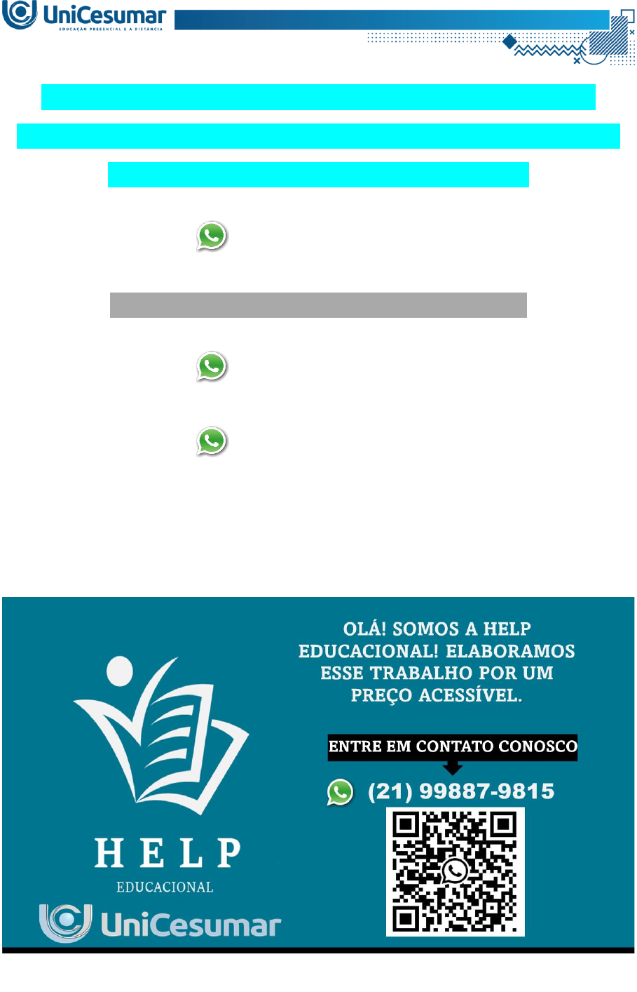 PORTFÓLIO – ENF - EXPERIÊNCIA PROFISSIONAL: SIMULAÇÃO DA ASSISTÊNCIA EM SAÚDE DA MULHER, CRIANÇA E NEONATOLOGIA - 54_2025 (21) 99887-9815 ASSESSORIA NOS SEUS TRABALHOS (21) 99887-9815 (21) 99887-9815 Olá estudante! Na atividade MAPA propomos estimular seu lado criativo e educador em saúde! Faz parte da rotina do profissional enfermeiro educar-se, educar seu time e às pessoas na comunidade, principalmente em assuntos com relevância promotora em nível na- cional, como a prevenção do câncer de mama! Por isso, o convidamos a confeccio- nar uma mama didática para auxiliá-lo em uma ação de educação em saúde. É sa bido, sobre o diagnóstico precoce consiste na abordagem oportuna das mulheres com sinais e sintomas suspeitos de câncer para identificação da doença em fase inicial, a fim de possibilitar tratamento efetivo e maior sobrevida. É importante infor- mar as mulheres e os profissionais de saúde sobre o reconhecimento dos sinais e sintomas do câncer de mama, bem como organizar a rede de atenção à saúde para garantir o acesso rápido e facilitado ao diagnóstico e tratamento da doença. A orien- tação é que a mulher observe e apalpe suas mamas sempre que se sentir confortá- vel para tal (seja no banho, no momento da troca de roupa ou em outra situação do cotidiano), sem técnica específica, valorizando-se a descoberta casual de pequenas alterações mamárias Na atividade de estudo 1, você pôde compreender a anatomia e fisiologia da mama feminina, com base nesse conhecimento prévio, estamos sugerindo alguns materi- ais para a construção da mama didática: Materiais: Tecido: Feltro, tecido de algodão, tecido com textura semelhante à pele ou linha de crochê, em cores que representem o tom de pele desejado e o mamilo. Enchimento: Espuma, algodão ou manta acrílica para dar volume e forma à mama. Linha e agulha: Para costurar as peças Tesoura: Para cortar o tecido. Moldes: Opcional, mas pode ajudar a garantir a forma desejada. Outros materiais: Pode-se usar botões para o mamilo, feltro de outras cores para a aréola, ou até mesmo materiais que simulem ductos mamários (por exemplo, canu- dos finos) para uma representação mais detalhada. Passos: 1. Corte os moldes: Utilize os moldes ou desenhe a forma da mama no tecido escolhido, criando duas peças iguais para as laterais. Corte também um círculo para o mamilo e um anel para a aréola. 2. Costure o mamilo: Posicione o círculo do mamilo na parte frontal de uma das peças da mama e cos- ture-o, deixando uma pequena abertura para o enchimento. 3. Costure a aréola: Posicione o anel da aréola ao redor do mamilo e costure-o, unindo-o à peça da mama. 4. Costure as laterais: Una as duas peças da mama, deixando uma abertura para o enchimento. Costure ao redor, deixando uma pequena parte aberta. 5. Encha a mama: Preencha a mama com o enchimento escolhido, modelando-a para que fique com a forma desejada. 6. Feche a abertura: Após o preenchimento, feche a abertura restante da mama, costurando cuidadosa- mente. Dicas: Para representar ductos mamários, você pode inserir pequenos pedaços de canudo ou fios de lã entre as camadas de enchimento, simulando os canais que levam o leite. Utilize cores e texturas diferentes para diferenciar o mamilo, a aréola e o tecido da mama, facilitando a identificação e o aprendizado. O tamanho da mama lúdica pode variar de acordo com o objetivo e o público-alvo. Mamas maiores podem ser mais adequadas para demonstrações e aprendizado, enquanto mamas menores podem ser mais práticas para brincadeiras e atividades interativas. De posse da sua arte, faça o registro fotográfico do antes (disposição dos materiais) e depois (a mama didática pronta) em que você apareça na imagem, portanto, duas fotos. Pronto, você pode visitar o site do Ministério da Saúde e acessar as campanhas promotoras da saúde sobre do Outubro Rosa e disseminar o conhecimento em sua comunidade e familiares! Obs.:. Não há a necessidade de registro das ações na comunidade, somente da mama didática. Não vale fotos prontas da internet, somente o material produzido por você e conforme os materiais disponíveis em sua região. Bom estudo! OLÁ! SOMOS A HELP EDUCACIONAL! ELABORAMOS ESSE TRABALHO POR UM PREÇO ACESSÍVEL. ENTRE EM CONTATO CONOSCO (21) 99887-9815