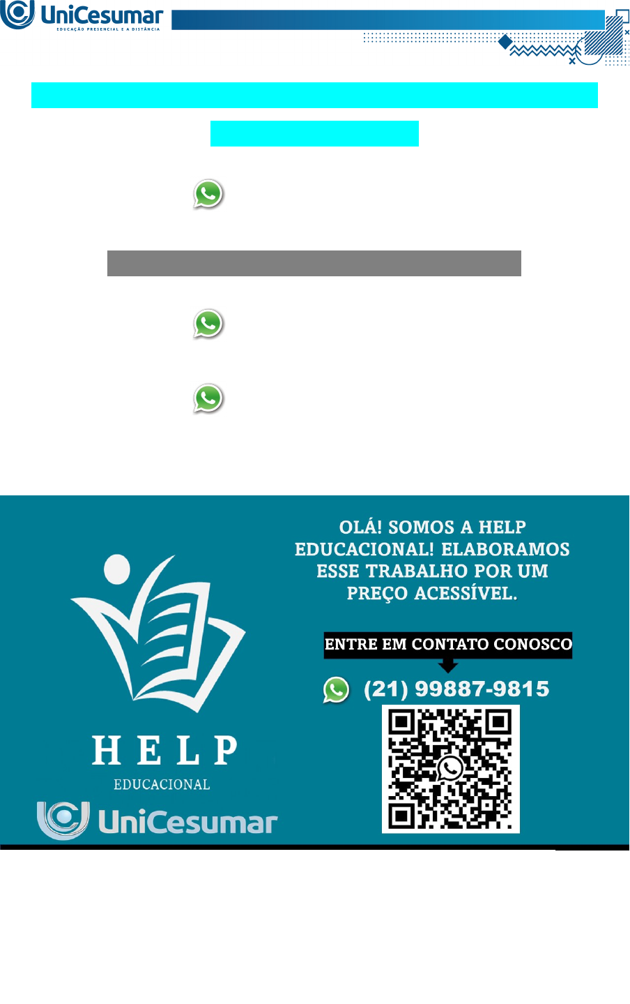 MAPA – EELE - CONVERSÃO ELETROMECÂNICA DE ENERGIA - 54_2025 (21) 99887-9815 ASSESSORIA NOS SEUS TRABALHOS (21) 99887-9815 (21) 99887-9815 MAPA – Conversão Eletromecânica de Energia (54/2025) 1. Os sistemas de potência em escala global são predominantemente trifásicos, em virtude de suas vantagens técnicas em termos de eficiência, estabilidade e capacidade de transmissão de energia elétrica. Em decorrência disso, os geradores síncronos, responsáveis por grande parte da conversão eletromecânica de energia, são majoritariamente projetados como máquinas trifásicas, constituindo-se em um padrão consolidado na engenharia elétrica, salvo raras exceções. Para a obtenção de um sistema trifásico equilibrado de tensões senoidais, defasadas de 120° elétricos no domínio temporal, torna-se imprescindível a disposição espacial de três enrolamentos no estator, igualmente espaçados de 120° elétricos. Essa configuração assegura a produção de um conjunto de grandezas simétricas, condição necessária não apenas para a operação estável dos geradores e motores, mas também para a interconexão harmônica com as redes de transmissão e distribuição A produção de um campo magnético girante é um fenômeno de natureza vetorial que emerge da superposição espacial e temporal dos sistemas trifásicos de correntes. Esse campo girante constitui-se no princípio fundamental que sustenta o funcionamento tanto dos geradores síncronos quanto dos motores de indução, evidenciando a relevância estrutural da topologia trifásica para a conversão e utilização eficiente da energia elétrica. Diante disso, com suas palavras, descreva o momento de magnetização devido à produção de um campo magnético girante. Apresente a sua explicação considerando 60° elétricos entre as fases A, B e C, sendo necessário um ciclo completo para explicação. 2. Um transformador de distribuição de 50 kVa, que, no seu lado de alta tensão, encontra-se com 2400 V e, no secundário de baixa tensão, em curto-circuito, apresenta uma tensão de 240 V com uma frequência de 60 Hz, possui uma impedância de dispersão de 0,72 + j0,92 do lado de alta tensão e de 0,0070 + j0,0090 no lado de baixa tensão. O ensaio de curto-circuito apresentou os valores de 48 V, 20,8 A e 617 W para alta tensão. A impedância responsável pela corrente de excitação é de 6,32 + j43,7 referente ao lado de baixa tensão. Um ensaio de circuito aberto, com o lado de baixa tensão energizado, apresentou os valores de 240 V, 5,14 A e 186 W. De acordo com as informações apresentadas: a) Desenhe o circuito equivalente ao lado de alta tensão e apresente os valores de impedâncias no circuito. b) Desenhe o circuito equivalente ao lado de baixa tensão e apresente os valores de impedância no circuito. c) Para o valor da alta tensão, calcule o valor da corrente que flui na impedância de magnetização. d) Determine o rendimento para um fator de potência de 0,80 indutivo. E determine o valor da regulação de tensão a plena carga. OLÁ! SOMOS A HELP EDUCACIONAL! ELABORAMOS ESSE TRABALHO POR UM PREÇO ACESSÍVEL. ENTRE EM CONTATO CONOSCO (21) 99887-9815 image1.png image2.png image3.png image4.png