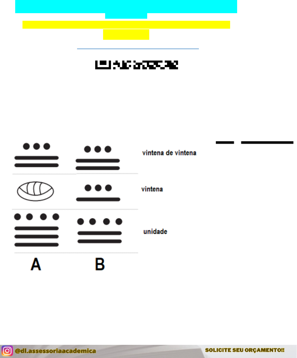 ATIVIDADE 1 - MAT - CÁLCULO NUMÉRICO - 54_2025 Assessoria nos seus TRABALHOS entre em contato com a DL ASSESSORIA E-mail: assessoriaacademicadl@gmail.com · (15) 99143-3322 QUESTÃO 1 As características culturais diferem entre os diversos povos, refletindo-se nas variadas formas de organização social e, também, no desenvolvimento de sistemas de numeração ao longo da história das diferentes civilizações. Os maias, por exemplo, desenvolveram um sistema de numeração vigesimal, i.e., em base 20, que podia representar qualquer número inteiro não negativo com apenas três símbolos. Uma concha representava o zero, um ponto representava o número 1 e uma barrinha horizontal, o número 5. Até o número 19, os maias representavam os números como mostra a Figura 1: Figura 1 - Sistema de numeração vigesimal Fonte: adaptada de: DAVIDSON, L. J. The Maya Numerals. Mathematics in School, v. 3, n. 4, 1974. Números superiores a 19 eram escritos na vertical, seguindo potências de 20 em notação posicional, como mostra a Figura 2, a qual representa o número decimal 3332. Observe que o número que se encontra na primeira posição é multiplicado por 20⁰ = 1, o número que se encontra na segunda posição é multiplicado por 20¹ = 20 e assim por diante. Os resultados obtidos em cada posição são somados para obter o número no sistema decimal. Dessa forma, 3332 = 12 × 20⁰ + 6 × 20¹ + 8 × 20². Figura 2 - Representação de um número no sistema vigesimal Fonte: adaptada de: http://mdmat.mat.ufrgs.br. Acesso em: 5 set. 2025. Um arqueólogo achou o hieroglifo em um sítio arqueológico, mostrado na Figura 3, que contém dois números A e B. Você, futuro matemático, foi convidado a ajudar esse arqueólogo. Com base nessas informações, resolva os itens que seguem: Figura 3 - Números A e B no sistema vigesimal. Fonte: o autor. A) Identifique, em base decimal, os números A e B, em base vigesimal, apresentados na Figura 3. B) Escreva o número A, em base binária. C) Escreva o número B, em base hexadecimal. 16 43 image0.wmf image4.wmf image1.wmf image2.wmf image3.wmf