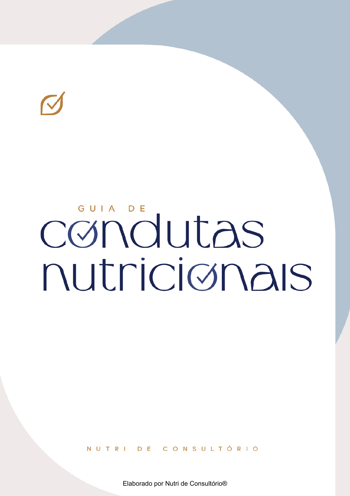 Elaborado por Nutri de Consultório® Olá, Nutri! Eu sei que você atende diversos casos toda semana e que, na maior parte das vezes, eles são bem diferentes uns dos outros, por mais que você já tenha seu nicho bem definido. Sempre tem aquele paciente com determinado objetivo, com alguma condição clínica diferente ou até mesmo aqueles com um conjunto de doenças. Por mais que você tenha estudado bastante antes de começar a atender, pode ser que se sinta insegura em fazer algumas prescrições. Pensando nisso, criamos o Guia de Condutas, uma ferramenta para direcionar suas prescrições, com base em evidências científicas. Esse é um Guia prático, que vai te dar segurança e direção sobre como prescrever calorias, macro e micronutrientes, principais suplementos e interações medicamentosas de diversas doenças e condições clínicas. Aproveite o Guia de Condutas como um instrumento de consulta para a sua prática! Seja bem-vinda ao Guia de Condutas! Elaborado por Nutri de Consultório® Sumário 1. Comece por aqui 04 2. Passo 01 05 3. Passo 02 06 4. Passo 03 06 5. Passo 04 07 6. Emagrecimento, hipertrofia e manutenção de peso 08 7. Emagrecimento 09 8. Hipertrofia 14 9. Manutenção de peso 18 10. Doenças crônicas 21 11. Diabetes Tipo 2 22 15. Anemia ferropriva 2712. Hipertensão arterial 3113. Dislipidemias 3514. Esteatose hepática 39 16. Distúrbios da tireoide 43 17. Hipotireoidismo 44 18. Saúde da mulher 19. Candidíase de repetição 20. Infecção urinária 21. Síndrome dos Ovários Policísticos (SOP) 22. Endometriose 23. Doenças gastrointestinais 24. Refluxo gastroesofágico e gastrite 25. Síndrome do Intestino Irritável (SII) 26. Vegetarianismo e veganismo 27. Tipos de vegetarianismo e veganismo 28. Desempenho esportivo 48 49 52 55 58 63 64 68 73 74 80 Elaborado por Nutri de Consultório® Para descobrir qual desses caminhos seguir, você precisa ter conversado com seu paciente durante a anamnese, em relação ao objetivo que ele deseja, mas também ter isso aliado à avaliação física. Por exemplo: Pode ser que você se depare com um paciente que tem como objetivo a hipertrofia, no entanto, ao fazer a antropometria, você identifica um alto percentual de gordura. Este é um exemplo de que é necessário aliar objetivo e composição corporal, já que nessa situação provavelmente seria mais adequado trabalhar primeiro a redução do percentual de gordura (emagrecimento) e depois ter como objetivo a hipertrofia. Definido o objetivo, você precisa calcular qual será o valor calórico total da dieta (VET). Para calcular o VET, você seguirá os seguintes passos: Antes de começar falando sobre as condições clínicas e recomendações para cada uma delas, precisamos iniciar nossa conduta pensando no objetivo do nosso paciente em relação ao peso. Existem 3 objetivos em relação ao peso: 1) Manutenção de peso 2) Emagrecimento 3) Hipertrofia 1) Calcular a Taxa Metabólica Basal (TMB) 2) Multiplicar pelo Fator Atividade 3) Obter o Gasto Energético Total (GET) 4) Calcular o VET da dieta Elaborado por Nutri de Consultório® Harris - Benedict: Homens: TMB = 66 + (13,8 x P) + (5,0 x A ) - 6,8 x I) Mulheres: TMB = 655 + (9,6 x P) + (1,9 x A) - (4,7 x I) P = peso em kg / A = altura em cm / I = idade em anos Para calcular a TMB, existem três fórmulas principais e a escolha deve ser baseada no estado nutricional atual do seu paciente: Passo 01. Para pacientes eutróficos (IMC: 18,5 a 25kg/m2) Mifflin- St. Jeor: Homens: TMB = (10 x P) + (6,25 x A) – (5,0 x I) + 5 Mulheres: TMB = (10 x P) + (6,25 x A) – (5,0 x I) – 161 P = peso em kg / A = altura em cm / I = idade em anos Para pacientes em sobrepeso ou obesidade (IMC: > 25kg/m2) Tinsley: TMB = (25,9 x MLG) + 284 ou TMB = (24,8 x P) + 10 MLG = Massa livre de gordura / P = peso Para pacientes atletas que possuem alto volume muscular e baixo percentual de gordura: Elaborado por Nutri de Consultório® Neste passo, você precisará determinar o fator atividade. Ele deve estar de acordo com o nível de atividade diária do seu paciente e exercício físico. Obs: Lembre-se que atividade física também engloba todas as atividades diárias, o que inclui trabalho, atividades domésticas, afazeres do dia a dia, etc. Passo 02. Nível de atividade física: Sedentário: 1,2 Leve: 1,4 Moderado: 1,6 Intenso: 1,9 Muito intenso: 2,2 Sedentário: boa parte do dia sentado, sem realizar exercícios físicos. Leve: boa parte do dia sentado, exercício leve, 1-3 dias por semana. Moderado: exercício moderado, prática de esportes 3-5 dias por semana. Intensa: exercício intenso, prática de esportes 6-7 dias por semana. Muito Intensa: atletas profissionais ou treinos de musculação extremamente longos e intensos. Multiplique o valor da TMB pelo fator atividade para encontrar o GET. Para te ajudar neste cálculo, desenvolvemos uma planilha com as fórmulas e valores de FA mencionados acima. Para acessar, basta clicar em: https://docs.google.com/spreadsheets/d/1tnoJ- oXjqrMviwe5lHdG2AoDag9NbqRE7plOYbwRsH8/edit?usp=sharing Passo 03. Elaborado por Nutri de Consultório® https://docs.google.com/spreadsheets/d/1tnoJ-oXjqrMviwe5lHdG2AoDag9NbqRE7plOYbwRsH8/edit?usp=sharing Avaliar o objetivo final da sua prescrição (manutenção de peso ou emagrecimento ou hipertrofia) e fazer a prescrição do VET da dieta baseado no GET. Agora vamos detalhar como deve ser o VET de acordo com cada um dos objetivos. Passo 04. Elaborado por Nutri de Consultório® Elaborado por Nutri de Consultório® O emagrecimento é um objetivo guiado por diferentes justificativas, como questões de saúde (diabetes, obesidade), questões estéticas e também para aumento de performance física. Há várias estratégias que podem ser utilizadas no caso do emagrecimento, mas todas se baseiam no balanço energético negativo, ou seja, um consumo menor de energia do que o gasto. Ao se deparar com um paciente com o objetivo de emagrecimento, você precisa seg