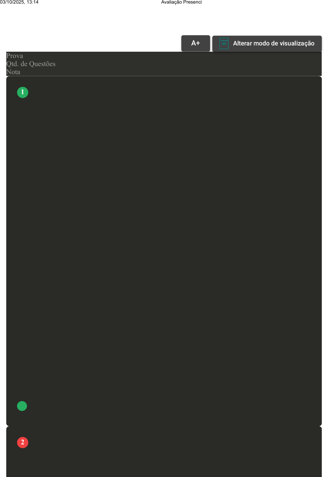 Prova Impressa GABARITO | Avaliação Presencial 1 (AV1) (Cod.:997364) Prova 1389530 Qtd. de Questões 20 Nota 7,00 Segundo Regis Fernandes Oliveira (2008, p. 547), "a Constituição assegurou um amplo elenco de direitos sociais, criou o recurso material necessário à concretização de tais direitos, vinculando as contribuições sociais à área social. As contribuições foram concebidas como 'instrumento', mas devem ser compreendidas como meios para alcançar algum fim ou objetivo, porque não tem sentido conceber algo como instrumento em si mesmo. Nessa linha de raciocínio, as contribuições sociais somente podem ser instituídas para atender às finalidades já consagradas pelos direitos sociais positivados em nossa Constituição Federal atual". Com base nas consequências do inadimplemento das obrigações tributárias da Seguridade Social, analise as sentenças a seguir: I- O inadimplemento das obrigações tributárias da Seguridade Social possui consequências somente administrativas. II- Incorre em crime caso o empregador deixar de lançar mensalmente nos títulos da contabilidade da empresa as quantias descontadas dos segurados quanto as contribuições previdenciárias. III- Poderá ocorrer a interdição para o exercício do comércio, se for sociedade mercantil ou comerciante individual. IV- Constitui crime deixar de repassar à previdência social as contribuições recolhidas dos contribuintes, no prazo e forma legal ou convencional. Assinale a alternativa CORRETA: FONTE: OLIVEIRA, R. F. Contribuições sociais e desvio de finalidade. In: SCHOUERI, L. E. Direito tributário: homenagem a Paulo de Barros Carvalho. São Paulo: Quartier Latin, 2008. A As sentenças I e II estão corretas. B As sentenças I, II e III estão corretas. C As sentenças I e IV estão corretas. D As sentenças II, III e IV estão corretas. Conforme estabelecido em nossa constituição a gestão da Seguridade Social deve ter caráter democrático e descentralizado. Com base na gestão da Seguridade Social, assinale a alternativa CORRETA: A VOLTAR A+ Alterar modo de visualização 1 2 03/10/2025, 13:14 Avaliação Presencial 1 (AV1) about:blank 1/11 Bipartite, com a participação dos trabalhadores e Poder Público. B Tripartite, com a participação dos trabalhadores, empregadores e Poder Público. C Quadripartite, com a participação dos trabalhadores, empregadores, aposentados e Poder Público. D Tripartrite, com a participação dos empregadores, aposentados e Poder Público. A interpretação das leis da Seguridade Social deve ser realizada com vista a garantir a maior proteção social, analisando a realidade concreta e o contexto fático do pretenso beneficiário. Com base nos princípios interpretativos da Seguridade Social, classifique V para as sentenças verdadeiras e F para as falsas: ( ) O Princípio da Retrospectividade prevê que lei previdenciária que verse sobre os pressupostos e condições para a concessão do benefício poderá retroagir para alterar os benefícios concedidos antes de sua vigência ou atribuir efeitos a situações futuras. ( ) O princípio da irrepetibilidade dos benefícios previdenciários determina que é necessária a devolução de parcelas de benefícios recebidos de forma indevida. ( ) Conforme o princípio da proibição da interpretação restritiva sem amparo legal o agente público é proibido de interpretar normas de Seguridade Social de acordo com suas impressões pessoais. ( ) Caso a nova norma previdenciária for de status constitucional, sua aplicabilidade será imediata, gerando efeitos retroativos aos benefícios concedidos antes da sua vigência e eficácia. Assinale a alternativa que apresenta a sequência CORRETA: A F - V - F - V. B V - F - V - F. C F - F - V - V. D F - V - V - F. O financiamento da Seguridade Social é previsto no art. 195 da Constituição Federal enquanto dever imposto à sociedade. Com base na totalidade fonte dos recursos de financiamento da Seguridade Social, assinale a alternativa CORRETA: A Advém somente das contribuições previdenciárias e sociais da iniciativa privada. B Advém dos orçamentos da União, dos estados e dos municípios e das contribuições sociais. C Advém somente das contribuições sociais. 3 4 03/10/2025, 13:14 Avaliação Presencial 1 (AV1) about:blank 2/11 D Advém somente das receitas das contribuições previdenciárias. A Seguridade Social provê o atendimento das necessidades básicas, traduzidas em proteção à família, à maternidade, à infância, à adolescência, à velhice e à pessoa portadora de deficiência. Com base no componente da Seguridade Social, assinale a alternativa CORRETA: A Assistência Social. B Previdência Social. C Proteção Social. D Saúde. A Declaração Universal dos Direitos Humanos de 1948 dispõe sobre o direito à Seguridade Social em seu artigo 25, enquanto uma exigência elementar de proteção às classes ou grupos sociais mais fracos ou necessitados, devendo ser observada e assegurada por todos os Estados. Com base na Seguridade Social, classifique V para as sentenças verdadeiras e F para as falsas: ( ) Sistema de proteção social que visa o estabelecimento e manutenção de uma ordem de bem-estar social. ( ) Sistema que exige o caráter contributivo em todos seus serviços e benefícios como forma de manter o equilíbrio financeiro e atuarial do sistema. ( ) Caracterizada por uma gestão democrática, descentralizada, por uma gestão quadripartite. ( ) Conjunto de políticas públicas governamentais e ações da sociedade civil voltadas ao desenvolvimento de direitos sociais Assinale a alternativa que apresenta a sequência CORRETA: A F - V - F - V. B V - F - V - V. C F - V - V - F. D F - F - V - V. O sistema da Seguridade Social é organizado pelo Poder Público, sendo gestado com base no princípio da diversidade da base de financiamento que diz respeito à multiplicidade de agentes responsáveis pelo custeio da Seguridade Social. A par