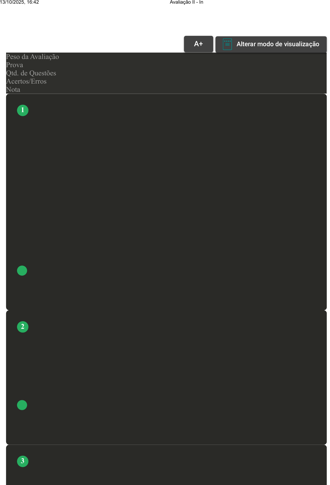Prova Impressa GABARITO | Avaliação II - Individual (Cod.:1027219) Peso da Avaliação 2,00 Prova 94896280 Qtd. de Questões 10 Acertos/Erros 9/1 Nota 9,00 Os sistemas defensivos escolhidos durante uma partida de handebol dependem de inúmeros fatores para obterem êxito. Após a perda da posse de bola, seja após um ataque malsucedido, ou até mesmo um contra-ataque adversário, é fundamental que a equipe retorne o mais rápido possível para estruturação da defesa. De acordo com as fases defensivas, classifique V para as opções verdadeiras e F para as falsas: ( ) Apoio. ( ) Retorno. ( ) Defesa temporária. ( ) Organização da defesa. ( ) Defesa em sistemas. ( ) Investida. Assinale a alternativa que apresenta a sequência CORRETA: A F - V - V - F - V - F. B V - V - F - V - V - F. C F - V - V - V - V - F. D F - F - V - V - F - V. As duas principais competições internacionais do handebol e mais importantes no cenário esportivo da modalidade são os Jogos Olímpicos e o Campeonato Mundial. Embora a hegemonia nestas competições seja de seleções europeias, o Brasil já esteve no lugar mais alto do pódio em uma oportunidade. Sobre o exposto, assinale a alternativa CORRETA: A Campeão mundial em 2016 com a seleção masculina. B Campeão olímpico em 2012 com a seleção feminina. C Campeão mundial em 2013 com a seleção feminina. D Campeão olímpico em 2008 com a seleção masculina. No que concerne ao handebol, temos várias questões associadas. Em relação ao sistema de defesa dessa modalidade, qual deles utiliza um defensor avançado, denominado "bico"? VOLTAR A+ Alterar modo de visualização 1 2 3 13/10/2025, 16:42 Avaliação II - Individual about:blank 1/4 A 3 x 3. B 5 x 1. C 4 x 2. D 6 x 0. Jogadores de defesa e técnicos de equipes de handebol devem ter a capacidade de leitura do jogo, para adaptarem o sistema defensivo e as ações defensivas individuais levando em consideração a estratégia e a qualidade de jogadores adversários. Inúmeros sistemas defensivos podem ser adotados. Sobre as características do sistema defensivo, associe os itens, utilizando o código a seguir: I- Sistema 4:2. II- Sistema 3:3. III- Sistema 6:0. ( ) Cada jogador é responsável por um pequeno espaço; é um sistema menos cansativo; dificulta as penetrações adversárias. ( ) Ocupar a zona central da defesa com mais jogadores; inibir arremessos da linha de nove metros; os dois jogadores da segunda linha defensiva podem ocupar qualquer posição. ( ) Principal objetivo é dificultar a circulação da bola da equipe adversária; recuperar a posse de bola; oportunizar a saída rápida para o contra-ataque. Assinale a alternativa que apresenta a sequência CORRETA: A II - I - III B III - I - II. C III - II - I. D I - II - III. No que concerne ao handebol, temos várias questões associadas. O que é a "posição base defensiva" nessa modalidade? A É o escopo do jogador ao lançar a bola. B É a posição que o jogador adota antes ou depois de realizar uma ação defensiva. C É a ação que o defensor realiza para limitar ou controlar o adversário. D É a forma de mudar de um lugar para outro. 4 5 Revisar Conteúdo do Livro 13/10/2025, 16:42 Avaliação II - Individual about:blank 2/4 Para realizar uma ação defensiva, o defensor desenvolve alguns movimentos, chamados também de fundamentos técnico-táticos individuais defensivos. Sobre esse tema, assinale a alternativa CORRETA: A Ataque, altura da bola e empunhadura. B Arremesso, progredir em relação ao gol. C Posição básica, deslocamento, bloqueio e marcação. D Concentração, ritmo e retorno. A marcação em proximidade é utilizada para certa finalidade.Qual é essa finalidade? A Evitar que o contra-ataque. B Evitar que o atacante perca a bola. C Evitar que o atacante lance a bola. D Evitar que o atacante receba a bola. Certa movimentação ofensiva no handebol acontece quando o jogador está de posse de bola, efetua um passe para o seu companheiro de equipe e imediatamente se desmarca de seu oponente para receber a bola outra vez. Qual é esse tipo de movimentação? A Tabela. B Engajamento. C Bloqueio. D Cortina. O sistema de jogo corresponde à formação escolhida por uma equipe e à distribuição dos jogadores em posições específicas para conseguirem objetivos defensivos e ofensivos. Esse posicionamento, com as ações coordenadas, contribuem para o êxito na tática escolhida pelo treinador. A tática pode ser realizada de dois modos: individual e coletiva. Com relação aos dois modelos de tática, analise as sentenças a seguir: I- A tática coletiva envolve a coordenação entre dois ou mais jogadores. II- A tática individual é a escolha do gesto apropriado por um jogador em cada momento do jogo. III- A tática individual corresponde a ações ofensivas, enquanto a tática coletiva corresponde a ações 6 7 8 9 13/10/2025, 16:42 Avaliação II - Individual about:blank 3/4 defensivas. Assinale a alternativa CORRETA: A Somente a sentença II está correta. B As sentenças I e II estão corretas. C As sentenças II e III estão corretas. D As sentenças I e III estão corretas. Diferentes tipos de marcação podem ser realizados durante uma única partida, levando em consideração a qualidade dos jogadores da equipe adversária e também dos jogadores defensores. Sobre a marcação individual em 1/3 da quadra, classifique V para as sentenças verdadeiras e F para as falsas: ( ) Conhecido também como "defesa individual por aglomeração". ( ) É o tipo de defesa mais fechado. ( ) Os jogadores se posicionam aproximadamente até os 11 metros da linha de fundo. ( ) Os jogadores ficam distribuídos por toda a quadra. Assinale a alternativa que apresenta a sequência CORRETA: A F - V - F - V. B V - F - V - V. C V - V - V - F. D V - F - V - F. 10 Imprimir 13/10/2025, 16:42 Avaliação II - Individual about:blank 4/4