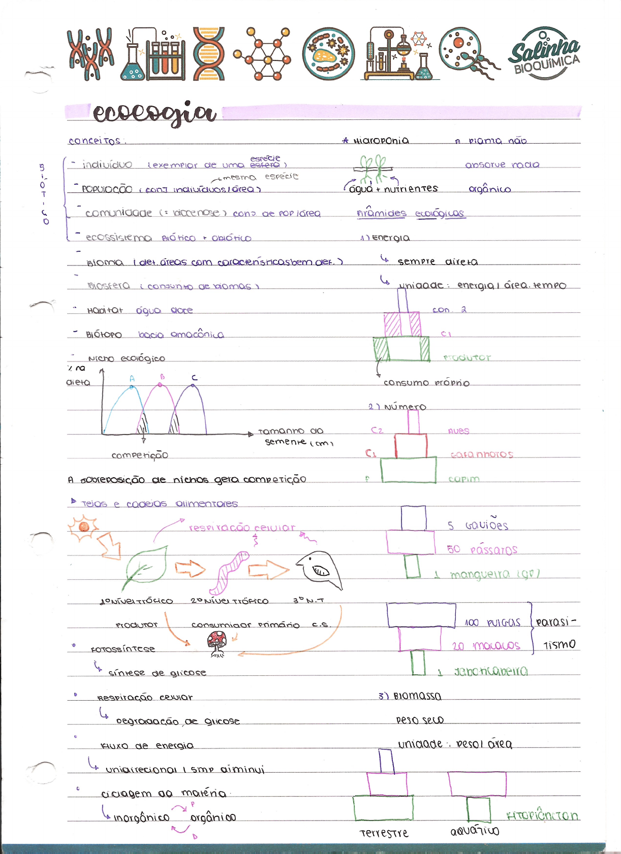 Salinha BIOQUÍMICA Hiaroponia A planta S - indivíduo de uma estera) absorve nada :- mesma especie 0 - conj T + orgânico - comunidade POP lorea - ecossistema + Energia - Bioma det areas com sempre aireta Biosfera i consunto de biomas energia area. tempo Habitat doce con 2 - bacia Nicho produtor % na A B C consumo Número do C2 Aves semente (cm) competicao C₁ A de nichos gera capim e alimentares respiração celular 5 Gavioes 50 passaros 1 mangueira 20 Niver N.T consumiaor C.S 100 parasi- 20 macacos sinrese de glicose 1 Respiração celviar 3) Biomassa glicose peso seco de energia unidade pesol area uniairecional smp aiminui ciclagem 00 inorgônico orgânicoSalinha BIOQUÍMICA 1 crescimento niena N+ I estagnação comensalismo próprio: comer M+ESalinha BIOQUÍMICA associados - - estura - Nicho: no e IV estura sua nos gradientes ambientais Terra I.V. nicho de 1 Gases CH4 principal principal emitido nicho de nichos ser humano ) Renováveis Planta absorve - canibalismo - da de orônio obs. reprodutivo formado normal Aumenta 0 sucesso reprodutivo de ambos OS parentais CFC's aceleram a destruição - ciclo do bases amensalismo produção de substâncias N2 HQ10 1 3 NHu+ em 2 ciceos agua) cicios do C e do 0 1. Fixação do N: O2 respiração ATP carbono Que havia sido Nitrobacter aa a ser liberado pseudomonasSalinha BIOQUÍMICA GIRD 4- resistência do meio homem Excreção medicina predios do associado: [O2 diss. alimento DBO verde sempre Associar a você over uma legum cresce impactos ambientais - ácida combustiveis ) ac. N presente na em a combusião Formando de nitrogênio HNO3 a contaminação a codo de espécies potencial invasor alta Taxa reprodutiva Ausência de competidores e de naturais Fulica 00 Limnoperma aqua de astroSalinha BIOQUÍMICA sistema coração e circulação sai do coração eferentes sistêmica veias: aferentes arréria veia pulmonar capilares: Trocas mitral (bicuspide) vasos pulmonar corte transversal veia cava VD, AP, VP, AD wz 0 VE, corpo, AD we arco Túnica (Trocas) arco direito: aves médio elásticas do coração e musculatura lisa) 00 miocardio isanue arterial pressão coronárias coronaria Miocardio Tecido conjuntivo denso (resistência) infarto ponte de sarena nao do 0 por ser venoso safena (desvio) controle do ritmo contração mus_ N. sinoatrial imarca- pressão N. atrioventricu- veias Área iar venosas levitar de HISS varizes vias anormas Ramo Ramo esquerdo 1 REFIUXO trombo+11 Salinha BIOQUÍMICA - ná hemácias - unidirecional P. interior) P. arterial P. ventriculo V. Abertura semilunares das Abertura AV Fundo celular veia caua un TCD8 unf. JAD mara 1 veia HELPER aorta 19 exposição - un TCD4 memória corpo caga 2x in B de do sangue no cap mula di reta mente as PH- pressão de memória, estimu Fluxo PC- pressão lando imeaiatamente EXT. EXT. venosa P PIOT do B e TCD8 sangue PH > Pc PHSalinha BIOQUÍMICA de exames Expansão donal e memória Ja ac pacientes IgM A - - nunca exposto E! B + - aguda combate 'a me- + + infecção ou recente de A - + Imune e a oricem Tecido obs. ausência de Fibras 85 % plasma 17% proteínas, 91,5% água, 1% plaquetas e leucócitos 45% 01 SUP. Forma de controle da pressão arterial Auscuta da (MAX) 120 mm Hg da (MIN) so Hg p que - Mecanismo de controle passou sangue NO Renal: 1 de saisSalinha BIOQUÍMICA sistema digestório 1 Boca 5 JUP. de contato é sabores para absorver saliva íleo máximo - - sais minerais - Amilase salivar Absoraão suco entérico microvilosidade vasos nao por ser B palato more a Anexas de não Ter de A) presenca de alimento produção de Bile amido B) pâncreas HCO POIS suco II a Quebrou a amilose in reace cl enzimas digestivas + amido awa + amido + saliva iodo (pH 2 3 condução 6 Grosso 4 Gastricas Absorção de e sais principals Formação do 6010 recal pepsing Diarreia coisas Q mai Hel Hel pepsing mucosas muco+11 Salinha BIOQUÍMICA normonal suco Gastrina secreting INT. suco Deloado pâncreas 1 (parbo e lip) Bile pâncreas biliar secreção de inipidor acordo com ESTÍMUIO concorda com a de sal a doce Tem # [] para cada sabor?Salinha BIOQUÍMICA sistema dos corpo +30 de Ranvier 0 do nada Bainna de : - 55 limiar SNP ae -70 SNC: oligoaenarócito denissii(RER) axônio (mantido pela bomba canais de - de Na canais de K+ in induz entre as 01 de neurotransmissores a de (toxina a liberação de + + + + + + + + A B + + + + + + + + Bomba de K+ + Na + + + + + + + dirusão A + 4 B T T + + + + + + + + + + + + + + Na+ 7 + + do + + + of + + Na bombo memb. cia ATP. de 2 : 3 + rechamento dos canais de Na+ [Na+ K+ a nervoso diference ae potencial+11 Salinha BIOQUÍMICA Jistema ADH massa motor Retransmissão para 0 córtex (sensoriais) seae ( sexuais, encéraio muscular, postura corporal comunicação do com central cooraenação corporal laves ao por controle importante medula espinnal comunicação penrena ponte de estriados essue- nora e Tronco (acetiscolina) lico de Lisos dorsal (sensitiva) Branca dos sensitivo - inem sempre) músculo ventral - motorSalinha BIOQUÍMICA conjuntivo - - matriz PREENCHIMENTO substância Fundamental (SFA) IGE sais, aminoáciaos e ÁG. HIALURONICO cricosa minocricanos B hep. proteoglicanos - plasmócitos RER adesivas anticorpos gel de Fibras TCPD (I): Resistência Frouxo DENSO elasticidade EPIDERME ( conexão Modelado esparsas DERME TCPD N E S S Resistência à Lipoblastos Tração em 1 condroblastos multidirecional direção B- Adiposo GL. Brancos - adiposas AMARELO A- Teciao propriamente dito (TCPD ): unilocular marrom - mesenquimatosas Reserva energética (+) Térmica de (-) isolante elétrico calor - macrófacos Lisossomos Modelomento corpo DA CRIANGA Hormonal LEPTINA EM LUGARES FRIOS - mastócitos calergia DIAPEDESE contra ques bainna de mielina BRONQUIOCONSTRICAO (choqueSalinha BIOQUÍMICA D- - TECIDO - Avascular (exceção) - vascularizado e inervado por dirusão do TCPD do - pericônario - condroblasto (+) PROD. conarócito (-) - cartilagem: - ossos: Hialina: Nariz, ossos (epir