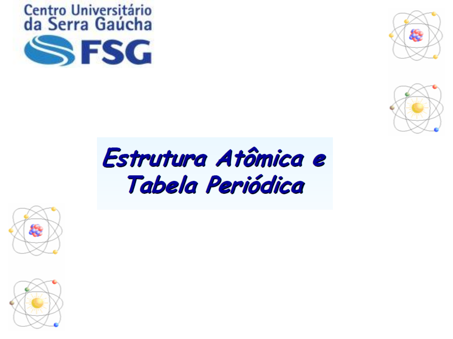 Profa. Luciane Calabria Estrutura da Matéria Átomo Teorias atômicas: * John Dalton (1807) * J. J. Thomson (1897) * Ernest Rutherford (1908) * Niels Bohr (1913) O Átomo Nuclear Teorias Atômicas: Niels Bohr (1885-1962) Teorias Atômicas: Comparação entre as teorias Orbitais: Schrodinger (1887-1961) Distribuição de Elétrons: Diagrama de Linus Pauling (1901-1994) Números Quânticos Momento de spin Conceitos Fundamentais Tabela Periódica Propriedades Periódicas