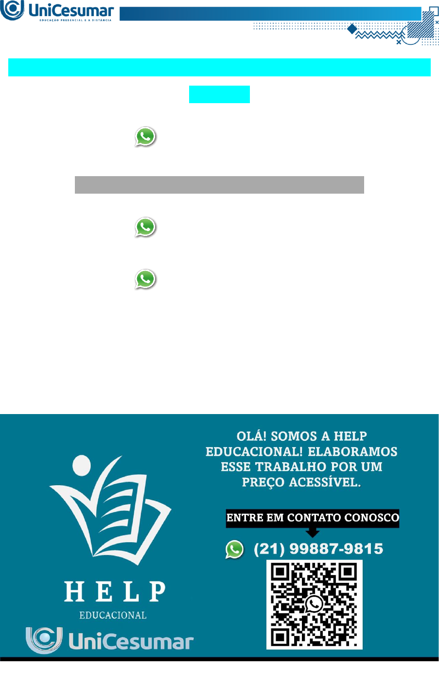 MAPA – ENF - FUNDAMENTOS DE GENÉTICA HUMANA - 54_2025 (21) 99887-9815 ASSESSORIA NOS SEUS TRABALHOS (21) 99887-9815 (21) 99887-9815 Texto introdutório Problemas de saúde, síndromes e doenças podem ser causadas por alterações cro- mossômicas e mutações de DNA. As síndrome causadas por alterações/aberrações cromossômicas podem ser do tipo numérica, quand4o existe uma cópia excedente ou ausência de um cromossomo autossômico ou sexual. Dentre as síndromes causadas por alterações numéricas está a síndrome de Down, ou trissomia do cromossomo 21. As alterações também podem ser do tipo estrutural, quando há alteração na estru tura do cromossomo, como por exemplo a deleção de partes do DNA. Um exemplo de síndrome causada por alteração na estrutura do cromossomo é a síndrome de cri-du-chat, conhecida como miado do gato, causada pela deleção de parte do braço curto de uma dos cromossomos do par 5 Já as mutações de DNA podem ser causadoras de doenças, ou serem imperceptí- veis. As mutações de DNA geram variabilidade genética, sendo que essas muta- ções podem mudar alelos. Dessa forma, temos doenças como por exemplo a acata- lasia, ou acatelasemia, ou ainda doença de Takahara. Essa doença é caracterizada pela deficiência na produção da enzima catalase, resultando na deficiência da ativi- dade enzimática nos eritrócitos. Na maioria dos casos é assintomática, no entanto, podem estar presentes ulcerações orais seguidas de gangrena A acatalasemia é causada por um gene autossômico recessivo, e expressa apenas quando em homozigose. Fonte: o professor. Situação de aprendizagem Ao estagiar em um hospital, você, participa de uma equipe multidisciplinar que está acompanhando um pré-natal, em que há particularidades a serem analisadas. O médico responsável pela gestante, apresenta a vocês o caso dessa mulher. Caso A gestante com aproximadamente 14 semanas de gravidez, durante a anamnese ci- tou que em sua família há a presença de acatalasia Sabendo dessa informação, o médico solicitou o aconselhamento genético para descobrir a chance de a criança apresentar acatalasia, além disso, foi solicitado um exame cariotípico do feto, devido a uma pequena suspeita de síndrome cromossô- mica, gerada devido uma observação durante o ultrassom morfológico. Exame 1: aconselhamento genético Para o aconselhamento genético foram coletados os seguintes dados. Gestante: não apresenta acatalasia, no entanto, sua mãe apresenta acatalasia. O pai da gestante, assim como toda família paterna não apresentam acatalasia, sendo todos homozigotos dominantes para o caráter. Genitor (pai): não apresente acatalasia, no entanto, em um exame realizado quando adolescente, foi identificado que é heterozigoto para o caráter. Exame 2: cariotipagem fetal Após cariotipagem do feto, foi identificado o seguinte cariótipo. Fonte: www.shutterstock.com AGORA RESPONDA 1- Sobre o aconselhamento genético: a) Qual é o genótipo da gestante e do genitor(pai) para a acatalasia? b) Sabendo do genótipo dos pais, qual é a probabilidade da criança apresentar aca- talasia? Realize os cálculos de genética mendeliana e apresente-os no quadro de Punnett. c) Em uma próxima gravidez, qual é a probabilidade de nascer uma criança sem acatalasia? 2- Sobre a análise do cariótipo: a) Analisando o resultado do cariótipo fetal, qual é sua conclusão? A criança apre- senta alguma síndrome? Justifique sua resposta e apresente as características da síndrome diagnosticada. b) Qual o sexo da criança apresentado no cariótipo? c) A síndrome diagnosticada pode ser encontrada no sexo masculino e no sexo fe- minino? Justifique sua resposta. Orientações importantes: 1. Leia o livro da disciplina. 2. Assista às aulas conceituais e ao vivo. 3. Baixe o "Formulário Padrão do MAPA", disponível no ambiente Studeo, na pasta “Material da Disciplina”, e preencha corretamente todos os campos solicitados. 4. Anexe seu “Formulário Padrão do MAPA” respondido, no espaço específico da atividade MAPA. 5. Antes de clicar em "Finalizar" certifique-se que o arquivo anexado é o correto. 6. Lembre-se de clicar em “Finalizar” para efetivar sua participação. 7. Caso utilize materiais de outros autores, não se esqueça de referenciar correta- mente, pois o uso de trechos ou textos não referenciados será considerado plágio. 8. A equipe de professores mediadores está à sua disposição para o atendimento das dúvidas por meio do “Fale com o Mediador” em seu Studeo. Aproveite essa fer- ramenta! Bons estudos, sucesso! Boa Atividade! OLÁ! SOMOS A HELP EDUCACIONAL! ELABORAMOS ESSE TRABALHO POR UM PREÇO ACESSÍVEL. ENTRE EM CONTATO CONOSCO (21) 99887-9815