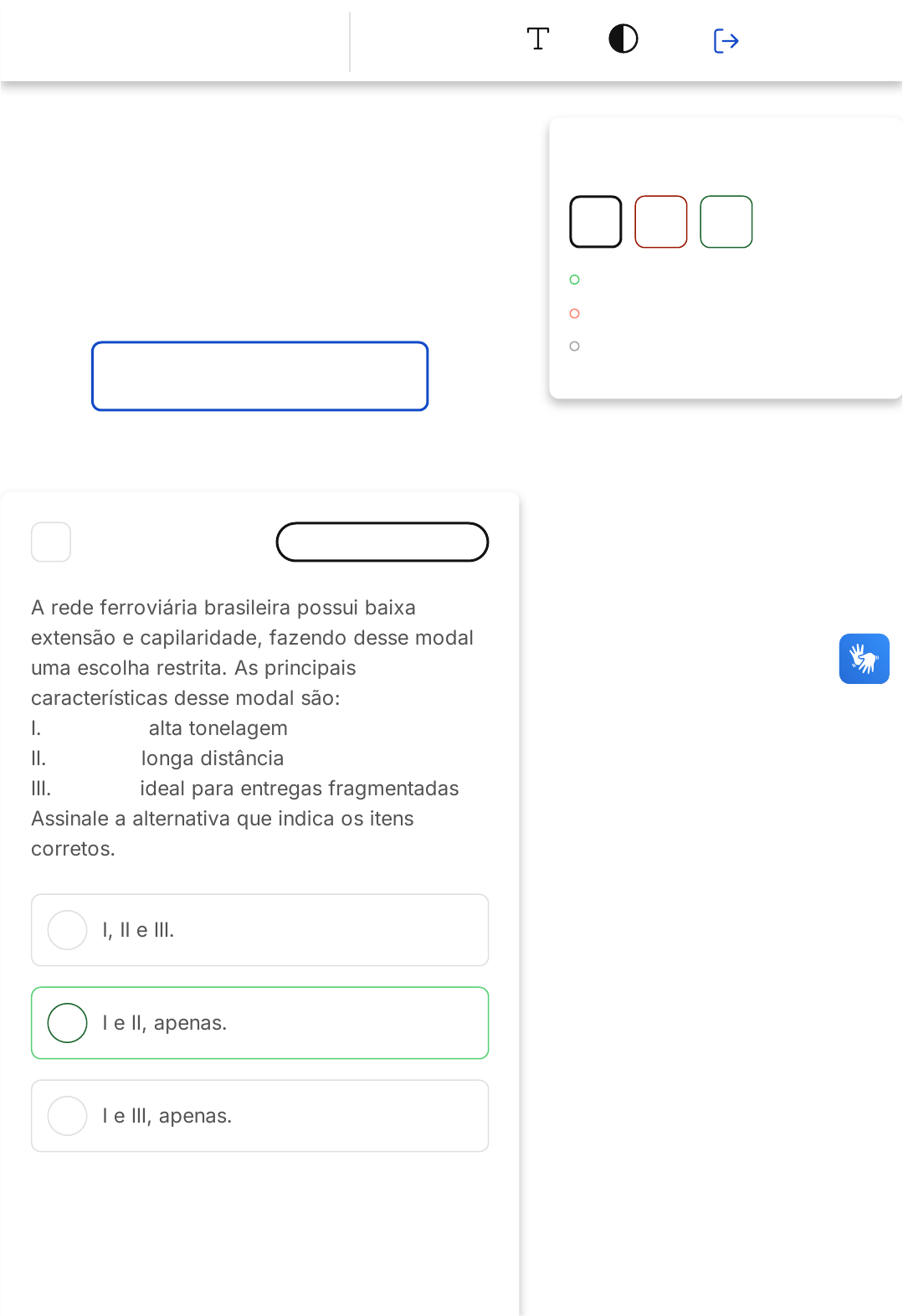 Você acertou 2 de 3 questões Verifique o seu desempenho e continue treinando! Você pode refazer o exercício quantas vezes quiser. Verificar Desempenho A B C 1 Marcar para revisão A rede ferroviária brasileira possui baixa extensão e capilaridade, fazendo desse modal uma escolha restrita. As principais características desse modal são: I. alta tonelagem II. longa distância III. ideal para entregas fragmentadas Assinale a alternativa que indica os itens corretos. I, II e III. I e II, apenas. I e III, apenas. Questão 1 de 3 Corretas (2) Incorretas (1) Em branco (0) 1 2 3 Lista de exercícios Gestão De… Sair 19/08/2025, 22:12 estacio.saladeavaliacoes.com.br/exercicio/68a520987c9b235dfb0ba721/gabarito/ https://estacio.saladeavaliacoes.com.br/exercicio/68a520987c9b235dfb0ba721/gabarito/ 1/4 D E II e III, apenas. II, apenas. Resposta correta Parabéns, você selecionou a alternativa correta. Confira o gabarito comentado! Gabarito Comentado As principais características do modal ferroviário: · Altamente adequado para transportes de alta tonelagem em grandes distâncias; · Transporte que não funciona muito bem com entregas muito granulares. Deve haver altas concentrações de produtos em sua origem e em seu destino; · Entre as cargas típicas carregadas, incluem-se minérios, fertilizantes e grãos. Quase 50% das exportações brasileiras estão concentradas em seis produtos: minério de ferro, petróleo bruto, soja, café, carne e açúcar. 2 Marcar para revisão O Brasil possui um padrão de utilização de modais de transporte de mercadorias bastante peculiar. Apesar do Brasil utilizar intensamente o modal rodoviário, é sabido que este modal é mais barato em distâncias de até: 19/08/2025, 22:12 estacio.saladeavaliacoes.com.br/exercicio/68a520987c9b235dfb0ba721/gabarito/ https://estacio.saladeavaliacoes.com.br/exercicio/68a520987c9b235dfb0ba721/gabarito/ 2/4 A B C D E 300km. 500km. 250km. 400km. 350km. Resposta incorreta Opa! A alternativa correta é a letra A. Confira o gabarito comentado! Gabarito Comentado Nota-se que o modal rodoviário é o mais barato para distâncias de, no máximo, 300km. A partir dessa quilometragem, começa a compensar investir tempo carregando trens ou navios, pois eles possuem uma capacidade de carga consideravelmente maior, além de não passarem por problemas, como, por exemplo, trânsito intenso. 3 Marcar para revisão O modal aéreo de transporte de mercadorias é bastante utilizados para itens específicos. Esse modal é mais adequado nas seguintes situações: 19/08/2025, 22:12 estacio.saladeavaliacoes.com.br/exercicio/68a520987c9b235dfb0ba721/gabarito/ https://estacio.saladeavaliacoes.com.br/exercicio/68a520987c9b235dfb0ba721/gabarito/ 3/4 A B C D E Produto de alto valor agregado. Produtos com alto volume. Produtos com alto peso. Produtos de transporte contínuo. Entregas granuladas. Resposta correta Parabéns, você selecionou a alternativa correta. Confira o gabarito comentado! Gabarito Comentado Modal aéreo possui como principais características: · Capacidade de mover rapidamente cargas de pequeno volume e alto valor agregado em grandes distâncias. · Alto custo de frete é compensado pela redução nos estoques. · Permite colocar pedidos de emergência. · Cargas típicas: Correspondência, roupas, produtos de telecomunicação, equipamentos fotográficos, cogumelos e flores. 19/08/2025, 22:12 estacio.saladeavaliacoes.com.br/exercicio/68a520987c9b235dfb0ba721/gabarito/ https://estacio.saladeavaliacoes.com.br/exercicio/68a520987c9b235dfb0ba721/gabarito/ 4/4