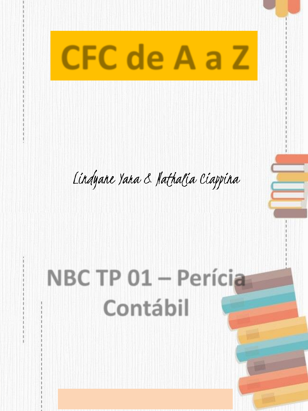 CFC de A a Z PREPARAÇÃO INTELIGENTE PARA O EXAME DE SUFICIÊNCIA Prof. Gabriel Rabelo Mapa Mental NBC TP 01 – Perícia Contábil Matéria: Perícia Contábil + Robson Giovani Costa Gonçalves - leticiaegiovani2014@gmail.com - CPF: 611.974.242-53 NBC TP 01 - Perícia Contábil Tipos de Perícia Perícia Judicial Poder Judiciário Perícia Extrajudicial Arbitral Lei de arbitragem Estatal Controle do Estado Voluntária Espontânea Exame Pessoas, animais e coisas Vistoria Bens móveis ou coisas (danos) Avaliação Valor Procedimentos Periciais V I A M C E I T A Vistoria Diligência Indagação Entrevista Arbitragem Determinação de valores Mensuração Quantificação física Certificação Atestar informação Exame Análise Investigação Pesquisa do que esta oculto Testabilidade Avaliação Estabelecer valor Tipos de Quesito Suplementar Durante a diligência Fatos novos ou detalhamento de situações nos quesitos iniciais Honorários adicionais Esclarecimento Após a diligência Obscuridade, incompletudes, contradições Divergências entre perito e assistente Pode não ter novo hononários Cronograma Pericial Diligências a serem realizadas; Deslocamentos; Necessidade de trabalho de 3°; Pesquisas que serão feitas; Elaboração de cálculos e planilhas; Respostas aos quesitos; Prazo para apresentação do laudo e/ou oferecimento do parecer; Termo de Diligência É o instrumento por meio do qual o perito solicita documentos, coisas, dados e informações necessárias à elaboração do laudo pericial contábil e do parecer técnico-contábil. Identificação Diligenciado Partes interessados Perito Indicação O que será elaborado Documentos, coisas, dados Local para a exibição dos documentos, coisas Local, Data e Assinatura Mapa Mental - NBC TP 01 - Perícia Contábil - Atualizado Robson Giovani Costa Gonçalves - leticiaegiovani2014@gmail.com - CPF: 611.974.242-53 NBC TP 01 - Perícia Contábil 1. Tipos de Perícia 1.1. Perícia Judicial 1.1.1. Poder Judiciário 1.2. Perícia Extrajudicial 1.2.1. Arbitral 1.2.1.1. Lei de arbitragem 1.2.2. Estatal 1.2.2.1. Controle do Estado 1.2.3. Voluntária 1.2.3.1. Espontânea 1.3. Modalidades de Perícia 1.3.1. Exame 1.3.1.1. Pessoas, animais e coisas 1.3.2. Vistoria 1.3.2.1. Bens móveis ou coisas (danos) 1.3.3. Avaliação 1.3.3.1. Valor 2. Procedimentos Periciais 2.1. V I A M C E I T A 2.2. Vistoria 2.2.1. Diligência 2.3. Indagação Robson Giovani Costa Gonçalves - leticiaegiovani2014@gmail.com - CPF: 611.974.242-53 2.3.1. Entrevista 2.4. Arbitragem 2.4.1. Determinação de valores 2.5. Mensuração 2.5.1. Quantificação física 2.6. Certificação 2.6.1. Atestar informação 2.7. Exame 2.7.1. Análise 2.8. Investigação 2.8.1. Pesquisa do que esta oculto 2.9. Testabilidade 2.9.1. Verificação Elementos 2.10. Avaliação 2.10.1. Estabelecer valor 3. Tipos de Quesito 3.1. Suplementar 3.1.1. Durante a diligência 3.1.2. Fatos novos ou detalhamento de situações nos quesitos iniciais 3.1.3. Honorários adicionais 3.2. Esclarecimento 3.2.1. Após a diligência 3.2.2. Obscuridade, incompletudes, contradições 3.2.3. Divergências entre perito e assistente Robson Giovani Costa Gonçalves - leticiaegiovani2014@gmail.com - CPF: 611.974.242-53 3.2.4. Pode não ter novo hononários 3.2.5. Cronograma Pericial 3.2.5.1. Diligências a serem realizadas; 3.2.5.2. Deslocamentos; 3.2.5.3. Necessidade de trabalho de 3°; 3.2.5.4. Pesquisas que serão feitas; 3.2.5.5. Elaboração de cálculos e planilhas; 3.2.5.6. Respostas aos quesitos; 3.2.5.7. Prazo para apresentação do laudo e/ou oferecimento do parecer; 4. Termo de Diligência 4.1. É o instrumento por meio do qual o perito solicita documentos, coisas, dados e informações necessárias à elaboração do laudo pericial contábil e do parecer técnico- contábil. 4.2. Identificação 4.2.1. Diligenciado 4.2.2. Partes interessados 4.2.3. Perito 4.3. Indicação 4.3.1. O que será elaborado 4.3.2. Documentos, coisas, dados 4.3.3. Local para a exibição dos documentos, coisas 4.4. Local, Data e Assinatura Robson Giovani Costa Gonçalves - leticiaegiovani2014@gmail.com - CPF: 611.974.242-53