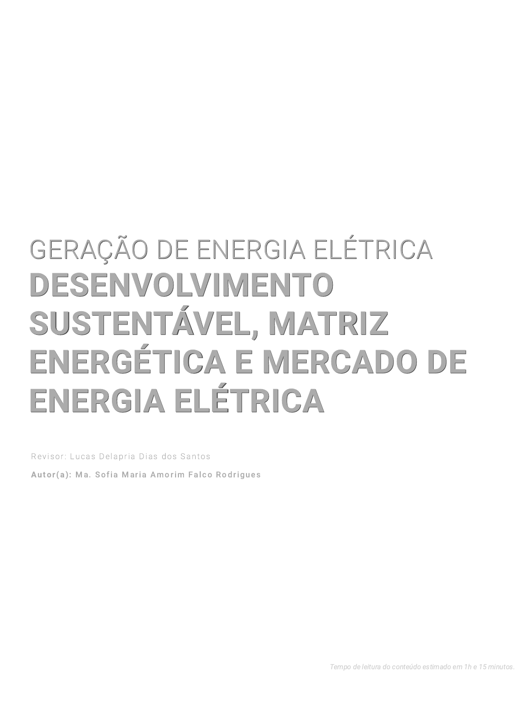 GERAÇÃO DE ENERGIA ELÉTRICAGERAÇÃO DE ENERGIA ELÉTRICA DESENVOLVIMENTODESENVOLVIMENTO SUSTENTÁVEL, MATRIZSUSTENTÁVEL, MATRIZ ENERGÉTICA E MERCADO DEENERGÉTICA E MERCADO DE ENERGIA ELÉTRICAENERGIA ELÉTRICA R ev i s o r : Lu c a s D e l a p r i a D i a s d o s S a n to s Au to r ( a ) : M a . S o f i a M a r i a Am o r i m Fa l c o R o d r i g u e s Tempo de leitura do conteúdo estimado em 1h e 15 minutos. Introdução Estudante, o entendimento de todos os processos e premissas que envolvem a geração de energia elétrica parte, frequentemente, de alguns estudos iniciais. Dessa forma, neste material, vamos aprender a aliar o desenvolvimento sustentável, na prática, aos empreendimentos da geração, já em operação ou que serão desenvolvidos. Em seguida, veremos mais detalhes a respeito do estabelecimento de matriz energética, em especial o caso brasileiro. Por fim, vamos compreender como se estabelece o mercado de energia elétrica e quais são os ambientes e as premissas da comercialização, considerando, inclusive, as diferenças do modelo anterior do setor elétrico brasileiro, que vigorou até o ano de 2004, dando lugar ao novo modelo, vigente até hoje. Vamos lá? Bons estudos! A energia elétrica desempenha um papel fundamental na existência humana. Mais ainda, facilmente observa-se que essa relação passou a ser, nos últimos anos, um dos pilares do próprio desenvolvimento humano. Assim, estudar os meios de geração, transmissão e distribuição da energia elétrica também é essencial para a compreensão do desenvolvimento da sociedade. Nesta disciplina, teremos como foco a geração, mas, em outro momento, você terá a oportunidade de compreender mais detalhes de como se estabelecem os sistemas de transmissão e distribuição da energia elétrica. A atenção ao desenvolvimento sustentável, foco desta seção, surge da preocupação mundial quanto ao aumento da população, ao processo de industrialização e a problemas, em alguns casos inerentes, como a poluição e o esgotamento dos recursos naturais. O conceito de desenvolvimento sustentável formulado pela Comissão Brundtland tem origem na década de 1970, no século passado, que se caracterizou por um grande pessimismo sobre o futuro da civilização como a conhecemos. [...] Só mudanças Desenvolvimento sustentável drásticas no estilo de vida da população permitiriam evitar um colapso da civilização, segundo essas previsões (GOLDEMBERG, 2019, p. 6). Dessa forma, como você pode imaginar, as premissas e necessidades passaram a envolver, inclusive, a geração de energia elétrica. Isso só foi possível a partir das mais diversas definições e contextualizações da energia, bem como sua correlação com as atividades desempenhadas pelos seres humanos, no Brasil e no mundo, e o estudo das fontes inesgotáveis de energia, das relações de consumo, das tendências e dos problemas do sistema energético, de maneira geral. A seguir, veremos mais detalhes sobre o papel da energia elétrica na sociedade e exemplos da aplicação do desenvolvimento sustentável nos empreendimentos mais recentes de geração. Energia na sociedade A energia — tanto elétrica quanto em outra forma — pode ser sintetizada, conceitual e matematicamente, por meio da relação da potência no tempo. Para a potência elétrica, tem-se que: A energia elétrica, por sua vez, é dada por: A unidade convenientemente utilizada é o kWh, expressando a quantidade de energia na ordem de 10³ e no período de horas, como no cálculo do consumo mensal de um consumidor por parte da concessionária. O desenvolvimento do homem primitivo, há pelo menos um milhão de anos, até os dias de hoje (homem tecnológico) mostra uma quantidade cada vez mais crescente e necessária de energia, o que possibilita, inclusive, a separação de períodos históricos distintos para análise. Além disso, também é conveniente distinguir possíveis estágios de desenvolvimento, incluindo o avanço industrial e tecnológico, possíveis diferenciações entre a habitação rural e urbana, entre outros critérios. É fato, então, que o consumo de energia, não só elétrica, está fortemente atrelado ao desenvolvimento humano e continuará sendo. Isso torna o desenvolvimento sustentável, nesse âmbito, uma exigência legal, quando lidamos diretamente com as regulamentações do setor elétrico de um país para novos empreendimentos de geração, por exemplo. As fontes inesgotáveis de energia exercem, então, um papel primordial e decisivo na produção de energia elétrica, atrelada ao desenvolvimento sustentável, como é o caso da energia solar, energia radiante emitida pelo sol. Ocorrem processos de atrito, degradação térmica e vários outros, e, ao fim, a energia desses tipos de fonte é disponibilizada de volta no meio ambiente através de calor, por exemplo. A energia solar tem, inclusive, ligação com outras relações e processos climáticos, como a formação de ventos e o estabelecimento do potencial hidráulico. Nesse contexto, é importante não confundir as definições de recursos renováveis e não renováveis. Como exemplos de renováveis, é possível citar a biomassa, a energia solar e a energia eólica, e de não renováveis, os combustíveis fósseis. As energias geotérmica e das marés também são exemplos de opções renováveis e fontes inesgotáveis. P = [Watts] (1) Energia T empo Energia = P otênciaxT empo[kWh] (2) Adicionalmente, para entendermos as relações de consumo de energia e possíveis tendências, é necessário compreender que se define como energia primária aquela submetida a transformações, que gerará a energia secundária, efetivamente consumida pelo ser humano e que satisfaz às necessidades dele (GOLDEMBERG, 2019). Os serviços de transporte, aquecimento e refrigeração, por exemplo, podem ser estabelecidos a partir de fontes com maior ou menor eficiência, com a utilização da energia el