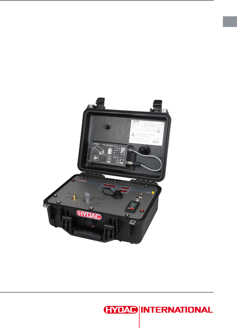 FluidControl Unit FCU 1315 EN Operating instructions 4168086c / 2025-03 EN 4168086c / 2025-03 Translation / original language: German © 2025 HYDAC Filter Systems GmbH. All rights reserved. ® All product names used may be trademarks or registered trademarks of HYDAC or the particular owner. This manual was prepared to the best of our knowledge. Nevertheless, and despite the greatest care, it cannot be ruled out that mistakes could have crept in. Please therefore understand that, unless stated otherwise below, our warranty and liability – irrespective of the legal grounds – are excluded in respect of the information in these instructions. In particular, we are not liable for loss of profit or other financial losses. This exclusion of liability does not apply in cases of intent or gross negligence. Moreover, it does not apply to defects that were fraudulently concealed or whose absence was guaranteed, or in cases of culpable injury to life and limb and harm to health. If we negligently breach any material contractual obligation, our liability shall be limited to the foreseeable damage. Claims arising from product liability remain unaffected. Documentation representative: HYDAC Verwaltung GmbH, c/o Zentrales Qualitätswesen, Industriegebiet, D‑66280 Sulzbach/Saar, product_safety@hydac.com UKCA – authorised representative of the manufacturer: HYDAC Technology Limited, De Havilland Way, Windrush Park Witney, Oxfordshire OX29 0YG, United Kingdom mailto:product_safety@hydac.com EN TABLE OF CONTENTS 4168086c / 2025-03 3 / 104 Table of Contents 1. General ........................................................................................................................... 6 1.1 Target group of the manual ................................................................................ 6 1.2 Illustrations in the manual................................................................................... 6 1.2.1 Depiction of warning signs.................................................................... 6 1.2.2 Representation of requirements ........................................................... 8 1.2.3 Representation of procedural instructions............................................ 8 1.2.4 Representation of intermediate results/results ..................................... 9 1.2.5 Supplementary symbols ....................................................................... 9 1.3 Warranty ............................................................................................................. 9 1.4 Notes on copyright.............................................................................................. 9 2. Safety information ........................................................................................................... 10 2.1 Proper use .......................................................................................................... 10 2.2 The operator’s obligations .................................................................................. 11 2.3 Personnel qualifications...................................................................................... 11 2.4 General safety instructions ................................................................................. 12 2.4.1 Dangers during the life cycle ................................................................ 12 2.5 Safety symbols / pictograms............................................................................... 13 2.6 Safety devices .................................................................................................... 15 2.7 Personal protective equipment ........................................................................... 15 2.8 Observing environmental precautions ................................................................ 15 2.9 Observing regulatory information ....................................................................... 16 2.10 Stoppage in an emergency (EMERGENCY STOP) ........................................... 16 2.11 Fire-fighting/Extinguishing a fire ......................................................................... 16 3. Product and technical specifications ............................................................................... 17 3.1 Supplementary product information — scan QR code ....................................... 17 3.2 Counting dirt particles visually (light blockade procedure) ................................. 18 3.3 Checking the scope of supply............................................................................. 19 3.4 Technical Data.................................................................................................... 20 3.4.1 Periodic Intermittent Operation – Operating Mode S3.......................... 22 3.5 Decoding the name plate.................................................................................... 23 3.5.1 Model code........................................................................................... 25 3.6 Dimensions......................................................................................................... 26 3.7 Hydraulic diagram............................................................................................... 27 3.8 Function.............................................................................................................. 28 4. Transport / Storage ......................................................................................................... 29 4.1 Opening / Closing Case...................................................................................... 29 4.2 Prepare FCU for Transport................................................................................. 29 4.3 Transporting the FCU......................................................................................... 31 4.4 Storing the FCU..........................................................................................
