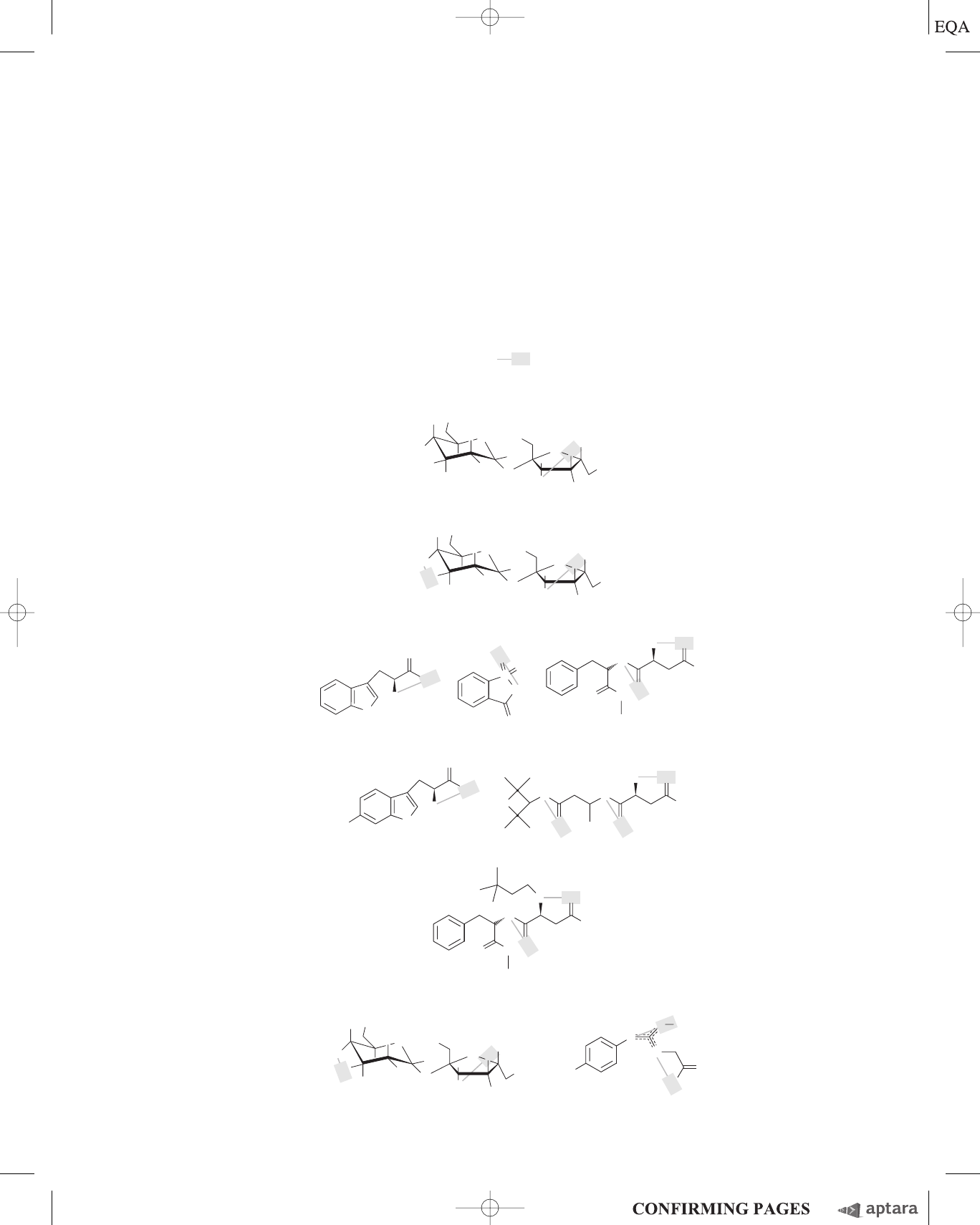 Chapter 1 The Foundations of Biochemistry S-11 Answer (a) A more negative �G° corresponds to a larger Keq for the binding reaction, so the equilib- rium is shifted more toward products and tighter binding—and thus greater sweetness and higher MRS. (b) Animal-based sweetness assays are time-consuming. A computer program to predict sweetness, even if not always completely accurate, would allow chemists to design effec- tive sweeteners much faster. Candidate molecules could then be tested in the conven- tional assay. (c) The range 0.25 to 0.4 nm corresponds to about 1.5 to 2.5 single-bond lengths. The figure below can be used to construct an approximate ruler; any atoms in the gray rectangle are between 0.25 and 0.4 nm from the origin of the ruler. There are many possible AH-B groups in the molecules; a few are shown here. D-Tryptophan OH N H O NH2 6-Chloro-D-tryptophan OH Cl N H O NH2 Neotame H N O O OO OH CH3 NH Tetrabromosucrose H Br HO H H H H H O O H Br BrOH OH OH HO BrO Sucronic acid H N H N O2N C9H17 HN HO O + Alitame H N H N O O OH NH2 O S Saccharin S O O O NH Aspartame H N O O OO OH CH3 NH2 Deoxysucrose H H H H H H H H O O H OH OHOH OH OH HO HOO Sucrose H H HO H H H H H O O H OH OHOH OH OH HO HOO 2608T_ch01sm_S1-S12 1/31/08 9:40PM Page S-11 ntt 102:WHQY028:Solutions Manual:Ch-01: