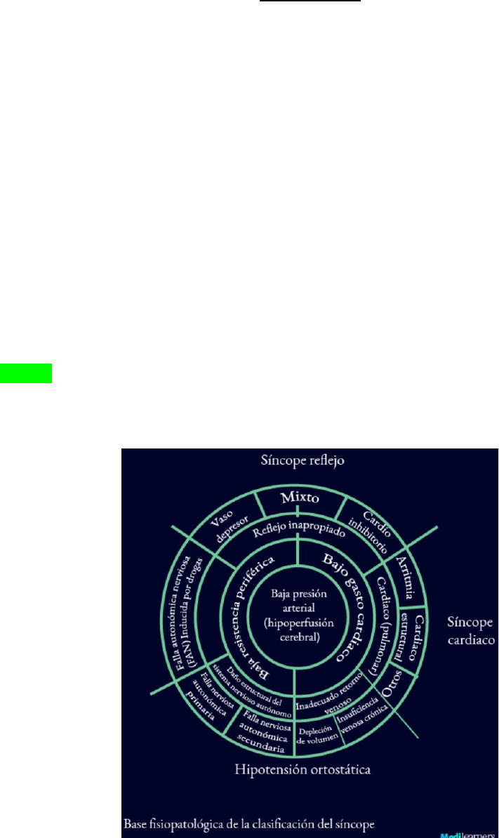 SÍNCOPE INTRODUCCIÓN · Perdida transitoria de la consciencia con perdida del tono postural. · Presenta recuperación espontanea sin necesidad de maniobras adicionales. · Muchas personas no se van a presentar con síncope como tal, sino con algo que se conoce como el presincope que antecede al síncope (Abombamiento, visión en túnel, etc..). Se considera y se maneja igual al síncope, por mismo riesgo de mortalidad y debido a las mismas etiologías. Este presincope es lo que la gente conoce como lipotimia. FISIOPATOLOGÍA · Alteraciones vagales Está mediado por el SNA · Alteraciones cardiacas Bajo cardiaco Bajo perfusión cortical · Alteraciones Cerebrovasculares · Alteración Pulmonar NOTA: Todo se traduce o conlleva a una Hipoperfusión Cortical (5-10 segundos el cuerpo se desmaya para proteger al cerebro). 1. Bajo Gasto cardiaco 2. Baja resistencia periférica Vasodilatación PRESENTACIÓN CLÍNICA · Ortostatismo: Se toma la presión al paciente acostado o sentado y luego se pone de pie y sucede lo siguiente: · PAS baja 20 mmHg o PAD baja 10 mmHg · PAS 30 pulsaciones por minuto o hasta 120 LPM en 10 minutos. · Palpitación · Disautonomía: Nauseas, sudoración fría. ABORDAJE 1. Realmente es síncope: Descartar ACV, convulsión, hipoglicemia. 2. Determinar si se debe hospitalizar, para eso se debe realizar la ESC 2018. Tomar EKG y glicemia. Convulsión: Giro de la cabeza (Versión Cefálica), postura inusual, perdida de control de esfínteres, cambios de coloración, pródromo de alusiones (Dejá Vu, Jamais Vu). DIAGNÓSTICO Confirmado (Solo un 50%) · Vasovagal (Estrés o cambio de posición con pródromo) · Situacional · Ortostático · Cardiogénico Sospecha (30%) · Mesa basculante · Pruebas autonómicas · Holter No explicado (20%) · Suelen no tener Monitoreo EKG · A todo paciente intrahospitalario de alto riesgo Paciente con palpitaciones, de resto mejor ambulatorio. · Holter si síntomas frecuentes · Monitor de eventos cardiacos en pacientes con sincope recurrente de etiología desconocida. Electrofisiología Pacientes con estudio no invasivo negativo y alguna de las siguientes: · Cardiopatía isquémica · Bloqueo bifascicular · Bradicardia sinusal sostenida · Palpitaciones Otras pruebas diagnósticas · Eco-TT: Solo en sospecha de estructuralidad cardiaca. · Prueba de ejercicio: Sincope asociado al ejercicio. · Angiografía Coronaria: Mismas indicaciones que pacientes sin síncope. · Masaje del seno carotídeo: Considerar en paciente > 40 años con etiología desconocida. Cada vez más es la gente que está en contra del masaje carotideo, sobre todo en ancianos. · Tilt Test (Mesa Basculante): Sospecha de síncope reflejo, ortostático o psicogénico. Se puede considerar educación de paciente. Cada vez se usa menos, es poca la gente que sabe interpretarla. · Pruebas Autonómicas: Valsalva, respiración profunda, MAPA. Según sospecha clínica. Resumen MANEJO Vasovagal · Educación · Maniobras de Contraposición · Fármacos con mala evidencia: Fluodrocortisona (Es un corticoide, tiene efecto mineralocorticoide y aumenta recaptación de sal) o midodrine (Es un alfa agonista, aumentar la resistencia vascular y aumentar la perfusión cerebral). Ortostático · Educación · Consumo de agua y sal · Medias compresivas · Fluodrocortisona o midodrine NOTA: Manejar la causa. image6.png image7.png image8.png image9.png image1.png image2.png image3.png image4.png image5.png